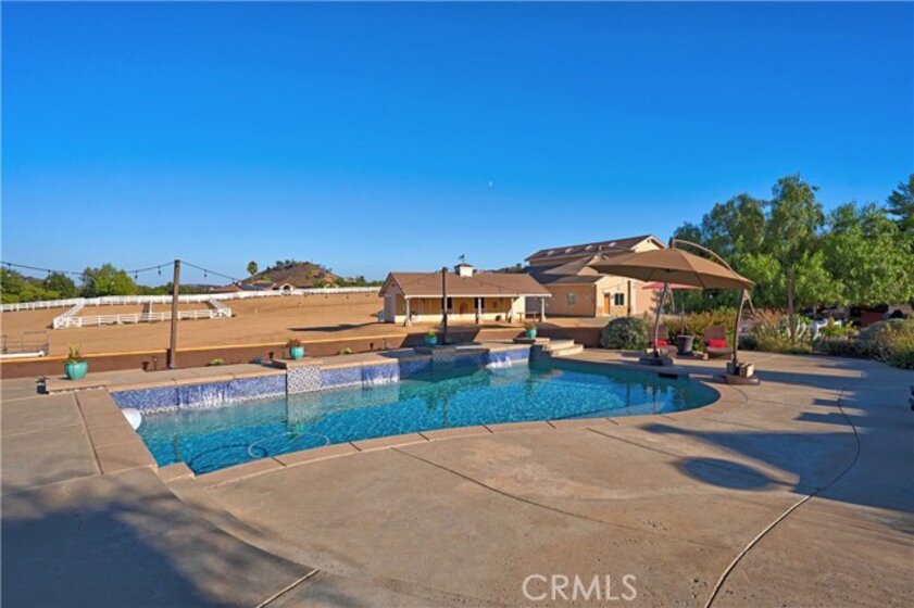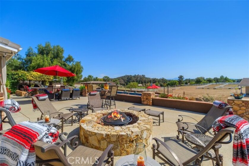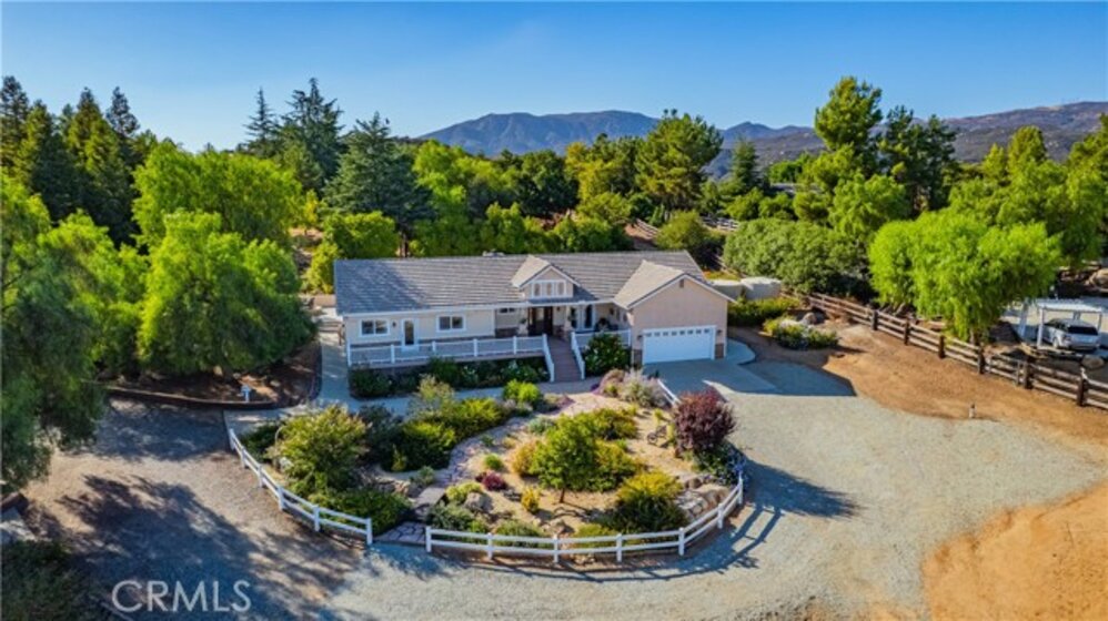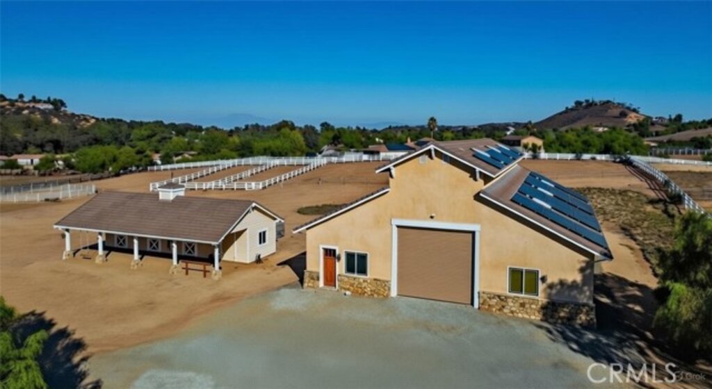 Discover the ultimate in Southern California equestrian luxury living at this exceptional La Cresta estate in Murrieta, set on 5.14 fully usable, fenced acres with DIRECT access to La Cresta riding trails. This rare Murrieta horse property offers the perfect blend of privacy, land, and lifestyle in one of Southern California’s most sought-after equestrian communities. *Watch the linked VIDEO to experience the lifestyle this property offers and envision what life could look like here!* Designed for multi-generational living, this premier La Cresta ranch estate features two single-story residences, ideal for extended family, guests, or potential rental income. The main home offers three bedrooms, a dedicated office, and a gym or game room, while the second residence includes three bedrooms, two bathrooms, and an office, providing flexibility for today’s modern living needs. Outdoor living is elevated with resort-style amenities, including a solar-heated pool, above-ground spa, outdoor cooking area, and panoramic mountain and hill views that showcase the natural beauty of the Temecula Valley. A 62-panel fully owned solar system ensures energy efficiency, while the 3,498 sq. ft. workshop and RV garage with lift offers endless possibilities, easily convertible into a luxury equestrian barn, car collector’s garage, or expanded ranch facilities. Built for the horse enthusiast, this La Cresta equestrian property includes a custom two-stall barn with tack and feed rooms, three fenced pastures, a round pen, and ample space to add an arena, additional stables, or training facilities. The property’s fully usable acreage allows for expansion while maintaining privacy and functionality. Enjoy a low tax rate, low-maintenance utilities, and a prime location just minutes from award-winning Murrieta schools, shopping, dining, and convenient freeway access. Situated near Temecula Wine Country, this estate offers the perfect balance of ranch-style living with 2 gardens, fruit orchard, approximately 30 Zinfandel vines - Turn this ranch estate into your homestead dream, with the flexibility to bring your next projects to life. Properties like this which offer acreage, guest houses, mountain views, and equestrian facilities in La Cresta, are rarely available. This is a true opportunity to own a luxury horse property in Murrieta, where lifestyle, land, and long-term value come together. *Buyer incentive: Seller pays the 1st year of homeowner insurance with an accepted offer!*