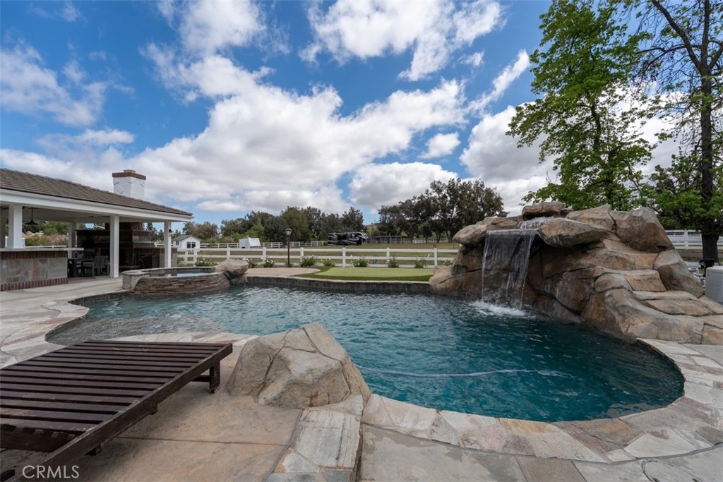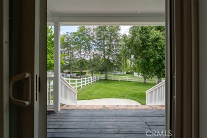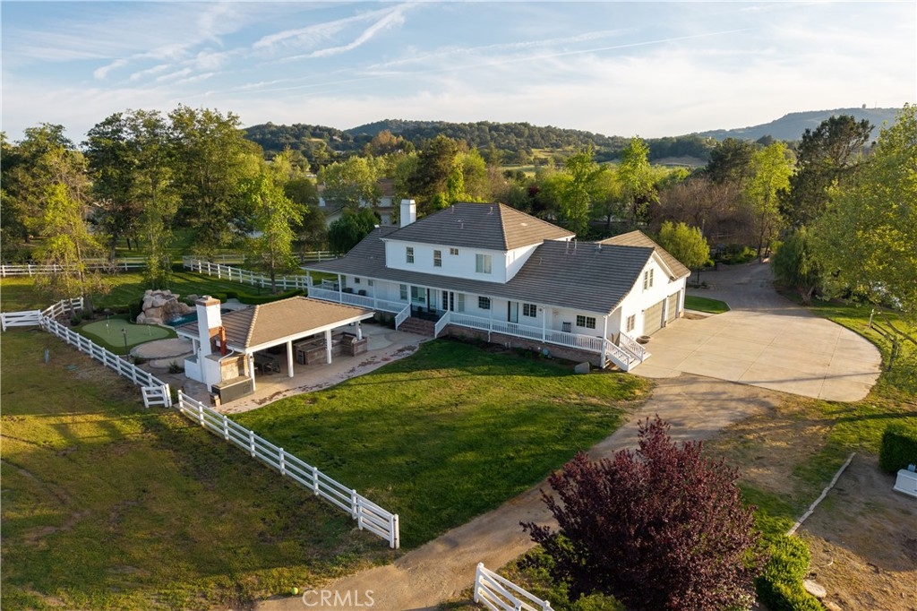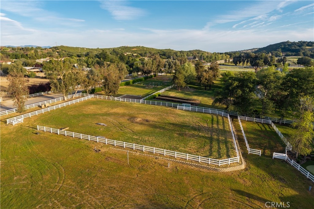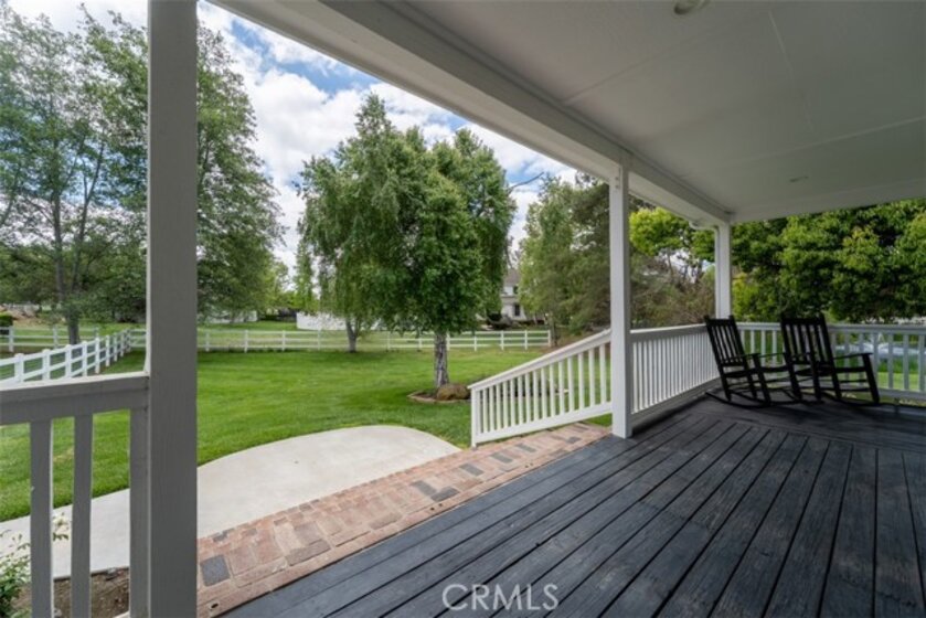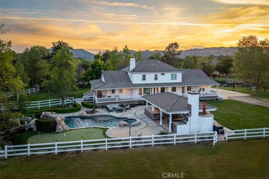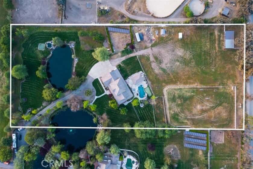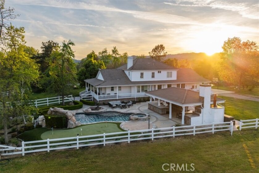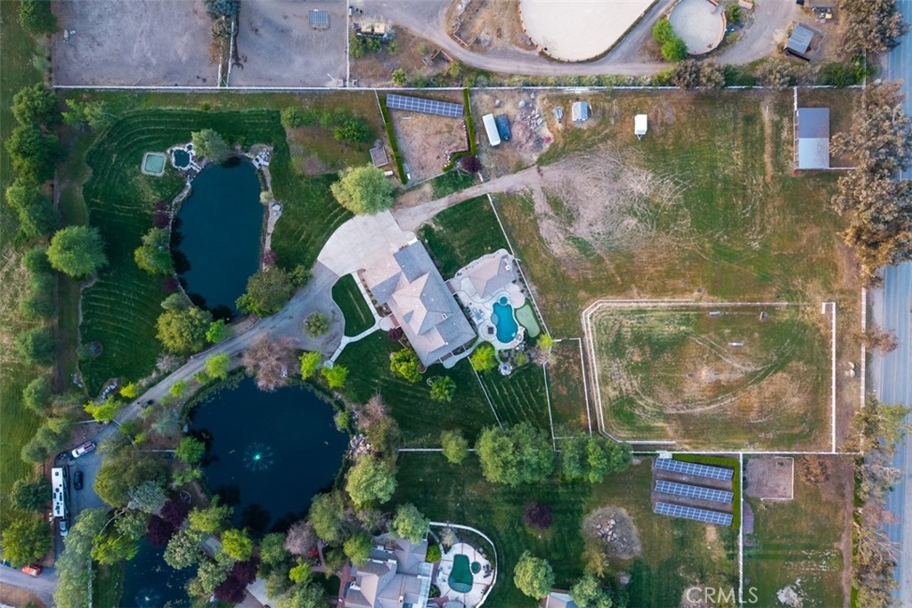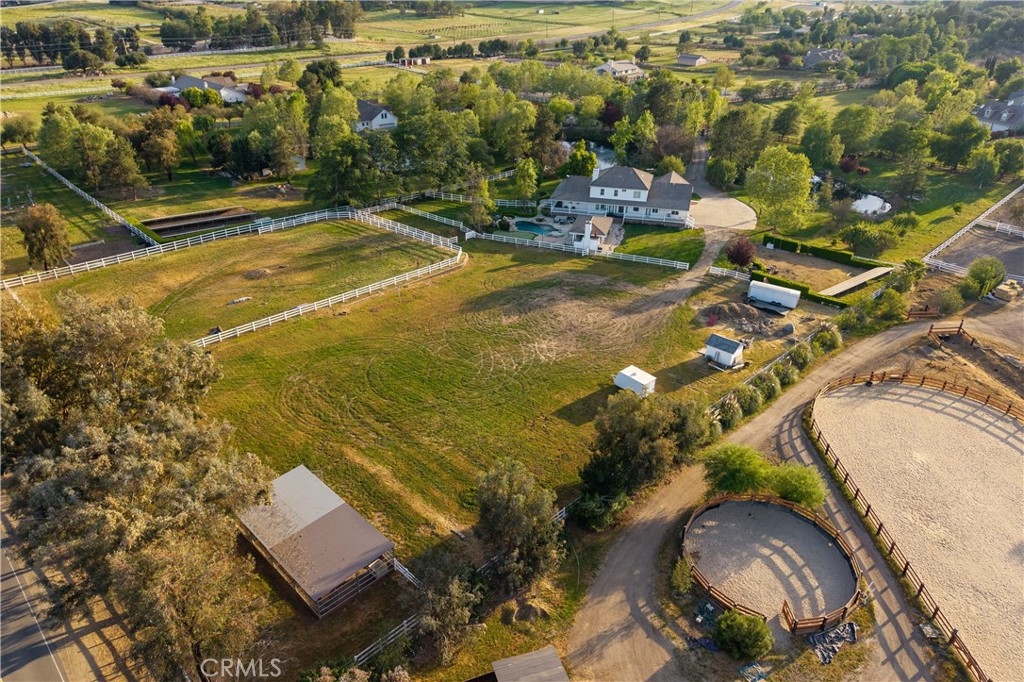 Your private oasis awaits. Set on 4.83 fully usable acres at the end of a quiet cul-de-sac in the gated Meadow Oaks community of La Cresta's coveted Tenaja neighborhood, this custom 4 bedroom, 4.5 bath ranch estate delivers true country living in one of Southern California's most sought-after equestrian enclaves on the Santa Rosa Plateau. Live off the grid in spirit, just minutes from civilization. The property features owned solar power, a private well for the grounds, septic system, 1,000 gallon propane, 400 amp electrical service, and a whole-house Generac generator that self-tests monthly. A concrete tile roof, raised brick foundation, and full fire sprinklers in both the house and garage round out the systems. Inside the approximately 4,226 square foot main residence, the main-level primary suite features a remodeled spa bath with heated Carrara marble floors, a freestanding tub, and an oversized shower. The chef's kitchen opens to the great room with Indian black granite counters, a prep island, and premium appliances. Dual staircases lead upstairs to three en-suite bedrooms, an office/loft, and a spacious game room. Step outside to your resort. A custom pool and spa, a BBQ pavilion with a wood-burning pizza oven and outdoor fireplace, two stocked ponds (3 lb bass, koi, turtles) with a managed water-level system and LED-lit fountain, 15 producing fruit trees (pomegranate, peach, apple, pear, lime, orange, blackberry), and a drip-irrigated garden. The equestrian setup is turnkey: 5 stalls plumbed with water and electric, a fully sprinklered barrel arena, and direct access to La Cresta's celebrated trail system. Over $125,000 in recent capital improvements: new concrete tile roof with a 5 year transferable warranty, whole-house Generac generator, new HVAC, upgraded pool equipment and monitor, fresh exterior siding and paint, and new window screens. Minutes to I-15, Temecula Wine Country, top Murrieta Valley schools, hospitals, and shopping. A rare offering in one of the most sought-after pockets on the Plateau.