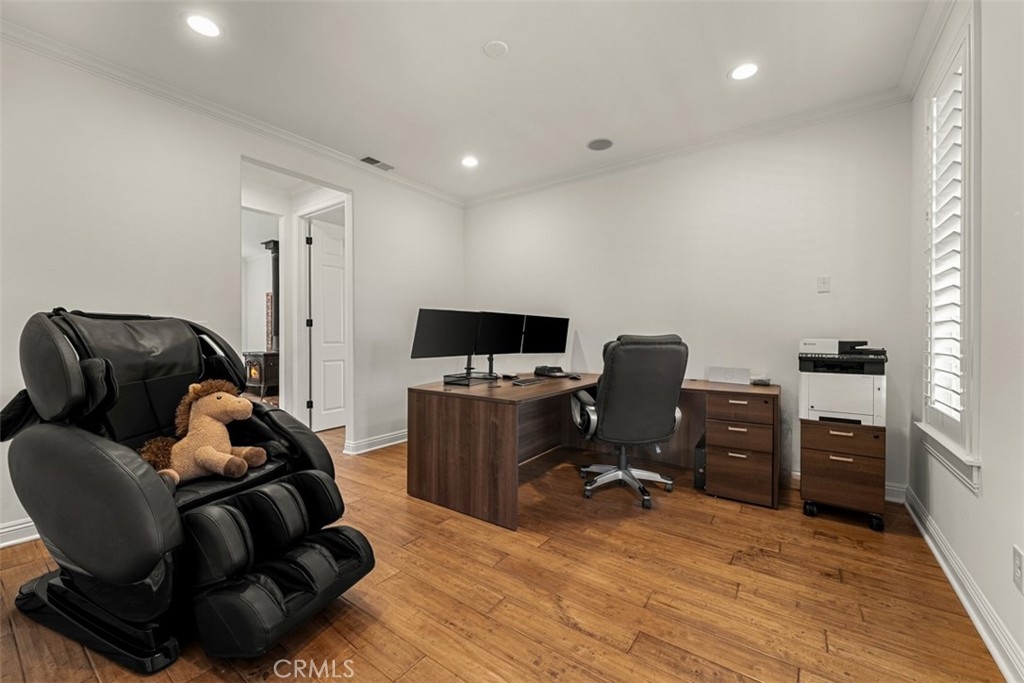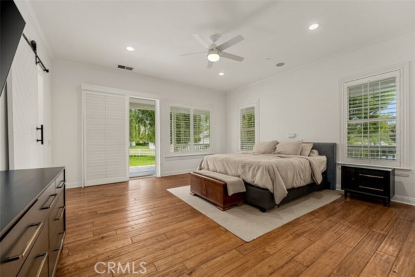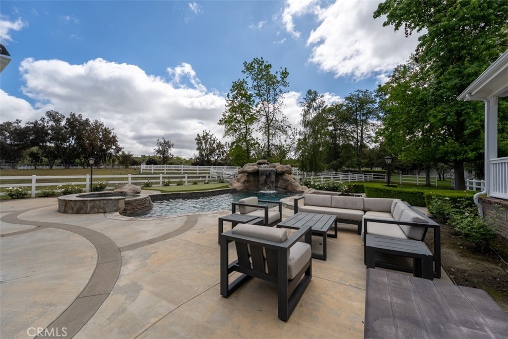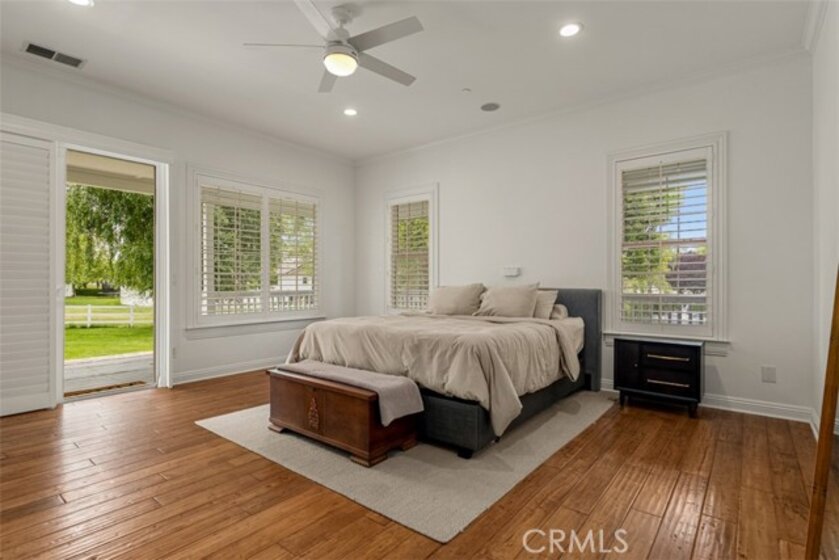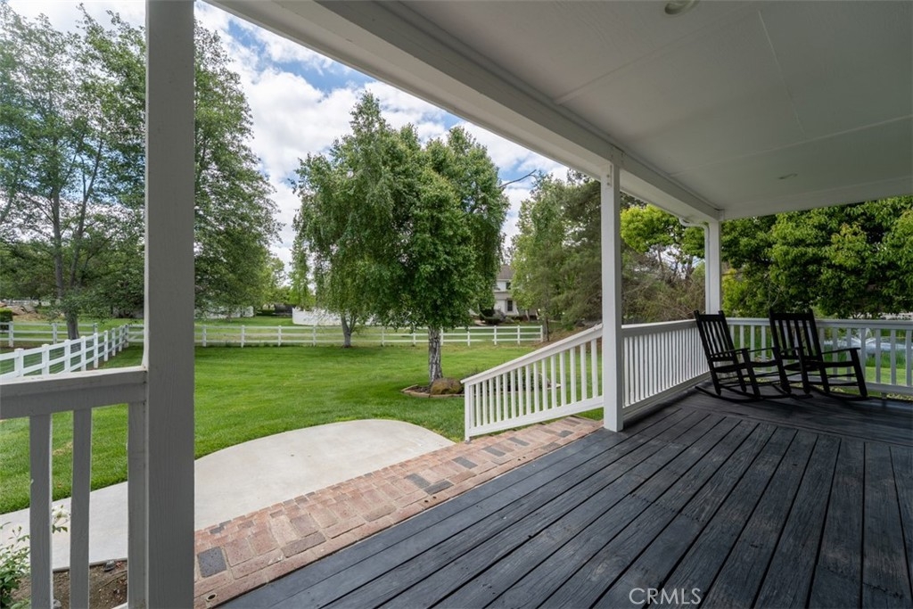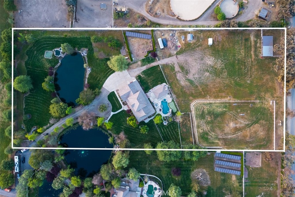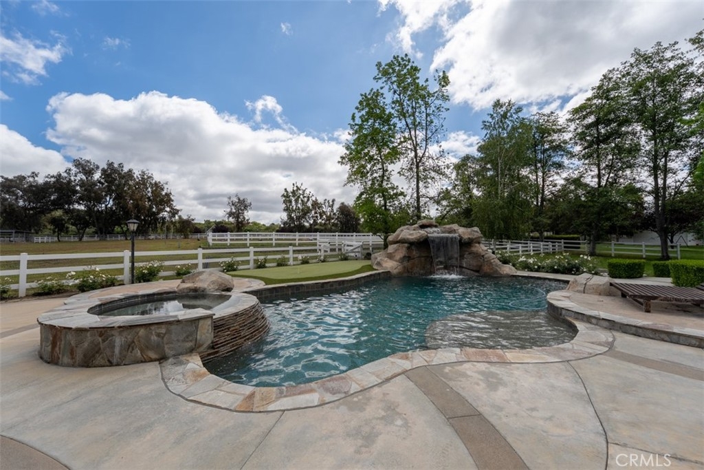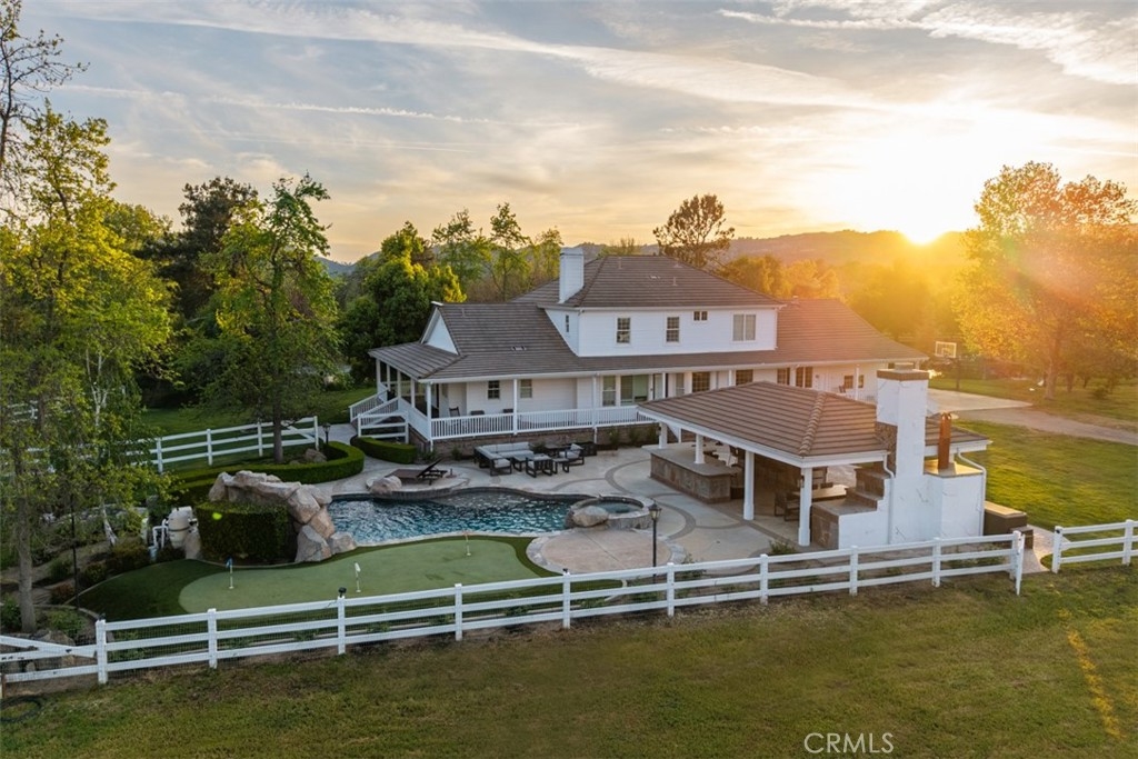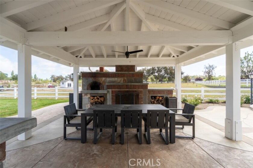Your private oasis awaits. Set on 4.83 fully usable acres at the end of a quiet cul-de-sac in the gated Meadow Oaks community of La Cresta's coveted Tenaja neighborhood, this custom 4 bedroom, 4.5 bath ranch estate delivers true country living in one of Southern California's most sought-after equestrian enclaves on the Santa Rosa Plateau. Live off the grid in spirit, just minutes from civilization. The property features owned solar power, a private well for the grounds, septic system, 1,000 gallon propane, 400 amp electrical service, and a whole-house Generac generator that self-tests monthly. A concrete tile roof, raised brick foundation, and full fire sprinklers in both the house and garage round out the systems. Inside the approximately 4,226 square foot main residence, the main-level primary suite features a remodeled spa bath with heated Carrara marble floors, a freestanding tub, and an oversized shower. The chef's kitchen opens to the great room with Indian black granite counters, a prep island, and premium appliances. Dual staircases lead upstairs to three en-suite bedrooms, an office/loft, and a spacious game room. Step outside to your resort. A custom pool and spa, a BBQ pavilion with a wood-burning pizza oven and outdoor fireplace, two stocked ponds (3 lb bass, koi, turtles) with a managed water-level system and LED-lit fountain, 15 producing fruit trees (pomegranate, peach, apple, pear, lime, orange, blackberry), and a drip-irrigated garden. The equestrian setup is turnkey: 5 stalls plumbed with water and electric, a fully sprinklered barrel arena, and direct access to La Cresta's celebrated trail system. Over $125,000 in recent capital improvements: new concrete tile roof with a 5 year transferable warranty, whole-house Generac generator, new HVAC, upgraded pool equipment and monitor, fresh exterior siding and paint, and new window screens. Minutes to I-15, Temecula Wine Country, top Murrieta Valley schools, hospitals, and shopping. A rare offering in one of the most sought-after pockets on the Plateau.