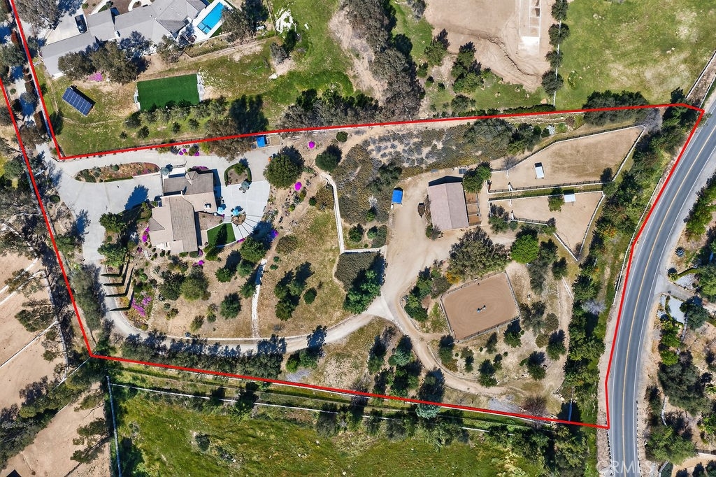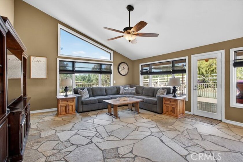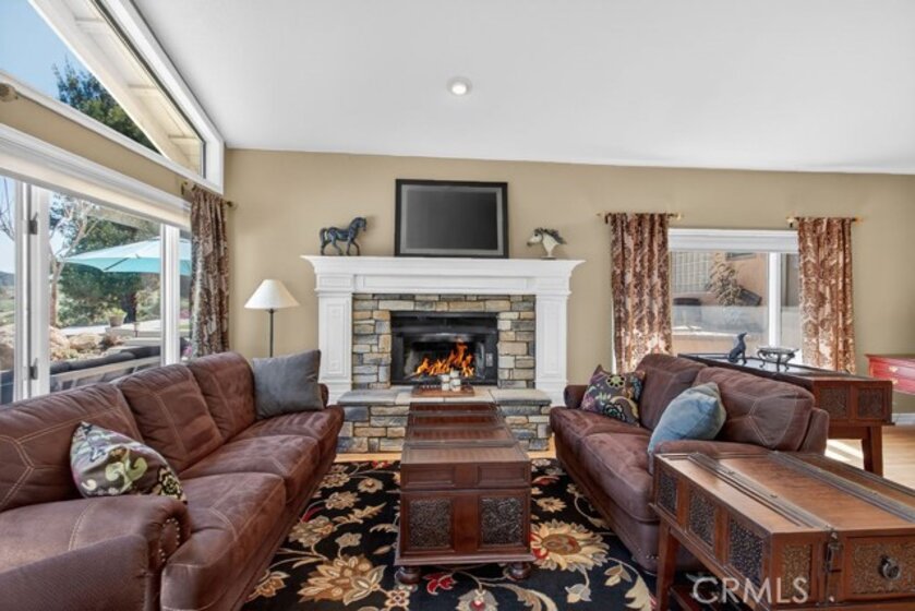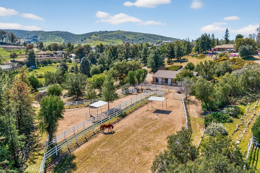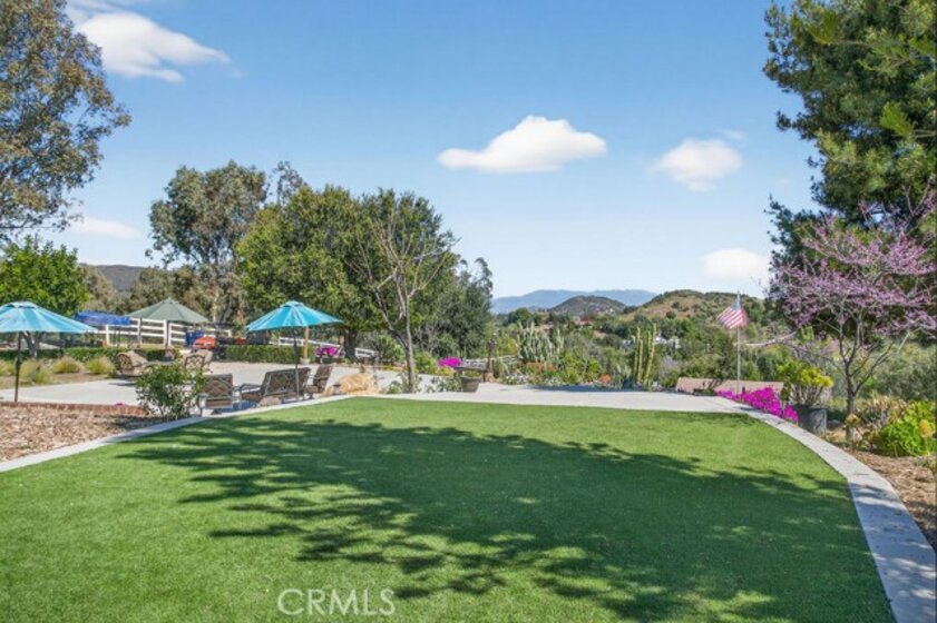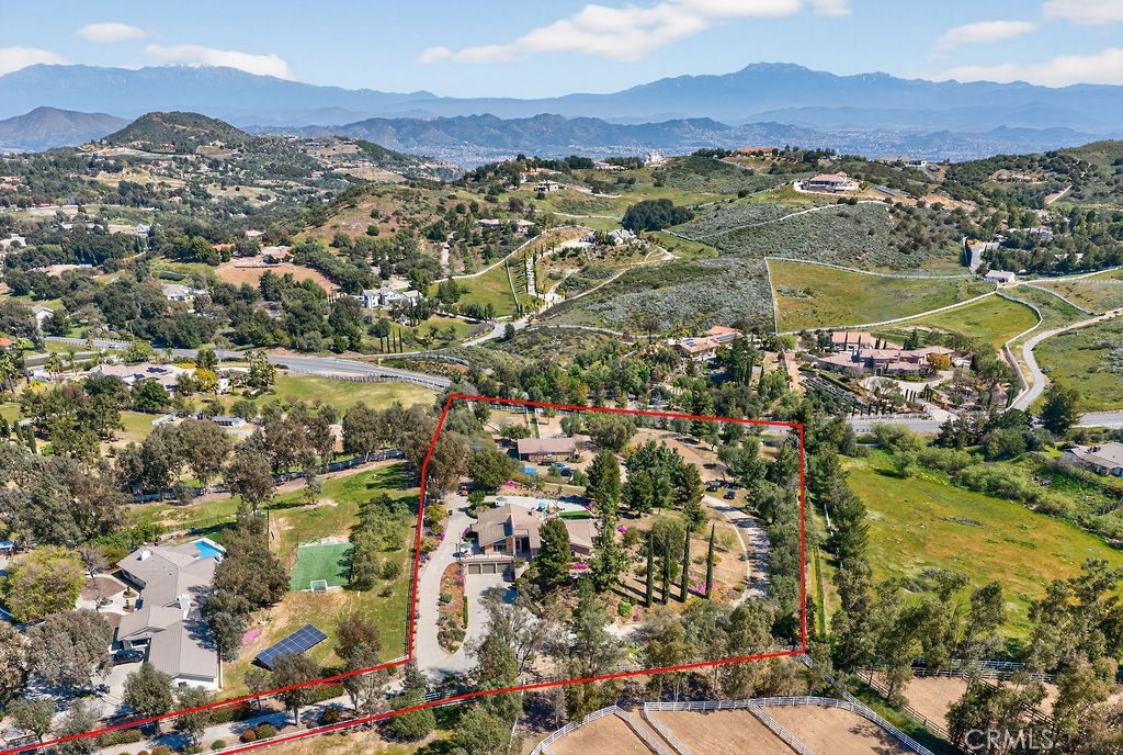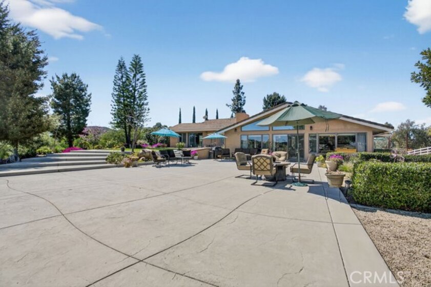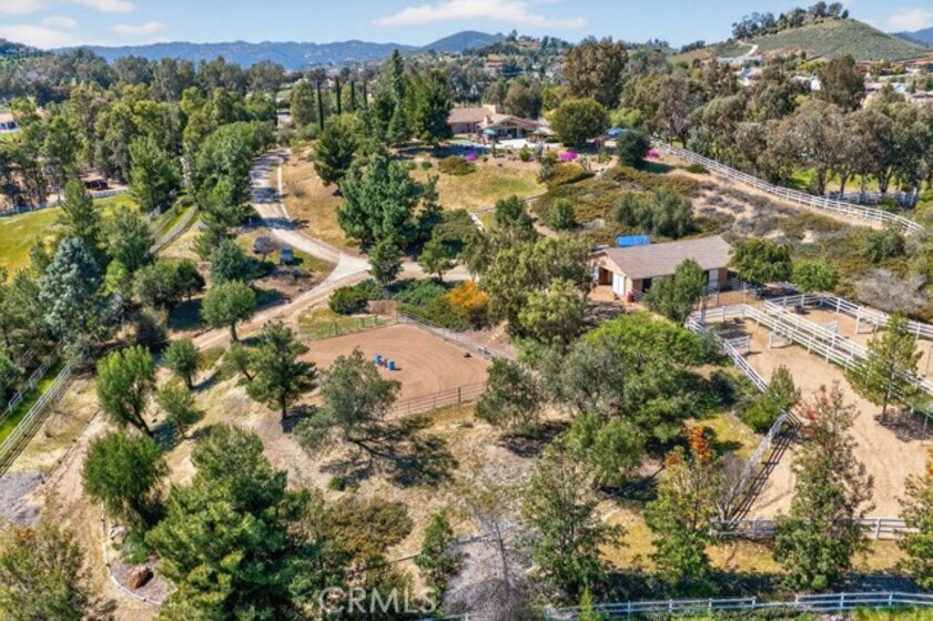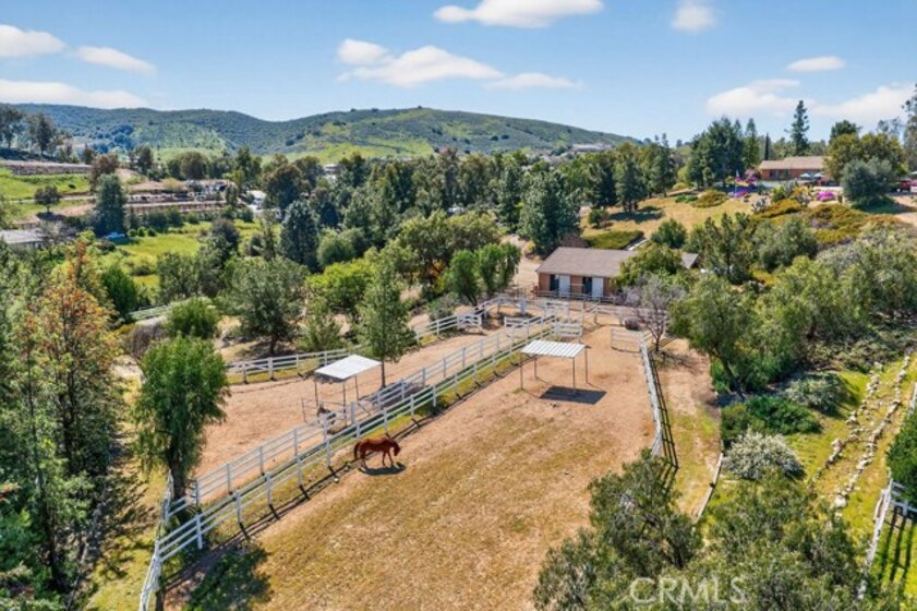 Discover the pinnacle of Southern California living at 20765 Avenida Castilla, a private sanctuary nestled within the prestigious La Cresta equestrian community on Murrieta’s scenic Santa Rosa Plateau.This beautifully updated 3-level home offers 4 bedrooms, 2.5 bathrooms, and 3,207 square feet of elegant living space, with primary living on the main level, on a fully usable 5-acre parcel. Built in 1984 and thoughtfully refreshed, the property features a warm stucco exterior with natural stone accents, a classic tile roof, and a long, winding private driveway through vibrant, meticulously landscaped grounds. A charming wrap-around porch adds to the inviting appeal.Inside, natural light pours through oversized windows into an open-concept design. The grand living room features a dramatic stacked-stone fireplace, ideal for relaxing or entertaining. The spacious family room showcases rustic flagstone flooring and a ceiling fan. The gourmet kitchen impresses with rich dark wood cabinetry, granite countertops, stone backsplash, breakfast bar, and windows framing beautiful garden and hill views.The primary suite includes a spa-like bathroom with a frameless glass walk-in shower and dual vanities. Rresort-style living awaits with expansive concrete patios, multiple seating areas under large umbrellas, a pristine artificial turf lawn, and lush gardens filled with vibrant flowers, bougainvillea, cacti, and mature trees. Multiple decks and the wrap-around porch provide stunning panoramic mountain and valley views.Equestrian lovers will appreciate the established facilities, including a center-aisle barn, fenced paddocks, pastures, a riding arena, and room for expansion, plus direct access to La Cresta’s scenic trails.Additional features include a 3-car attached garage, central HVAC, and full La Cresta HOA benefits.Just minutes from top-rated Murrieta schools and shopping, the property is only a 15-minute drive to Temecula Valley Wine Country. Enjoy over 40 acclaimed wineries such as world-renowned Europa Winery, Wilson Creek, South Coast Winery, and Ponte Family Vineyard for tasting rooms, events, and fine dining.This exceptional estate perfectly combines sophisticated interiors, spectacular outdoor amenities, strong equestrian potential, and easy access to wine country in one of the region’s most desirable communities.