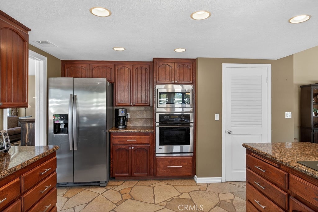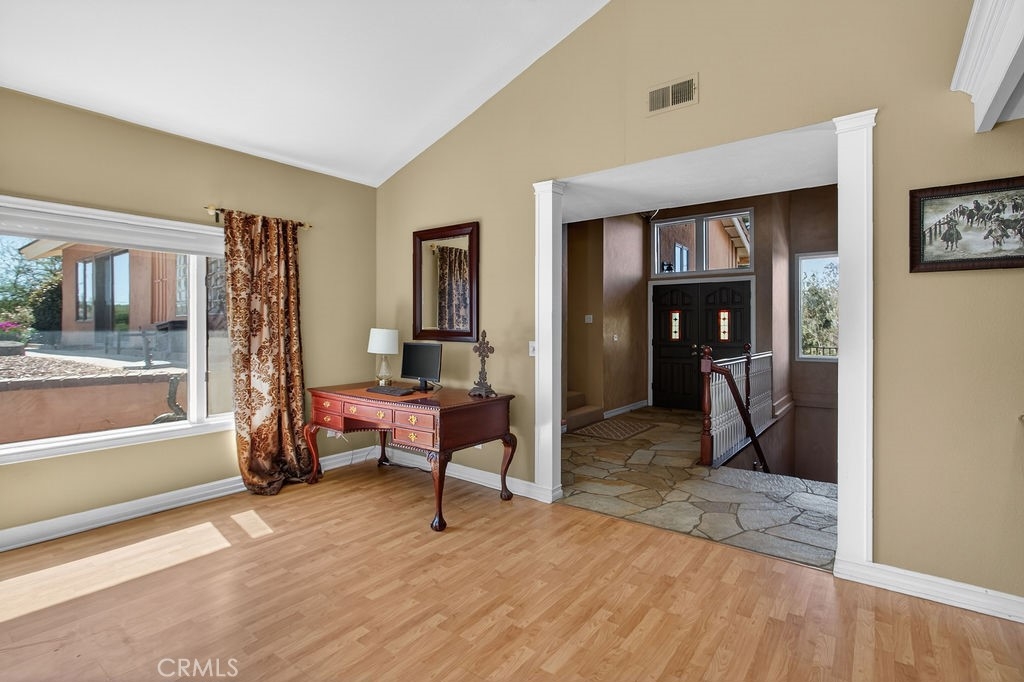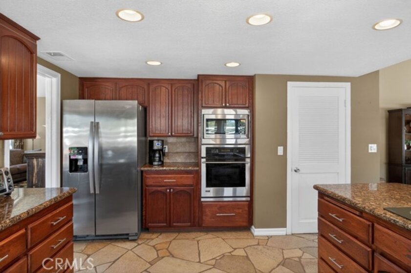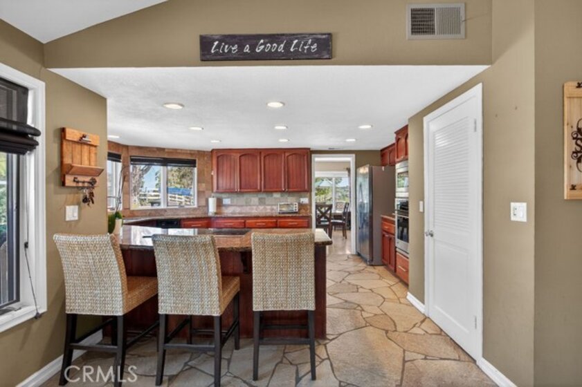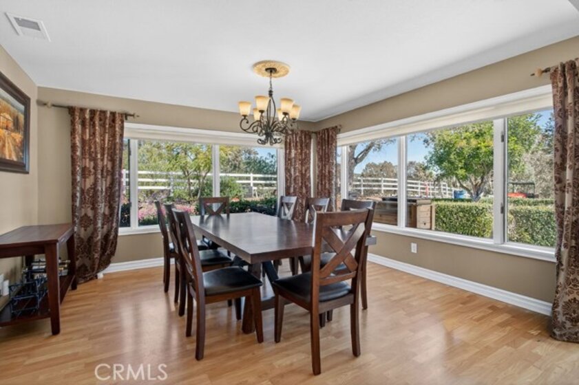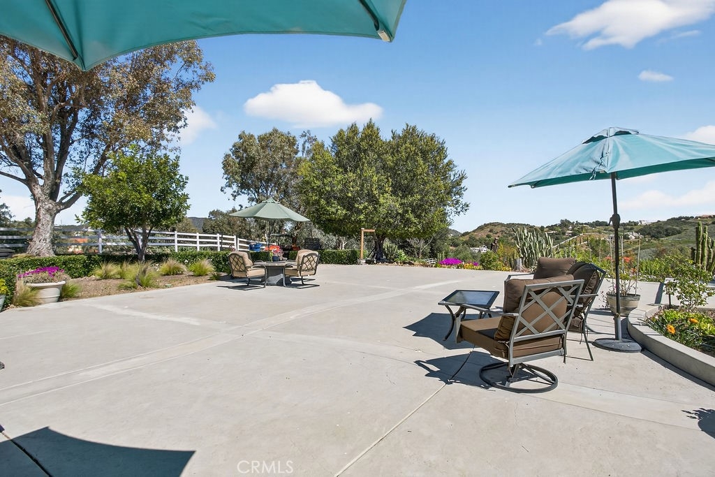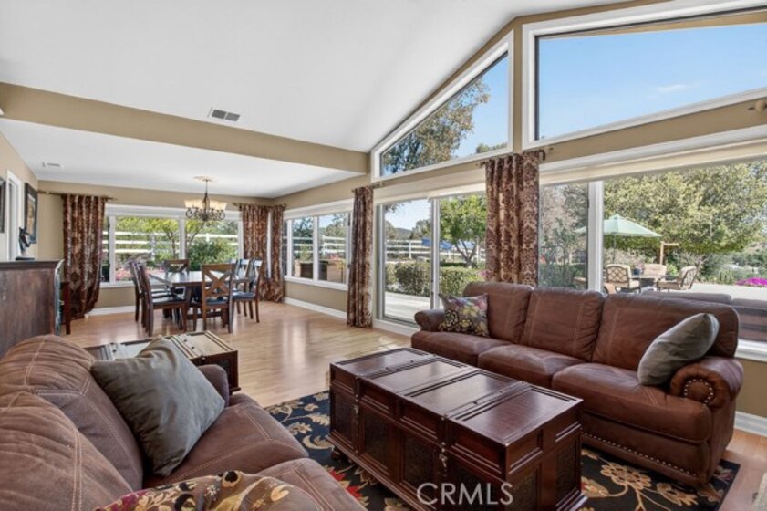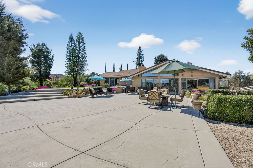 Discover the pinnacle of Southern California living at 20765 Avenida Castilla, a private sanctuary nestled within the prestigious La Cresta equestrian community on Murrieta’s scenic Santa Rosa Plateau.This beautifully updated 3-level home offers 4 bedrooms, 2.5 bathrooms, and 3,207 square feet of elegant living space, with primary living on the main level, on a fully usable 5-acre parcel. Built in 1984 and thoughtfully refreshed, the property features a warm stucco exterior with natural stone accents, a classic tile roof, and a long, winding private driveway through vibrant, meticulously landscaped grounds. A charming wrap-around porch adds to the inviting appeal.Inside, natural light pours through oversized windows into an open-concept design. The grand living room features a dramatic stacked-stone fireplace, ideal for relaxing or entertaining. The spacious family room showcases rustic flagstone flooring and a ceiling fan. The gourmet kitchen impresses with rich dark wood cabinetry, granite countertops, stone backsplash, breakfast bar, and windows framing beautiful garden and hill views.The primary suite includes a spa-like bathroom with a frameless glass walk-in shower and dual vanities. Rresort-style living awaits with expansive concrete patios, multiple seating areas under large umbrellas, a pristine artificial turf lawn, and lush gardens filled with vibrant flowers, bougainvillea, cacti, and mature trees. Multiple decks and the wrap-around porch provide stunning panoramic mountain and valley views.Equestrian lovers will appreciate the established facilities, including a center-aisle barn, fenced paddocks, pastures, a riding arena, and room for expansion, plus direct access to La Cresta’s scenic trails.Additional features include a 3-car attached garage, central HVAC, and full La Cresta HOA benefits.Just minutes from top-rated Murrieta schools and shopping, the property is only a 15-minute drive to Temecula Valley Wine Country. Enjoy over 40 acclaimed wineries such as world-renowned Europa Winery, Wilson Creek, South Coast Winery, and Ponte Family Vineyard for tasting rooms, events, and fine dining.This exceptional estate perfectly combines sophisticated interiors, spectacular outdoor amenities, strong equestrian potential, and easy access to wine country in one of the region’s most desirable communities.