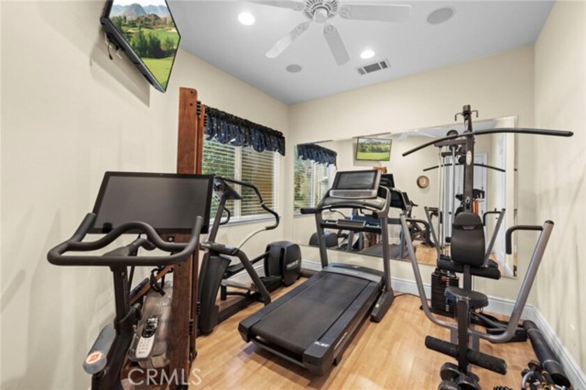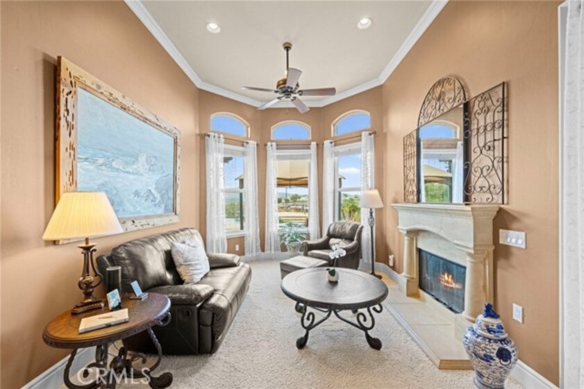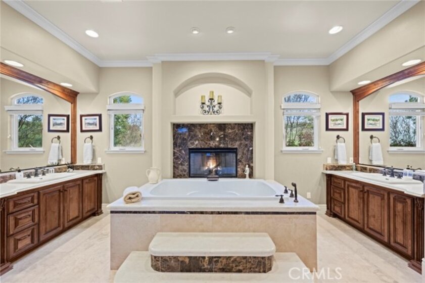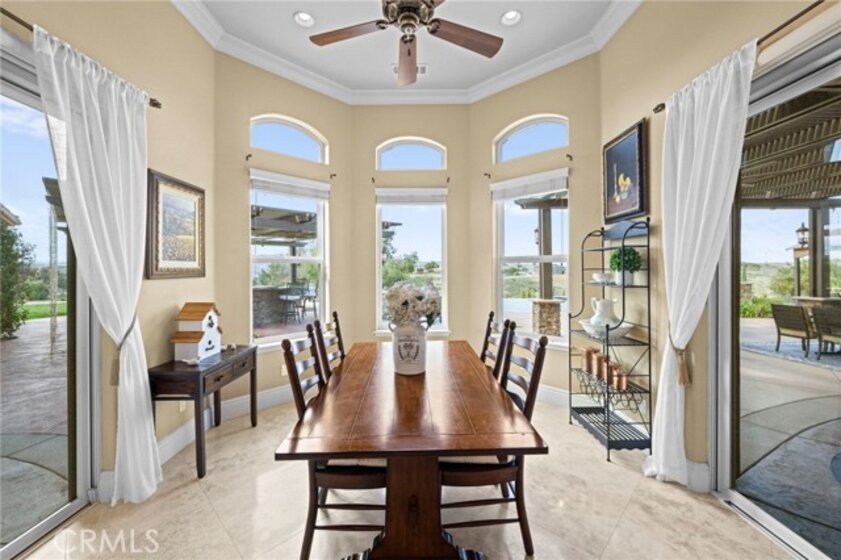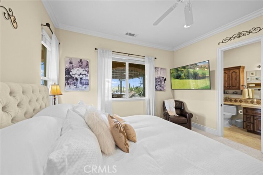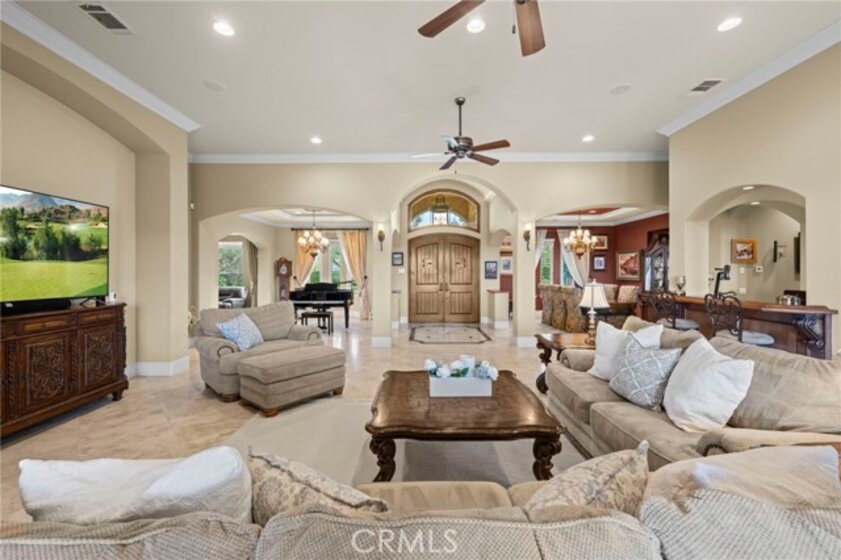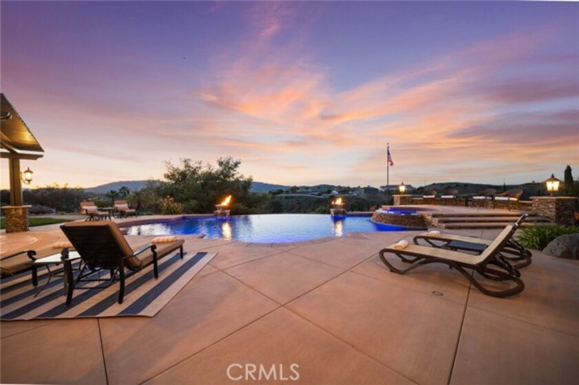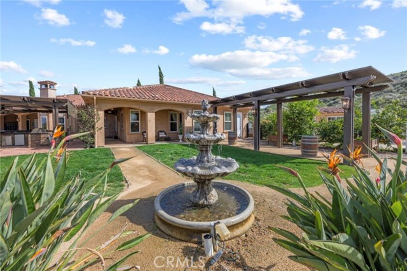 Private 5.65 acres of rolling hills in the peaceful community of La Cresta, 21051 Via Sevilla is a contemporary single-story estate offering 5,152 square feet of refined living. This property blends luxury, privacy, and the natural beauty of Southern California’s countryside into one exceptional retreat. The home features five spacious bedrooms, five bathrooms, an office, a game room, a library, and an exercise room—each space thoughtfully designed for comfort and versatility. Inside, coffered lighting and an effortless layout create a warm, welcoming flow. The gourmet kitchen stands out with high-end appliances, an oversized walk-in pantry, and a generous center island, making it perfect for everyday living and effortless entertaining. It opens to expansive living and dining areas, where large windows frame sweeping views of the surrounding landscape. A stylish wet bar and a temperature-controlled wine room—capable of storing up to 400 bottles—add an elevated touch for those who love to host. The primary suite is a true sanctuary, complete with two fireplaces, a spa-inspired bathroom, and dual walk-in closets. Each additional bedroom includes its own en-suite bathroom and walk-in closet, showcasing the home’s attention to detail and craftsmanship. Step outside to a resort-style oasis featuring a sparkling pool, spa, and a fully equipped outdoor kitchen. The grounds are beautifully landscaped and enhanced by a charming boutique vineyard—an exceptional feature for wine enthusiasts. A high-capacity 100 GPM well provides ample water for the vineyard and fruit trees. With generous flat land, the property offers endless possibilities: add equestrian facilities, build a guest house, create additional parking, or simply enjoy the open space and tranquility. Known for its serene, upscale lifestyle, La Cresta provides the perfect backdrop for this remarkable estate. With panoramic mountain views, unforgettable sunsets, and room to roam, this property offers a rare opportunity to live in harmony with nature while enjoying the finest comforts of luxury living.