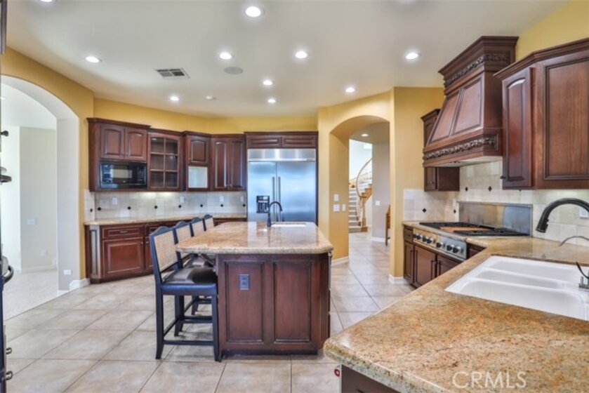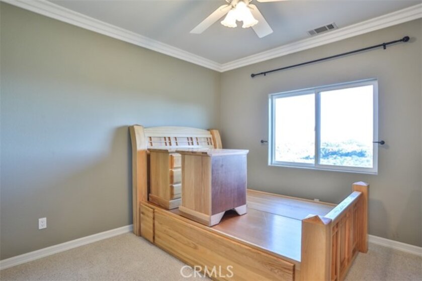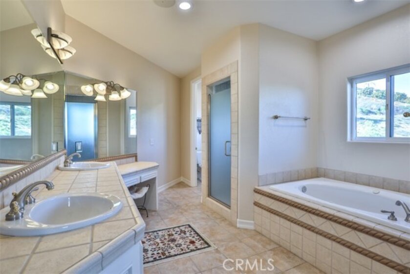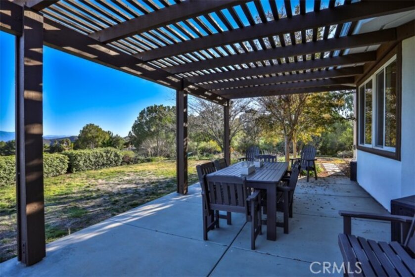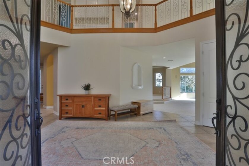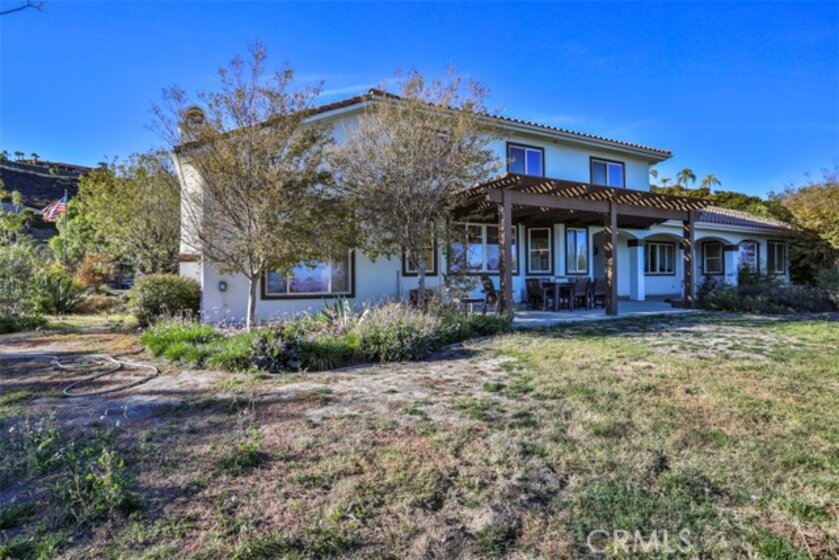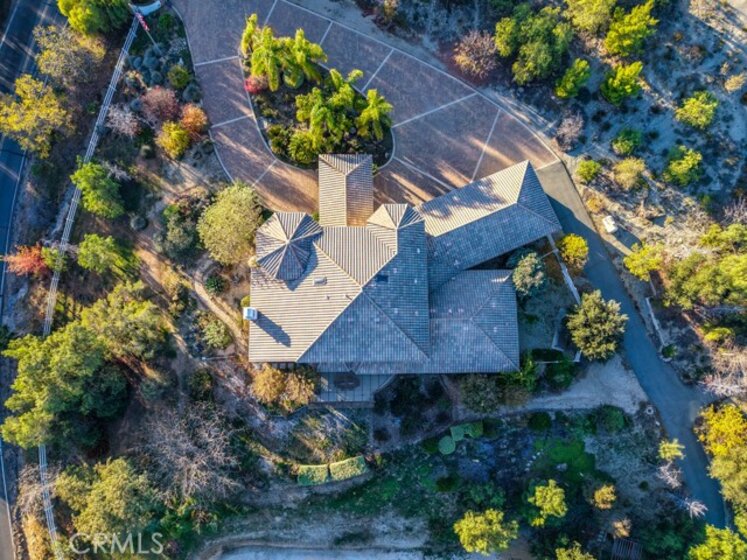 Stunning La Cresta Estate with Panoramic Valley, City-Light & Mountain Views Perched on just over five fully fenced acres, this exceptional custom La Cresta estate offers breathtaking views of the Temecula Valley, city lights, and surrounding mountains. A dramatic stone and wrought-iron gated entry leads to an expansive circular paver driveway, porte cochère, and elegant valet-style entrance. Inside, a grand foyer with soaring ceilings opens to an expansive great room featuring a fireplace, built-ins, and walls of windows framing the spectacular scenery. The open-concept layout includes a formal dining room, sunny breakfast nook, and a well-appointed kitchen with large island, built-in refrigerator, ample storage, and ideal for both entertaining and everyday living. The main-level primary suite offers a walk-in closet, dual vanities with makeup area, soaking tub, and spacious walk-in shower. Also on the main floor are a large office with closet, powder room, full bath, and an oversized laundry room with chute. Upstairs, a sweeping curved staircase leads to a secondary primary or junior suite with ensuite bath, two additional bedrooms, a full bath, and a light-filled bonus room/library. Outdoor living is equally impressive with covered patios, manicured grounds, fruit trees, walking paths, and a grassy area with room for a pool. At the highest point of the property, a viewing platform captures unforgettable 360-degree views and star-filled skies. Equestrian amenities include a large breezeway barn with three in-and-out stalls, tack room, workshop, paddocks, round pen, wash stations, and a separate living quarters featuring a bedroom, bathroom, kitchen, and living area with its own septic system—ideal for guests, caretakers, or rental potential. Additional fenced areas accommodate small livestock or gardening. This meticulously maintained, estate includes paid-off solar array, a tankless water heater, and mature landscaping throughout. Located in the desirable Santa Rosa Plateau, enjoy privacy, trails, and open space just minutes from schools, shopping, the 15 freeway, and Temecula Wine Country. A rare opportunity to own a refined equestrian estate offering luxury, versatility, and breathtaking views.