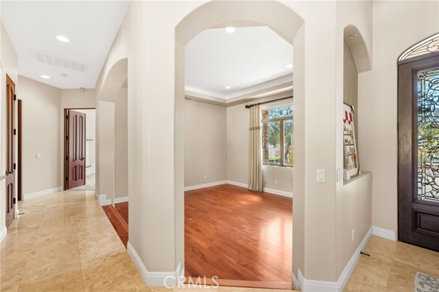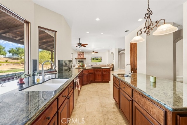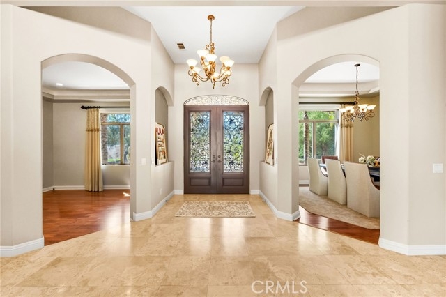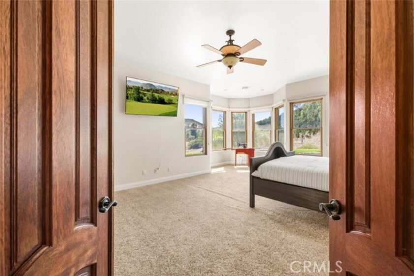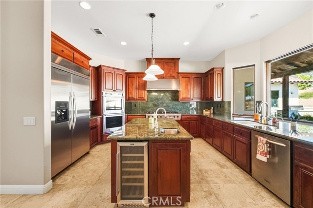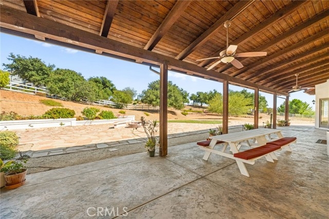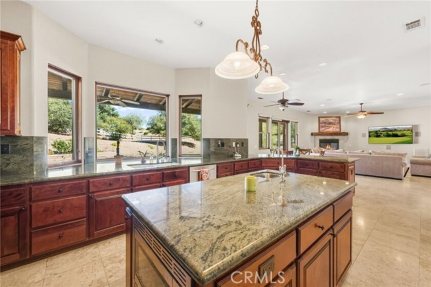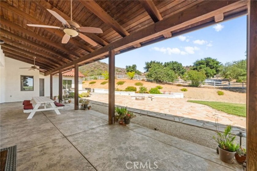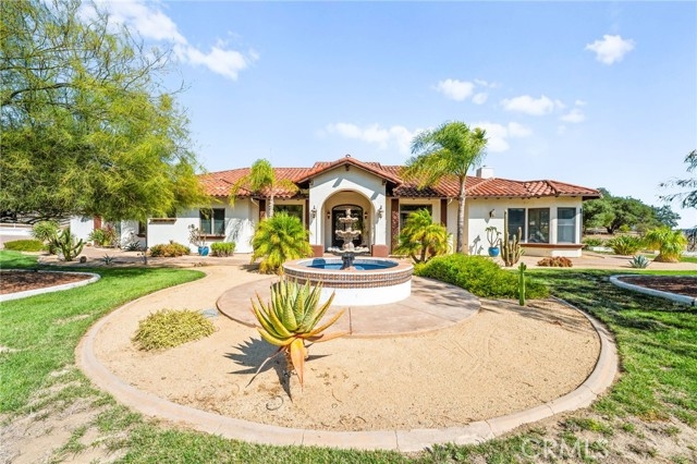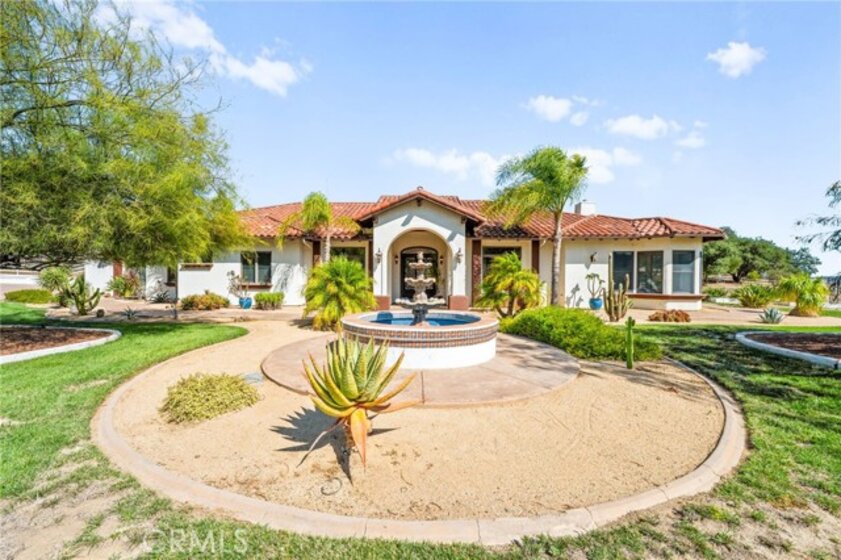 Set on 5.85 acres of mostly flat, usable land, this perfect single story, 3,492 square foot custom estate offers 4 bedrooms and 3.5 bathrooms, located close to the entrance of La Cresta. The automatic gate opens to over 7,000 square feet of custom reinforced concrete—perfect for RVs, large vehicles, or ample guest parking. Inside, you’ll find 10-foot ceilings, 8-foot solid mahogany doors, and 18-inch travertine flooring. The gourmet kitchen is designed for both everyday living and entertaining, with cherry cabinetry, a spacious island with prep sink, wine refrigerator, and premium appliances including a Viking cooktop, KitchenAid double convection ovens, built-in refrigerator, and dishwasher. Formal living and dining room areas feature walnut floors and coffered ceilings with ambient lighting. The primary suite offers a spa-like walk-in shower, jetted soaking tub, dual closets, and elegant finishes. Spend time in the 1,130-square-foot 3 car garage that includes a workbench, attic access, unique ceiling fan, and a 30-foot depth to easily accommodate large trucks. Outdoors, enjoy a built-in Kitchenaid BBQ, fire pit with ambient lighting, terraced landscaping, and a covered patio perfect for year-round gatherings. A 22kW Generac generator provides automatic backup power for peace of mind. 21977 Paseo Chico delivers the best of country living in the prestigious community, La Cresta, with quick access to wineries, restaurants, and shops.