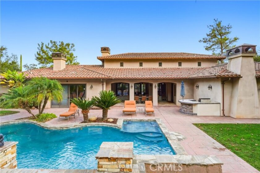 Just Listed!!! – Premier Bear Creek Estate | First Showing Jan 10th, 1:00–4:30 PM! Welcome to Resort Living at Its Finest in the heart of the prestigious guard-gated community of Bear Creek, home to the legendary Jack Nicklaus Signature Golf Course. Nestled on over an acre of private, manicured grounds, this stunning single-story Tuscan-inspired estate offers the ultimate in luxury, privacy, and functionality. Perfect for golf enthusiasts, Pickleball players, and those who crave a high-end lifestyle, this home is a rare blend of elegance and comfort. With soaring beamed ceilings, an expansive open floor plan, and seamless indoor-outdoor living, every detail is designed to impress. Key Features: Spacious single-level living with 5850 sq ft (ADU sq footage included) Gourmet kitchen featuring dual islands, Thermador range, Sub-Zero fridge & freezer, custom cabinetry, and a wine room Grand great room with dramatic ceiling beams and fireplaces Game/entertainment room with full bar—perfect for hosting Separate Casita (ADU) with private entrance, kitchenette, full bath, and walk-in closet—ideal for guests, in-laws, or college-aged family Resort-style backyard with pool, spa, outdoor kitchen, BBQ island, and garden paths leading to tranquil gazebos Oversized 3-car garage with custom wood doors Enjoy 24/7 gated security, access to a top-tier fitness center, tennis, pool, clubhouse, and Pickleball courts, all within the community.