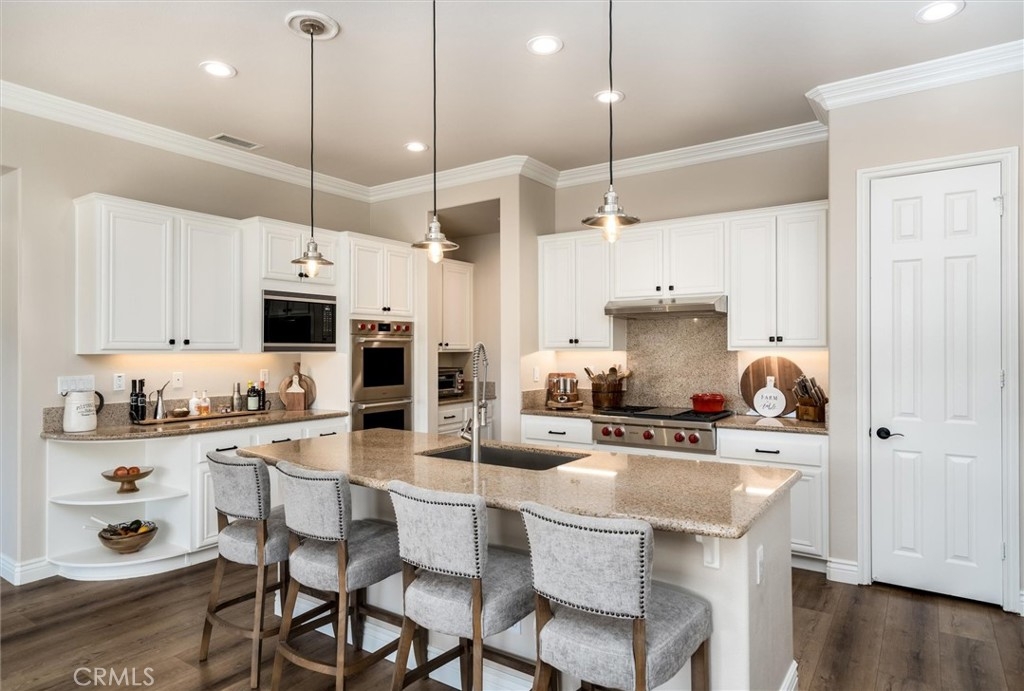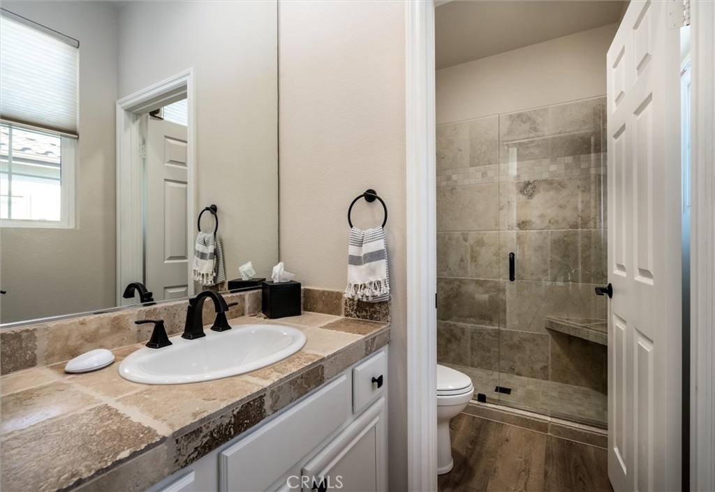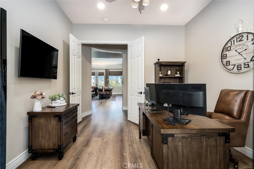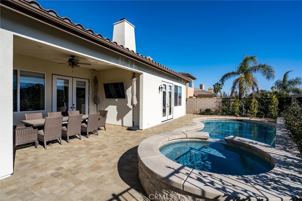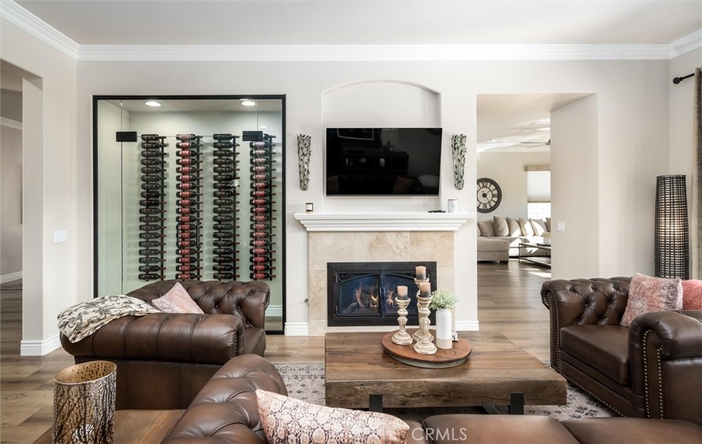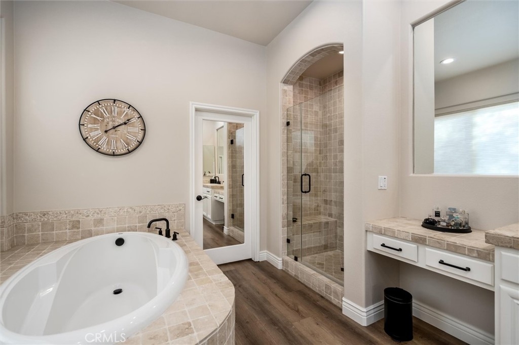 Located in one of Southern California’s premier gated golf course communities this stunning single level Bear Creek home has just undergone extensive renovations inside and out. Improvements began with top of the line LPV floors throughout the home which was followed by painting inside and out. The kitchen was remade with Wolf stove, oven and microwave and a Cove dishwasher. Cabinets were refinished in white and pull out drawers were added along with slow close doors. The family room was enhanced with custom cabinetry including lighting, a custom made fireplace door and surround sound system with flush mounted speakers. In the living room the fireplace was updated, stereo speakers added and a wine storage room was created. Both ensuite guest baths were remodeled with travertine shower conversions and counter tops. Toilets, bath hardware and fixtures were replaced throughout the home. Lighting inside and out was updated and enhanced. Landscaping both front and rear was removed and replaced. The backyard now features a luxurious solar heated pool and spa, and extensive use of Tuscan inspired pavers. The pavers were extended to the front yard as well as courtyard. A beautiful fountain accents the entry and leads to the custom etched glass front door. The two and a half car garages have recent epoxy floors, updated lighting, built in cabinets and custom racks. The home also features paid for solar and new window coverings throughout. Air conditioners and water heater have been replaced. Bear Creek amenities include swimming pool, spa, sauna, fitness center as well as tennis and pickle ball courts. All TV’s are included, pizza oven is excluded. Priced $200,000 below most recent comp. This home and similar listings of this floor plan have shown the square footage as 3078 and 3072 square feet. Buyer to verify all information and square footages. BBQ and island are excluded from sale. Seller is a licensed real estate broker.