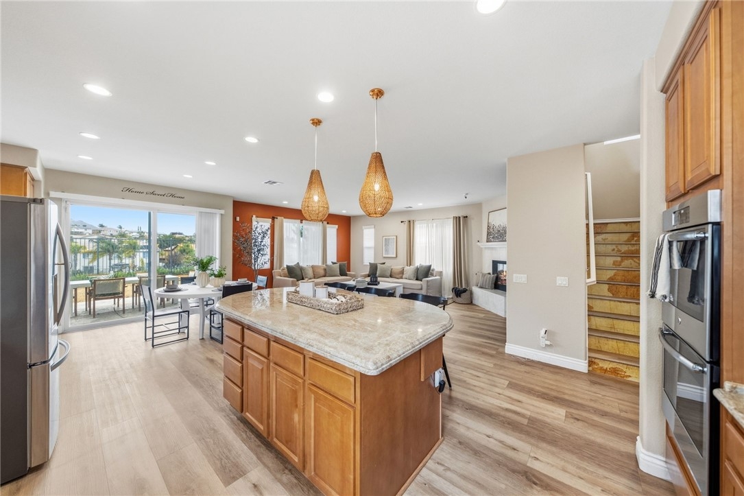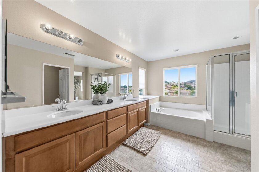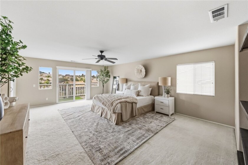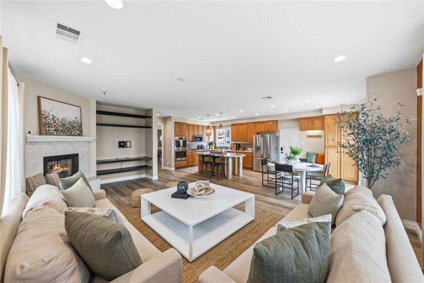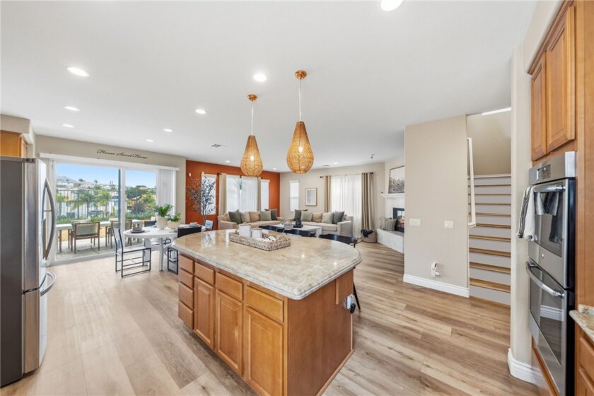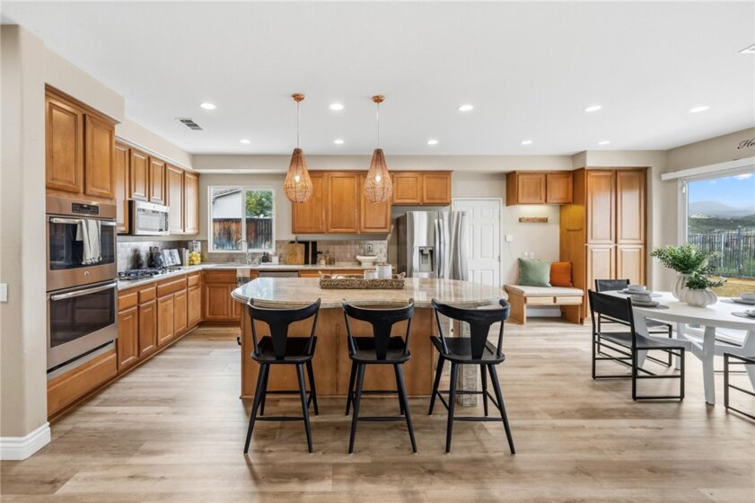 Welcome to this spacious and highly versatile 4-bedroom, 3 full bathroom home in Murrieta offering no HOA, low taxes, stunning views, and no rear neighbors - a rare combination that blends flexibility, functionality, and lifestyle. This unique property offers an incredible opportunity for multi-generational living or income potential, with the front portion of the home thoughtfully designed to be sectioned off for guests, extended family, college-aged kids, or traveling nurses. This space features one bedroom, one full bathroom, washer/dryer hookups, a kitchenette, living room, and dining area, creating a comfortable independent living option - while still maintaining ample space throughout the rest of the home. Prefer a traditional layout? The home easily functions as a standard single-family residence - the choice is yours. Inside, you’ll find an inviting open-concept kitchen and family room filled with natural light, a cozy fireplace, and spacious living areas ideal for everyday living and entertaining. Upstairs offers three additional bedrooms including a spacious primary suite with private balcony, large walk-in closet, soaking tub, and serene views, plus a versatile loft space perfect for a home office, media room, or play area. Thoughtful upgrades include luxury vinyl plank flooring downstairs, quartzite kitchen countertops, custom lighting, and an upgraded guest bathroom, all contributing to a modern yet warm aesthetic. Large windows throughout provide abundant natural light and enhance the home’s airy feel. Outside, enjoy a charming front porch, an extended driveway with parking for up to 8 vehicles total, and privacy with no rear neighbors - a rare find. Conveniently located in the heart of Murrieta, just minutes from shopping, golf courses, parks, healthcare facilities, and easy freeway access, this home offers both comfort and convenience in one of Southern California’s most desirable areas. A rare opportunity with flexibility, space, and income potential - don’t miss it!