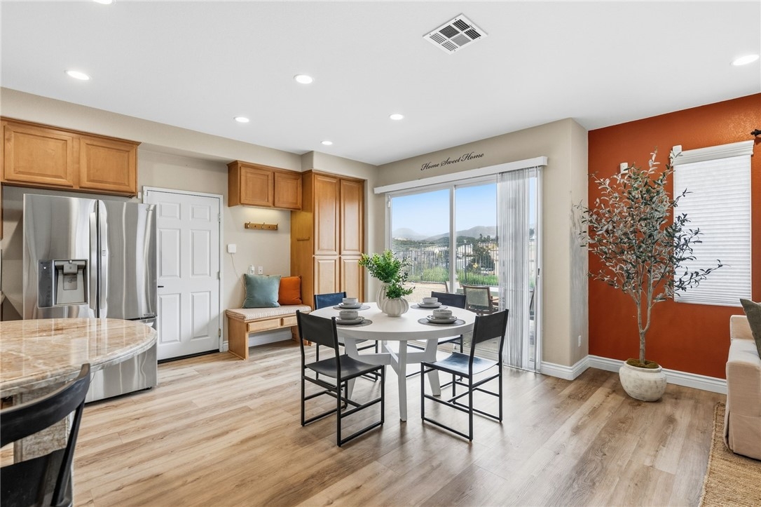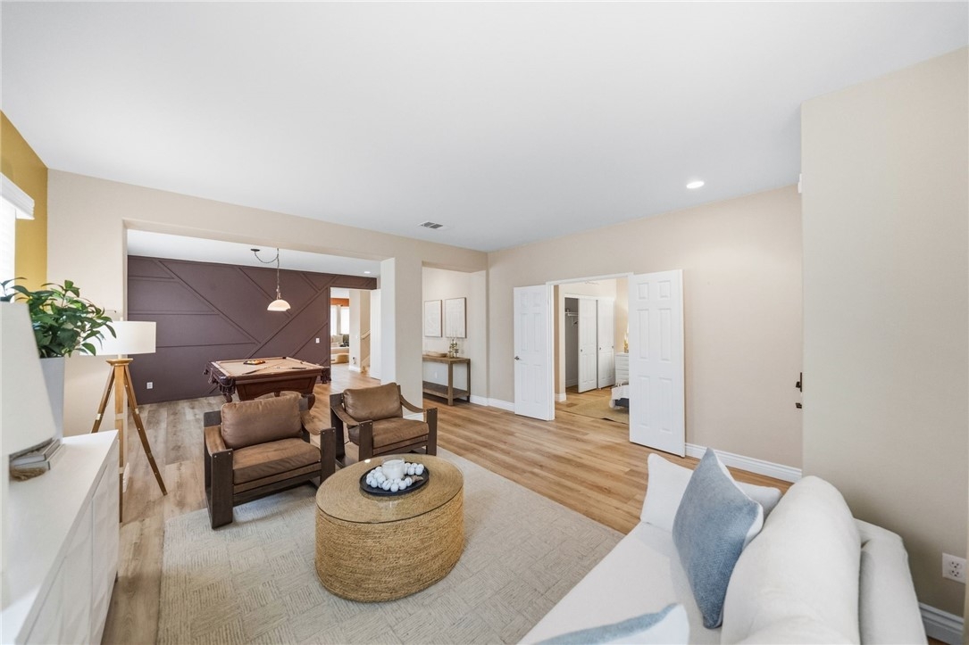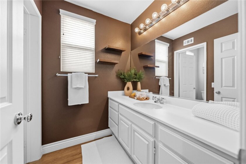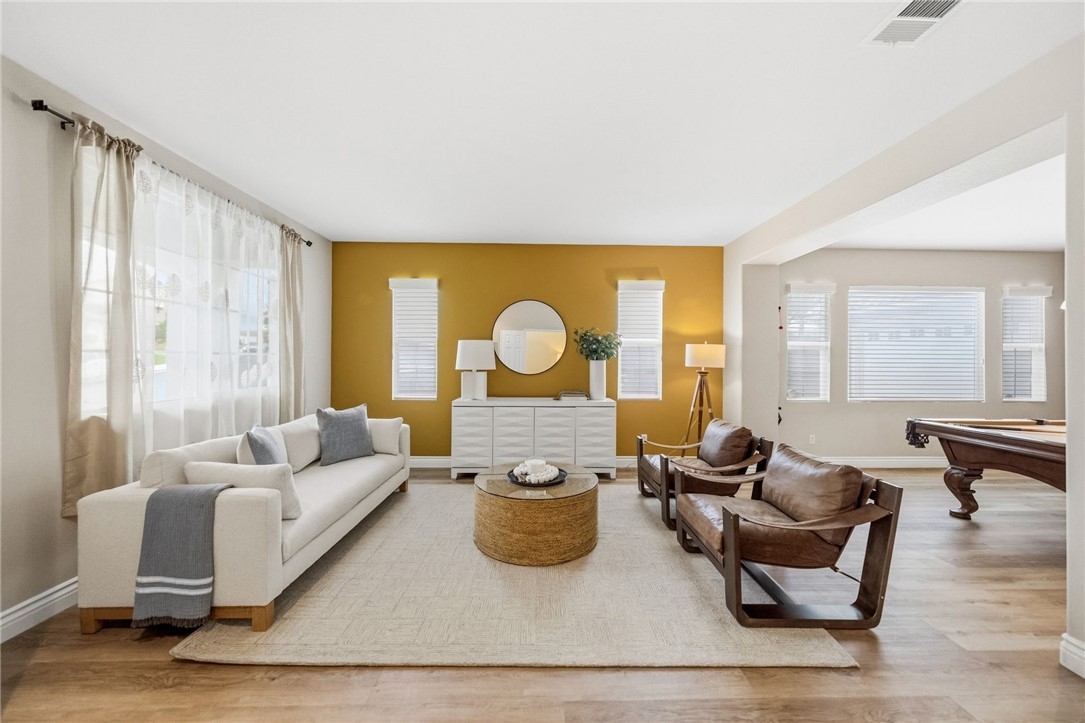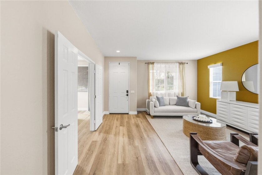Welcome to this spacious and highly versatile 4-bedroom, 3 full bathroom home in Murrieta offering no HOA, low taxes, stunning views, and no rear neighbors - a rare combination that blends flexibility, functionality, and lifestyle. This unique property offers an incredible opportunity for multi-generational living or income potential, with the front portion of the home thoughtfully designed to be sectioned off for guests, extended family, college-aged kids, or traveling nurses. This space features one bedroom, one full bathroom, washer/dryer hookups, a kitchenette, living room, and dining area, creating a comfortable independent living option - while still maintaining ample space throughout the rest of the home. Prefer a traditional layout? The home easily functions as a standard single-family residence - the choice is yours. Inside, you’ll find an inviting open-concept kitchen and family room filled with natural light, a cozy fireplace, and spacious living areas ideal for everyday living and entertaining. Upstairs offers three additional bedrooms including a spacious primary suite with private balcony, large walk-in closet, soaking tub, and serene views, plus a versatile loft space perfect for a home office, media room, or play area. Thoughtful upgrades include luxury vinyl plank flooring downstairs, quartzite kitchen countertops, custom lighting, and an upgraded guest bathroom, all contributing to a modern yet warm aesthetic. Large windows throughout provide abundant natural light and enhance the home’s airy feel. Outside, enjoy a charming front porch, an extended driveway with parking for up to 8 vehicles total, and privacy with no rear neighbors - a rare find. Conveniently located in the heart of Murrieta, just minutes from shopping, golf courses, parks, healthcare facilities, and easy freeway access, this home offers both comfort and convenience in one of Southern California’s most desirable areas. A rare opportunity with flexibility, space, and income potential - don’t miss it!