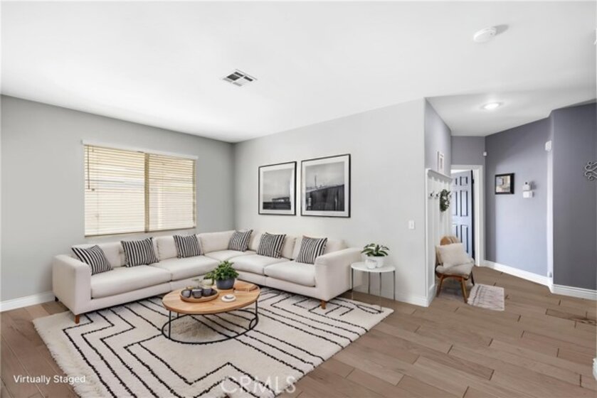 Gorgeous single-story home with a 3-car garage located in the highly coveted West Murrieta Grizzly Ridge community. From the moment you arrive, you’ll appreciate the charming gated private courtyard and impressive double-door entry. Inside, the home features updated LVP flooring throughout the majority of the home and brand-new carpet in the bedrooms, creating a fresh and modern feel. The completely remodeled kitchen showcases updated cabinetry, beautiful quartz countertops, stainless steel appliances, modern LED lighting, and stunning custom pendant lighting over the breakfast bar. The kitchen offers bar seating, a dining area just off the kitchen, and an additional formal dining room, perfect for everyday living or entertaining. The kitchen opens seamlessly to the inviting family room with a cozy fireplace, while a separate formal living room provides additional space for gatherings.The spacious primary suite features a walk-in closet, relaxing soaking tub, and separate step-in shower. Down the hall you’ll find three additional bedrooms and a full bathroom, providing comfortable space for family or guests. Step outside to your private backyard retreat, complete with a large covered patio, low-maintenance turf, custom walkway, and updated vinyl fencing—perfect for relaxing or entertaining. Additional highlights include an indoor laundry room with custom storage and a spacious 3-car garage. All of this in a prime West Murrieta location with NO HOA and LOW TAXES.
