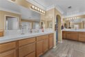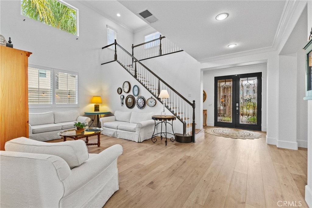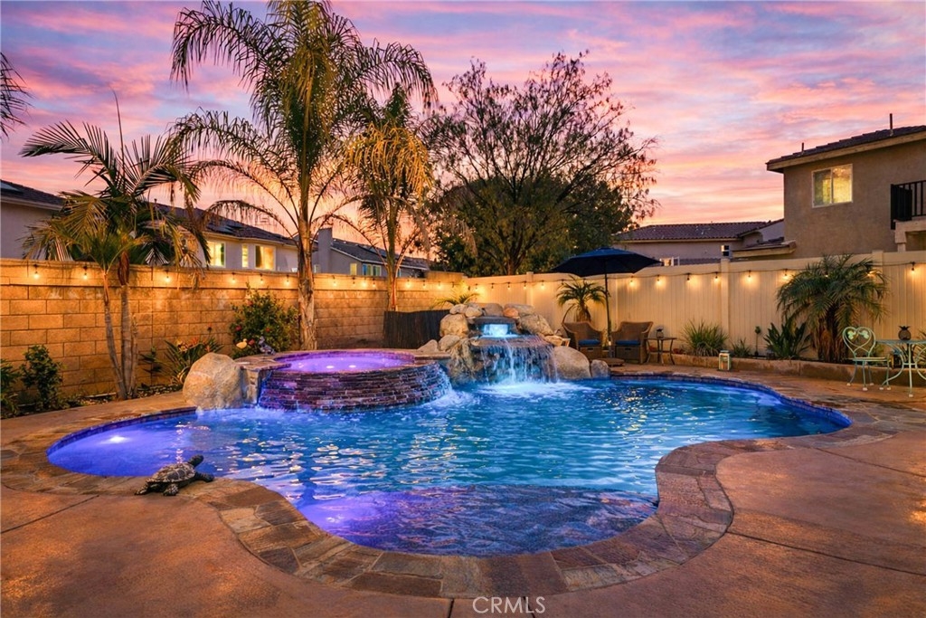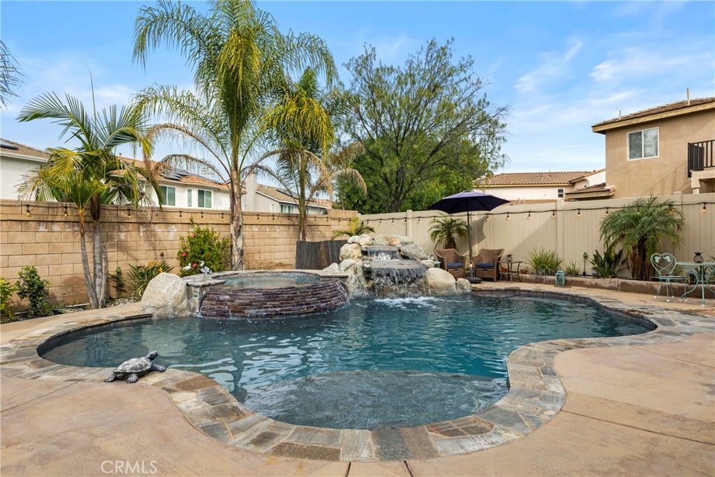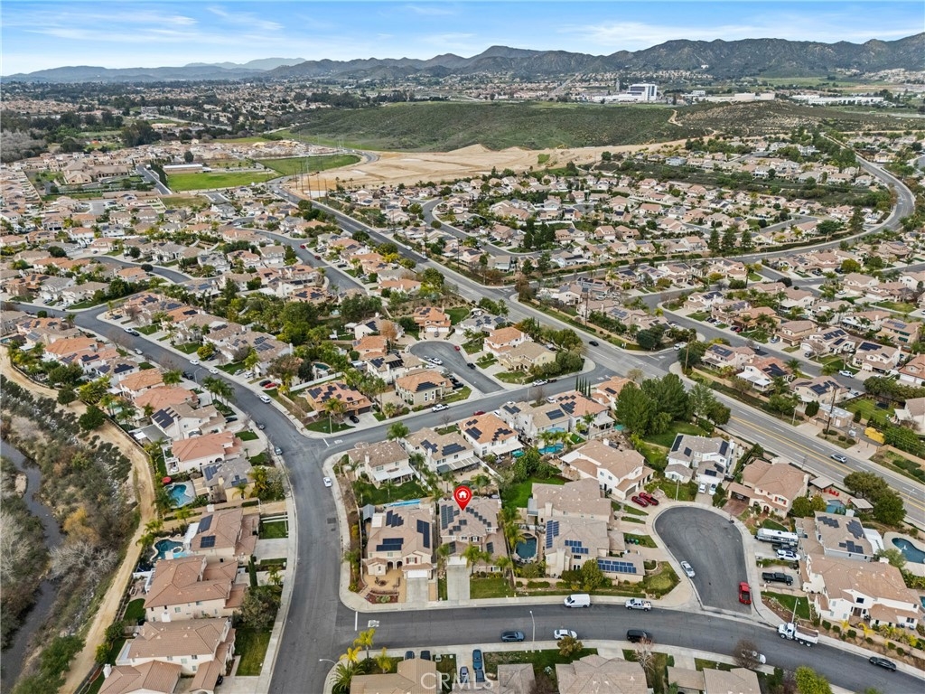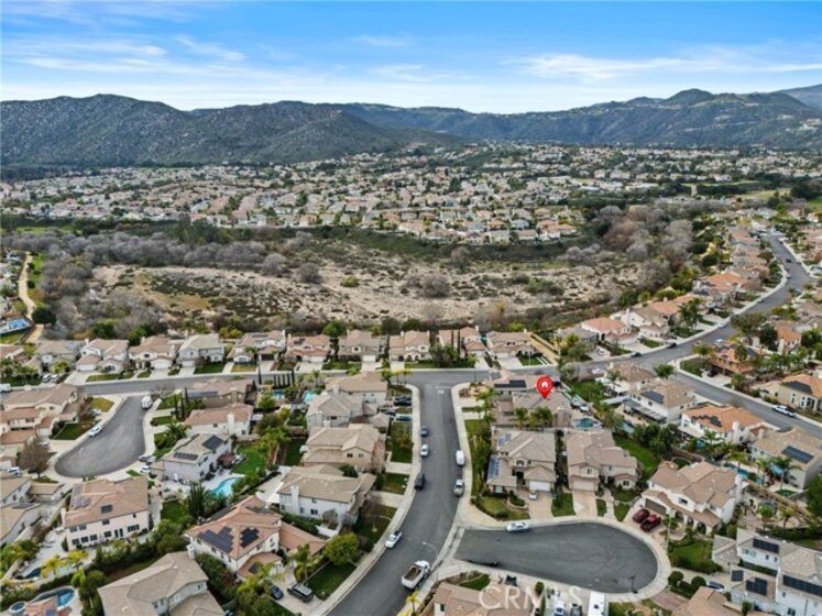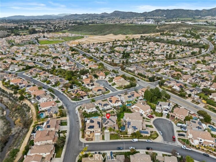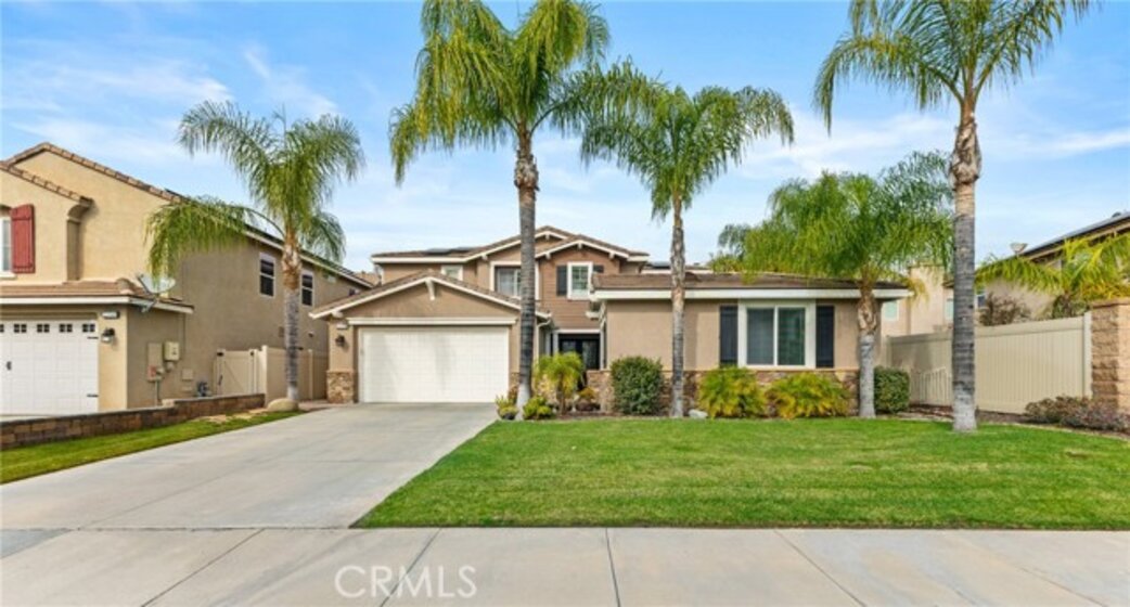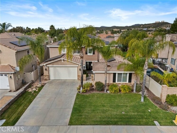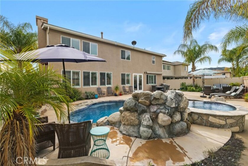 Welcome to the home you've been searching for. This stunning 6 bedroom, 4,000+ sq ft pool home located in the highly sought-after Copper Canyon community of Murrieta, one of the city’s most desirable neighborhoods and close to top-rated schools, shopping, golf, and outdoor recreation. A formal entry opens to a bright, well-designed floor plan featuring high ceilings, crown molding, upgraded flooring, and custom paint throughout. The home offers formal living and dining spaces plus a beautifully upgraded chef’s kitchen with granite countertops, stainless steel appliances, a large center island, and a built-in refrigerator—opening seamlessly to a spacious family room, perfect for everyday living and entertaining. The MAIN FLOOR INCLUDES 2 BEDROOMS- one with a full ensuite bathroom, ideal for guests or a home office. Upstairs, the expansive primary suite SPANS THE ENTIRE WIDTH OF THE HOME with a fireplace and ensuite bath, and 2 closets. Upstairs also has three additional generously sized bedrooms one of which has an additional en-suite bath. The backyard is designed for both relaxation and entertaining, featuring a custom pool and spa, spacious patio, and retractable awning. Additional highlights include 42 FULLY PAID-OFF SOLAR PANELS, a brand-new whole-house water filtration system, two newer A/C units, plantation shutters, Pebble Tec pool finish, and a converted 3rd car garage offering flexible space for a gym, media room, or home office. Click virtual tour to see the listing video!
