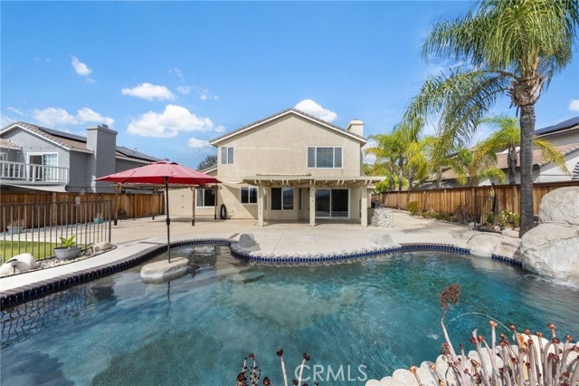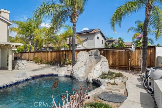 This lovely Murrieta pool home has everything you need and want. Remodeled kitchen and downstairs bathroom, upgraded PEX plumbing throughout the first floor, 4 bedrooms and 2.5 bathrooms. The primary suite has a walk in closet, dual sink vanity and soaking tub with views of the backyard and valley. Outside is the best part! The HUGE backyard offers a large pool with a jacuzzi and waterslide, patio cover, built-in BBQ, large storage shed and plenty of space for hosting or making it your own oasis. The backyard views are beautiful, especially during the sunset hour. This home also has an upgraded 200AMP electrical panel, EV charger and a spacious 3 car garage with a large driveway. Another BONUS, LOW TAXES and NO HOA! It's centrally located on Clinton Keith, between the 215 and 15 freeway, with easy access to local shopping centers and wonderful Murrieta Schools. Don't miss out on this GREAT home that has SO much to offer!