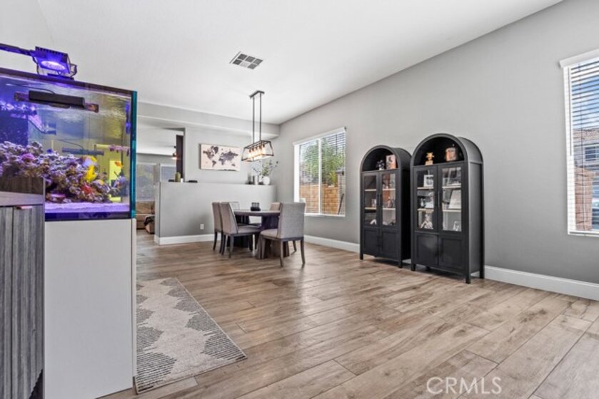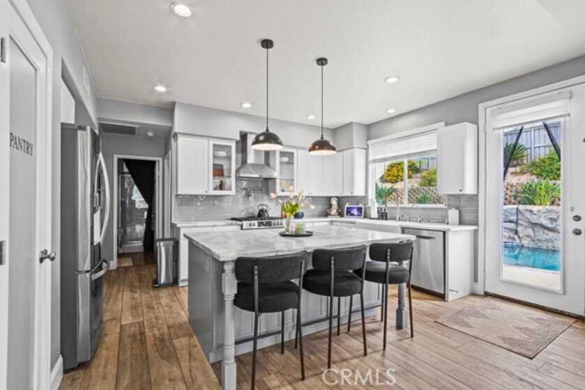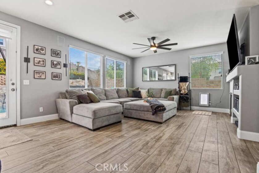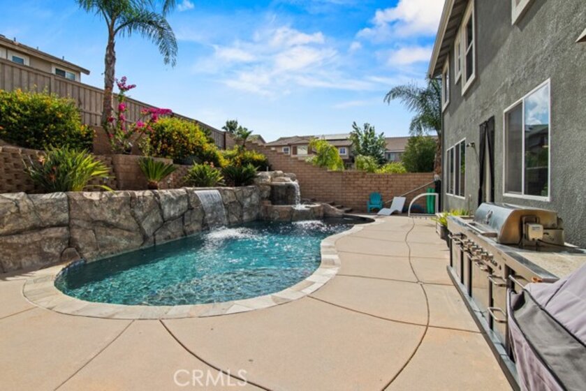 Beautifully upgraded 6-bedroom, 3-bath home with a spacious loft offering 2,778 sq ft of well-designed living space, located in a great Murrieta neighborhood. The entire downstairs has been thoughtfully remodeled, featuring stylish 5-foot plank tile flooring that mimics the look of wood. The kitchen is a true showstopper with quartz and marble countertops, a farmhouse sink, and a convenient pot filler—perfect for both everyday living and entertaining. Enjoy modern conveniences including a QuietCool whole house fan, a 6-stage alkaline reverse osmosis system, and a tankless water heater with whole-house recirculation pump.Whole house water conditioner, Energy efficiency is a bonus with 39 paid-off solar panels. Step outside to your own private resort-style backyard, complete with a saltwater PebbleTec pool, grotto, and two waterfalls—perfect for relaxing or entertaining. Additional outdoor highlights include a fire pit with built in seating , low-maintenance landscaping, and a dedicated dog run. Low Taxes ,No HOA ,Culdesac street. The home also features a custom insulated garage door with side-mount opener, adding both convenience and efficiency. This property truly combines comfort, style, and functionality—ready for you to move in and enjoy!