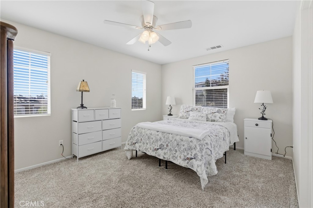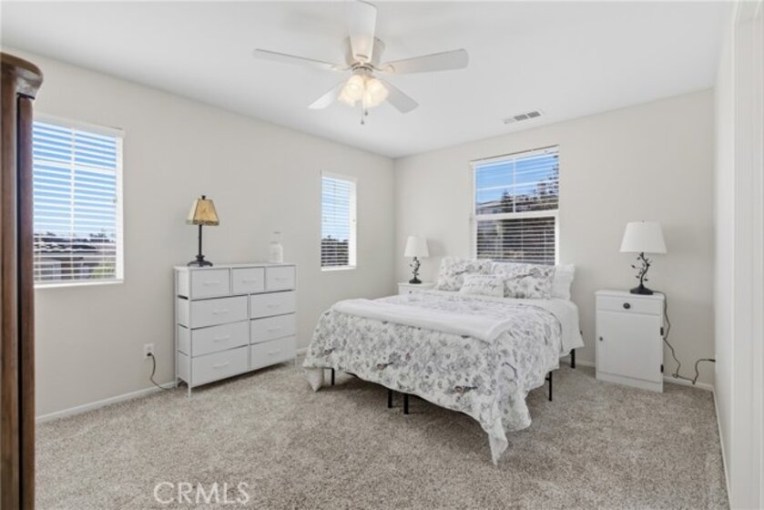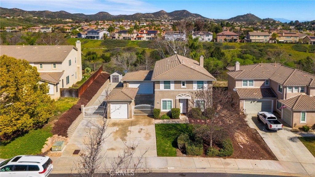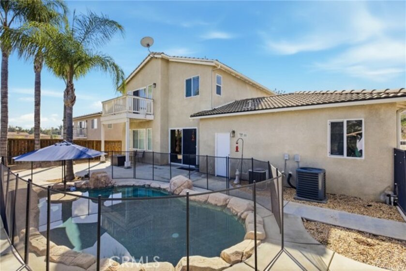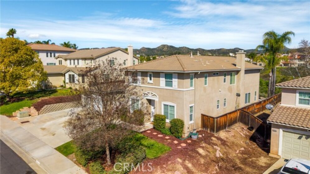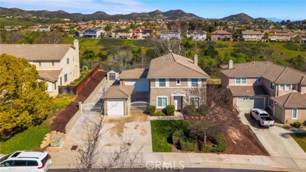 Welcome to this stunning canyon-view pool home in Murrieta, where space, comfort, and scenery come together beautifully. This spacious residence offers 4 bedrooms and 3 full bathrooms, including a bedroom and full bath downstairs—ideal for guests or multigenerational living. The large family room opens to the kitchen and is framed by breathtaking views, making it perfect for both entertaining and everyday enjoyment. Upstairs, the generous primary suite is a true retreat, featuring beautiful views, a private balcony to soak in the scenery, and a large walk-in closet. The primary bathroom includes a separate tub and shower. Secondary bedrooms are impressively sized with walk-in closets, and the versatile loft area is perfect for a home office, playroom, or media space. Step outside to your private backyard oasis with a sparkling Pebble Tec pool complete with an in-pool table, umbrella, and safety fence—designed for both fun and peace of mind. The property also offers RV parking, a two-car garage with direct access, and an additional detached single-car garage. Along the side of the home, a large gated courtyard provides a safe and inviting space for kids to play or for outdoor gatherings, with a convenient sliding door that opens directly to the formal living and dining areas. With incredible views, thoughtful features, and plenty of space inside and out, this home truly has it all—plus no HOA, close proximity to a newly renovated dog park, and easy access to shopping and the freeway for commuters.