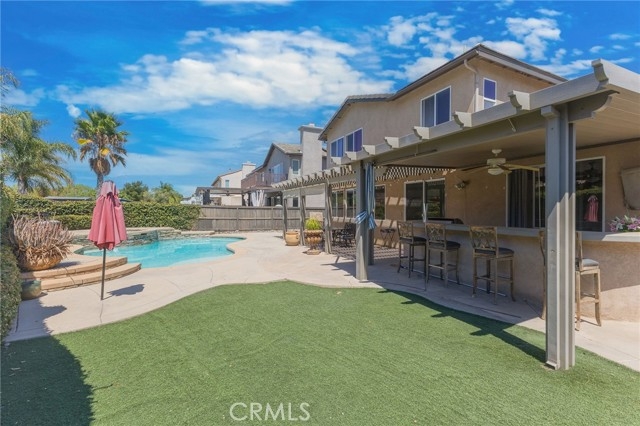 Welcome to Murrieta west side. A masterpiece of comfort and elegance nestled in one of Murrieta’s most sought-after neighborhoods. This meticulously cared-for home blends modern sophistication with timeless charm, offering an unparalleled living experience tailored to meet the needs of today’s discerning homeowner. Step through the beveled-glass entrance into a sunlit sanctuary, where soaring ceilings and an open-concept design create a warm, inviting atmosphere. The heart of the home is the gourmet kitchen, featuring granite countertops, custom cabinetry, stainless steel appliances, and a generous island—perfect for hosting family and friends. Adjacent to the kitchen, the family room offers a cozy retreat with serene views of your lush backyard created for entertaining. Upstairs, the thoughtfully designed layout features spacious bedrooms that serve as tranquil havens. The luxurious primary suite is a standout, offering large walk-in closet. A versatile bonus room invites endless possibilities for a home office, gym, or playroom, adapting effortlessly to your lifestyle.The backyard is your personal paradise—with manicured, low maintenance landscaping, an oversized covered patio, a sparkling swimming pool and elevated spa, and a built-in BBQ with an outdoor kitchen. This space is ideal for entertaining or savoring quiet evenings under the stars.Additional highlights include an extra large laundry room with ample cabinetry and a large utility sink for convenience. For those seeking flexibility, the home boasts a fifth bedroom with its own private entrance and a ¾ bathroom, perfect for a Gen X suite, rental income, or a private guest retreat.Car enthusiasts will love the three-car garage with a remarkable 40-foot depth, capable of accommodating large vehicles or a boat. Situated in a pristine, manicured neighborhood, this home offers the perfect balance of tranquility and accessibility. You’ll be just minutes from top-rated schools, parks, shopping, dining, and everything Murrieta has to offer. Low tax rate and No HOA!