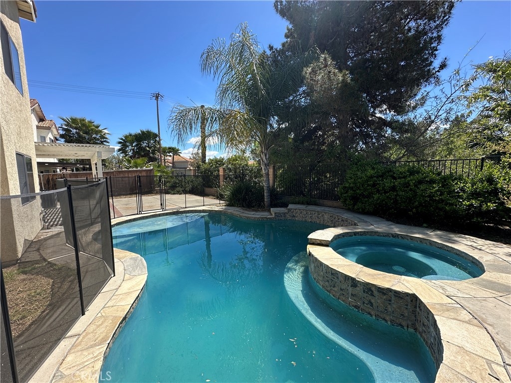 Two Story Family Pool Home in Murrieta, Features 5 Bedrooms and 3 Bathrooms, Beautiful Covered Front Porch Entry, Large Living Room, Formal Dining Room, Family Room with Fireplace, and Kitchen. The Kitchen has Breakfast bar & Nook, newer style cabinets, Countertops and appliances. Bedroom, Bathroom and Laundry Downstairs. 3 Bedrooms and Master Upstairs. The Master has Walk-in Closet, Dual sinks and Separate shower and Roman Tub. The Rear yard has covered patio and private in ground pool and spa. Great for entertaining. Attached Three Car Garage with Driveway, Close to Shopping, Schools and more.