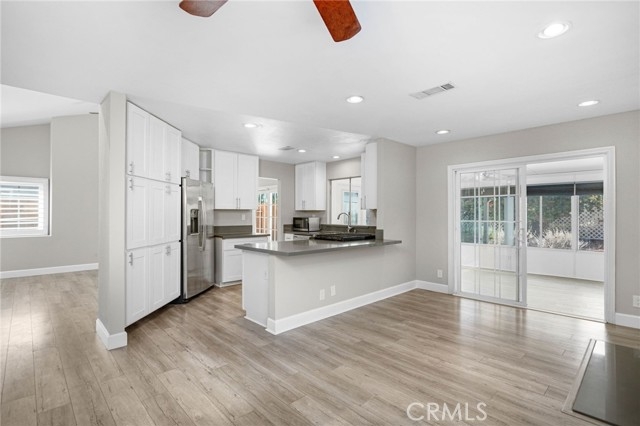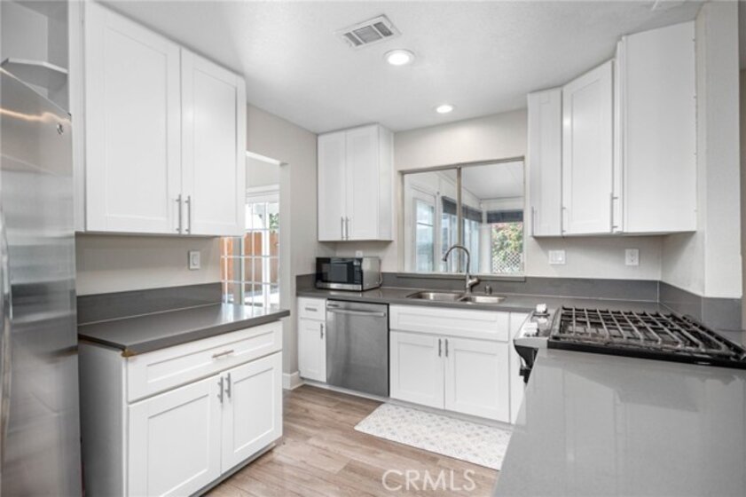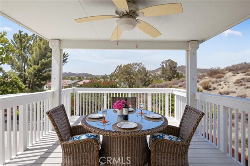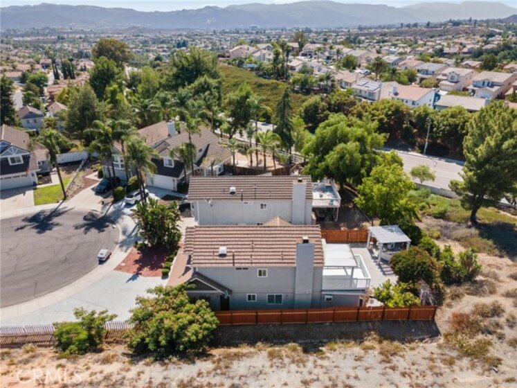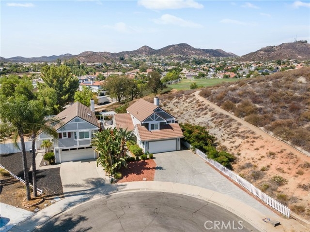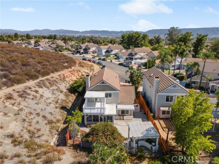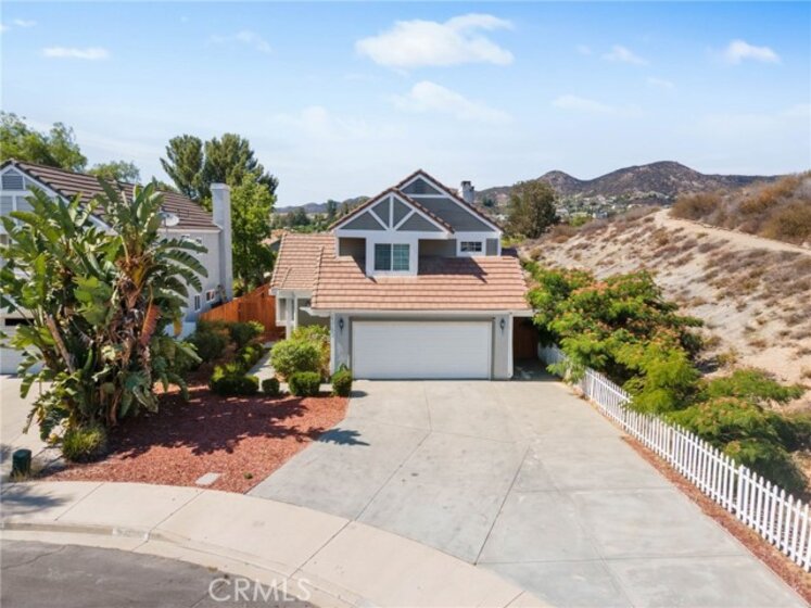 PRICE IMPROVEMENT! This move-in ready home is located at the end of a quiet cul-de-sac on Five Tribes Trail in Murrieta, offering rare privacy with neighbors on only one side and a scenic hillside on the other. Remodeled in 2019, the home features a modern kitchen with grey granite countertops, stainless steel appliances, and updated cabinetry. Laminate flooring runs throughout the main living areas, with tile finishes in the bathrooms. Plantation shutters and fresh paint inside and out give the home a clean, updated feel. Upstairs, the spacious primary suite includes a walk-in closet, dual vanities, and upgraded finishes. One of the secondary bedrooms features French doors leading out to a large private deck with views. The permitted sunroom with its own A/C adds approximately 150 square feet of additional living space. The backyard is ideal for entertaining with a built-in BBQ area. A brand new A/C system was installed in July 2024. The extra-wide driveway and two-car garage offer ample parking. No HOA and a very low tax rate. Located in the highly rated Murrieta Valley Unified School District and just minutes from shopping, freeways, and Temecula Wine Country, this home offers the perfect combination of privacy, comfort, and convenience.