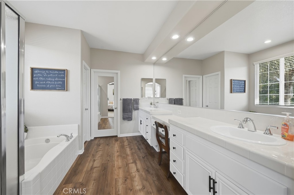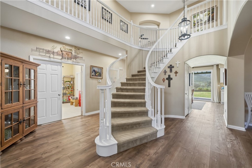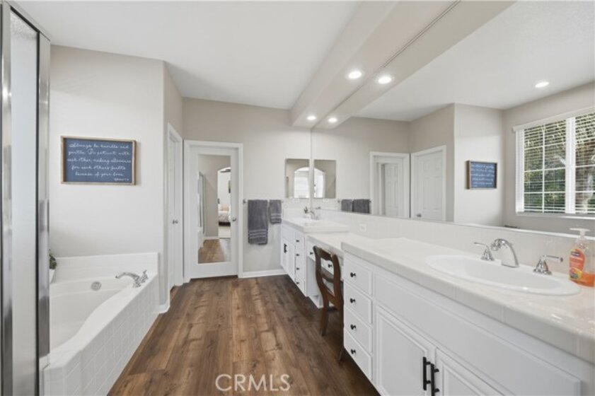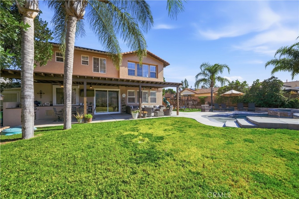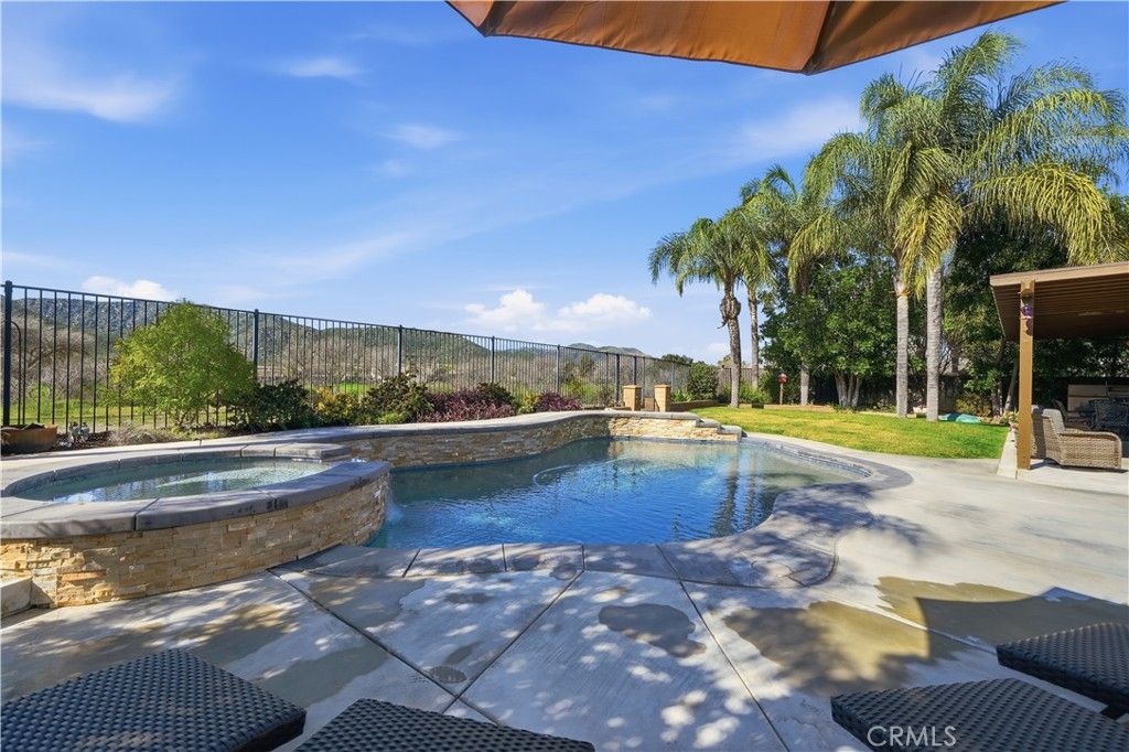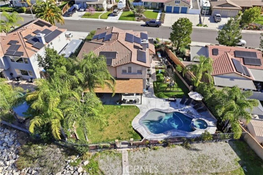 Welcome to this stunning 5-bedroom, 3-bath home nestled in one of West Murrieta’s most desirable neighborhoods, backing directly to Murrieta Creek with no neighbors behind and sweeping views toward the Santa Rosa Plateau. This beautifully upgraded, move-in-ready residence offers privacy, space, and an exceptional layout designed for both everyday living and entertaining. Inside is an expansive, light-filled floor plan featuring a formal living room and formal dining room, ideal for gatherings and special occasions. At the heart of the home is a newly remodeled kitchen with brand-new countertops, a huge center island with bar seating, high-end new appliances, and abundant cabinetry. The kitchen flows seamlessly into the family room, creating a warm and connected space. The MAIN LEVEL INCLUDES A FULL BED AND BATH, luxury vinyl plank flooring, and a convenient indoor laundry room. At the top of the stairs, you'll find a spacious primary suite featuring a private retreat—perfect for quiet times with morning coffee or evening wine or can be a home office or infant room. (the retreat can easily be convertible into a 6th bedroom with its own separate hallway entrance) The hallway bathroom has been refreshed with new faucets and newly painted cabinetry. The 3-car garage includes built-in shelving and a workbench, offering excellent storage and functionality. A major highlight of the home is the PAID SOLAR, providing long-term energy savings and efficiency. Out back is your own private resort-style yard, complete with a pool and spa, a solid covered patio, and a built-in BBQ/kitchen with refrigerator and custom concrete countertops. The beautifully landscaped yard also offers gated access to the open space behind the home, perfect for afternoon walks while enjoying the panoramic views of the Santa Rosa Plateau. Located just minutes from Murrieta Downtown, top-rated schools, shopping, dining, and entertainment! This is home!