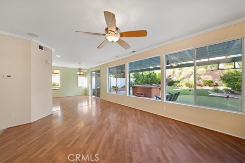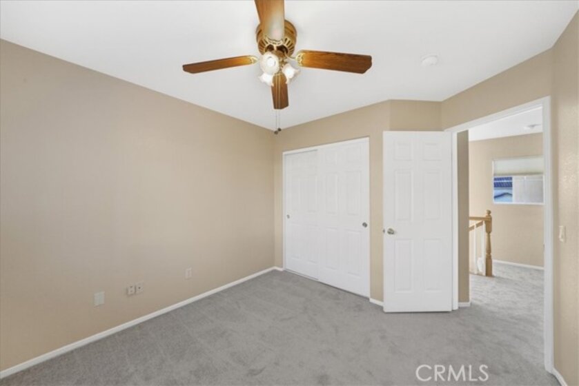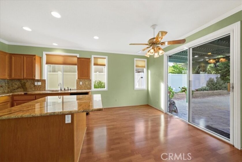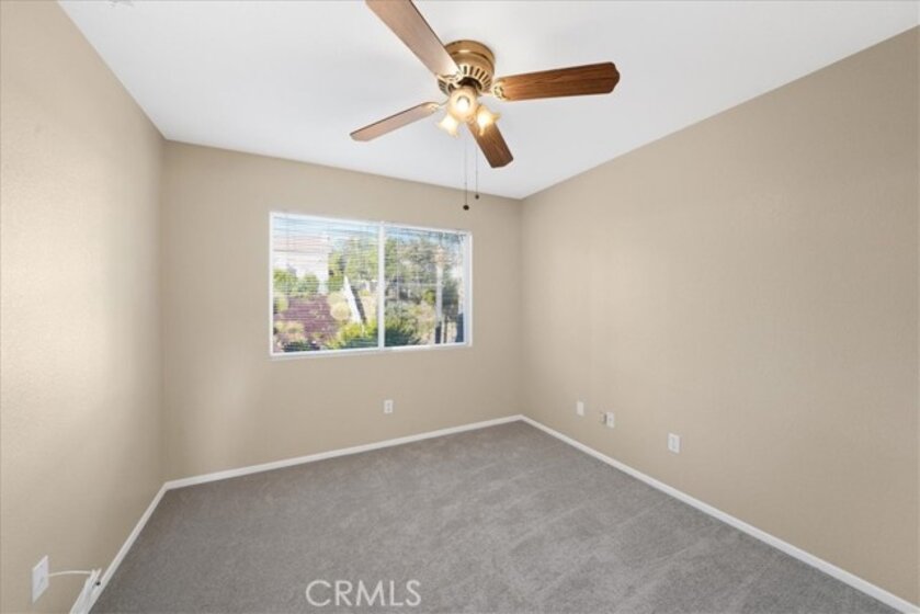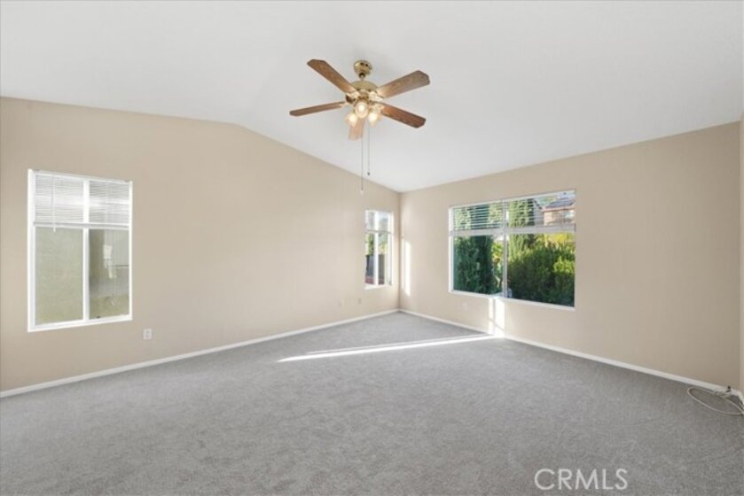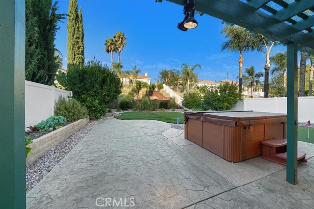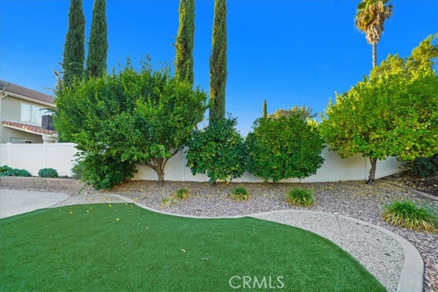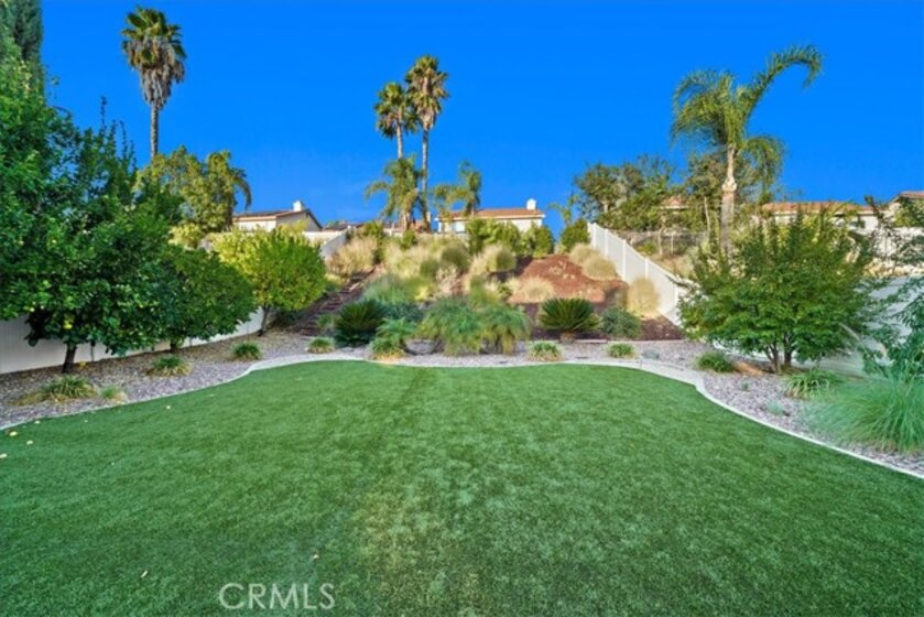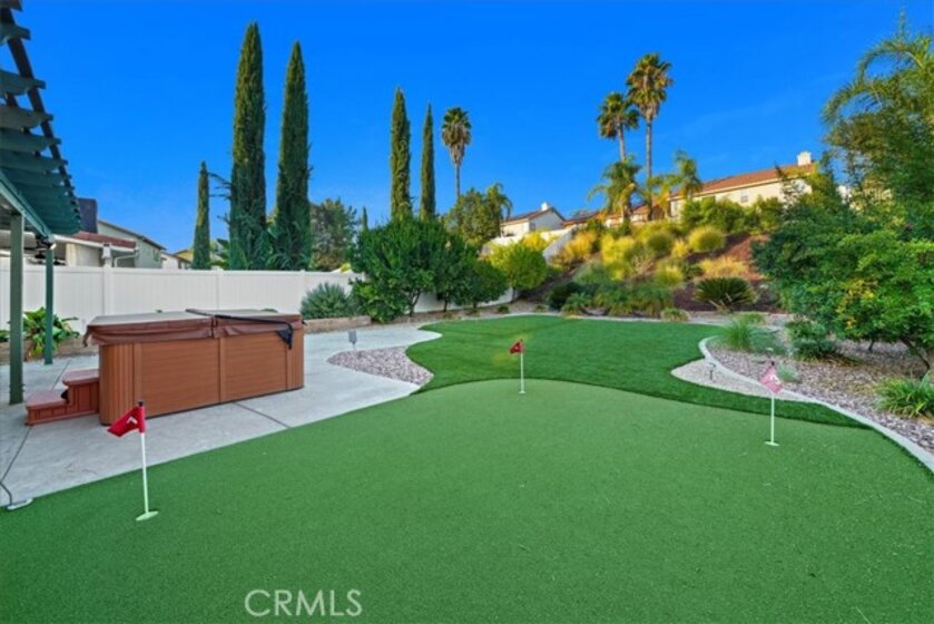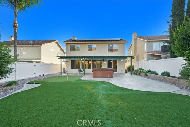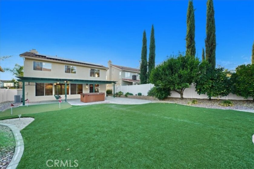 This 4-Bedroom, 2.5 bath turn-key property is perfect for those seeking comfort, sustainability, and a wonderful outdoor space. It's definitely a rare opportunity worth considering with energy efficient features such as FULLY OWNED SOLAR PANELS, a whole-house fan, and low-maintenance landscaping, leading to lower utility costs. All bedrooms are upstairs and each features new carpet, neutral paint and a ceiling fan. Downstairs you’ll find a nice mixture of laminate wood and title flooring in just the right areas for that custom home feeling. The kitchen features a granite covered island and countertops with an open concept that flows seamlessly into the family room where you’ll find a cozy fireplace, built-in entertainment unit and ceiling fan. Outdoor amenities feature a stamped concrete patio, with partial covering that also has a ceiling fan, free-standing spa, fruit trees yielding oranges, lemons, limes, palmettos, and pomegranates, a swing that accommodates up to 3 people, and miniature golf green with artificial turf. Lastly, this great location provides convenient access to shopping, restaurants, and the I-15 and I-215 freeways. Now’s your chance to own this great home with no HOA.