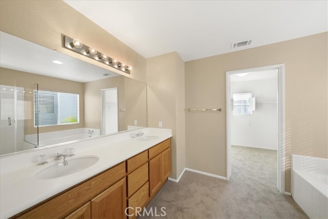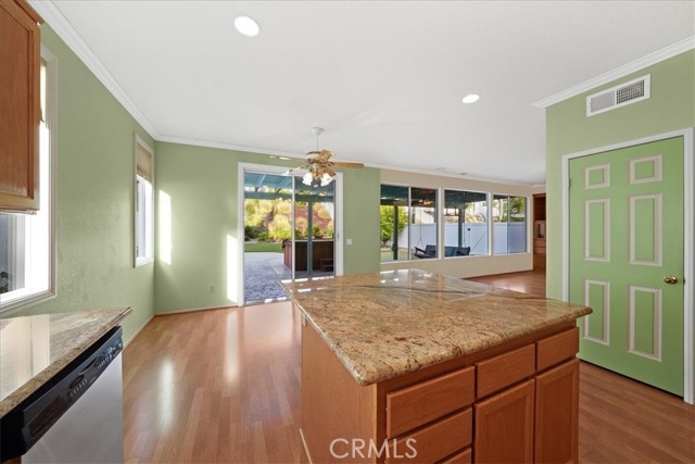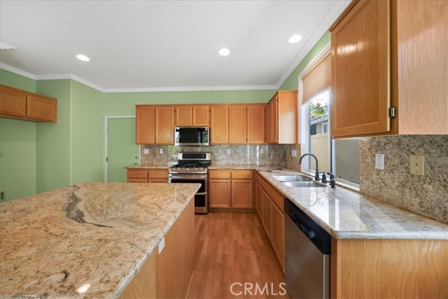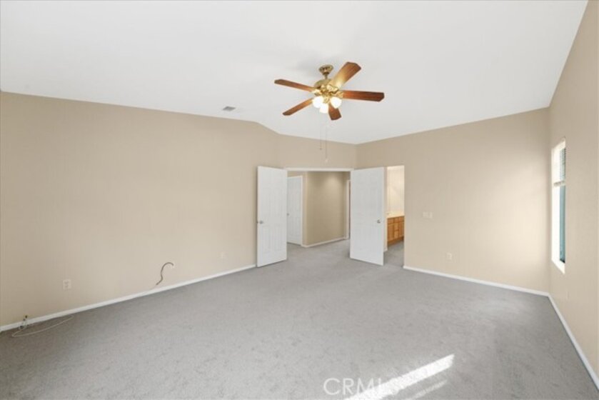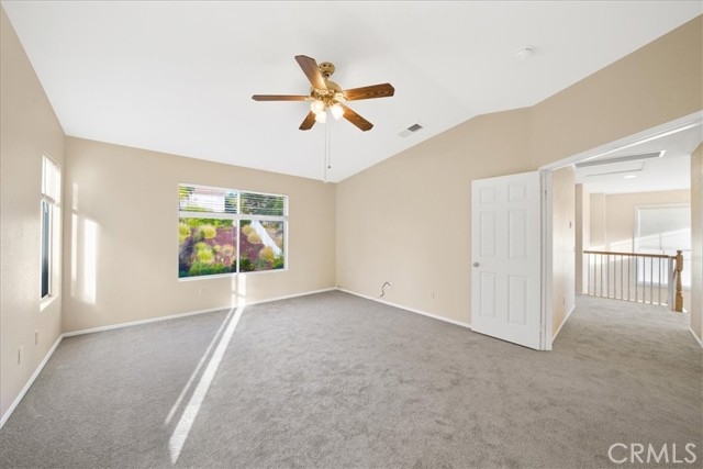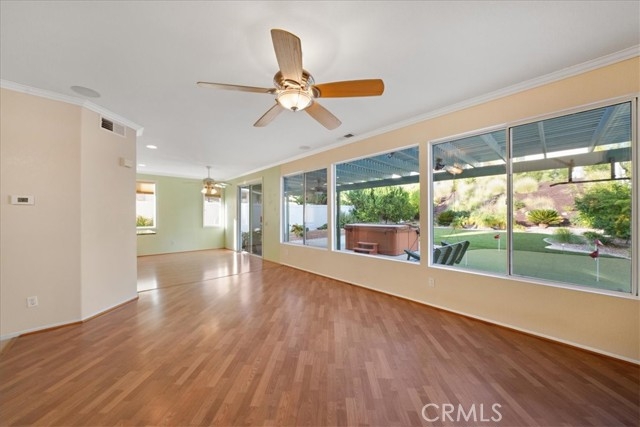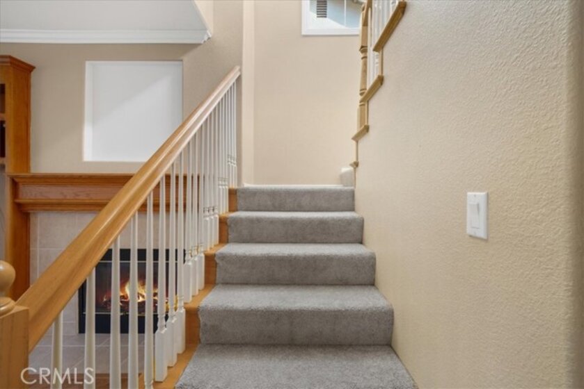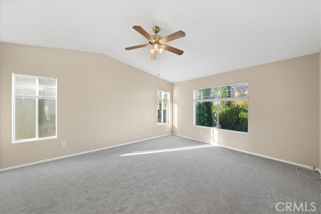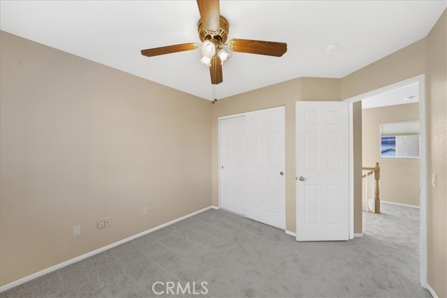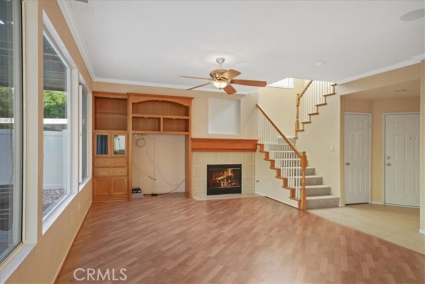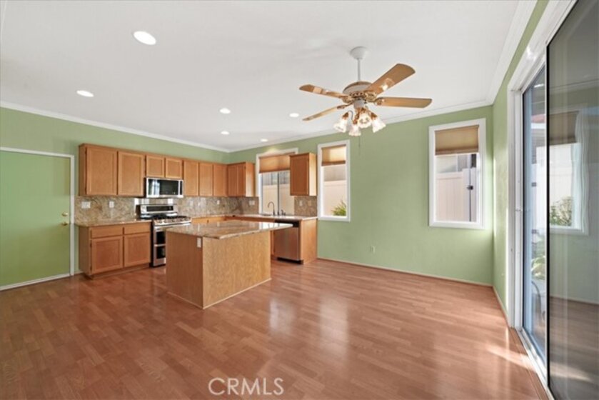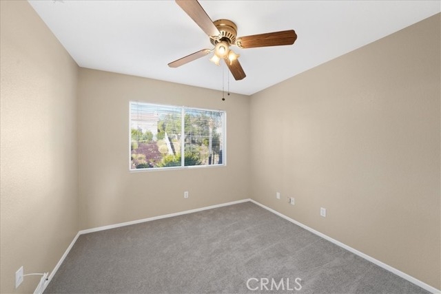 This 4-Bedroom, 2.5 bath turn-key property is perfect for those seeking comfort, sustainability, and a wonderful outdoor space. It's definitely a rare opportunity worth considering with energy efficient features such as FULLY OWNED SOLAR PANELS, a whole-house fan, and low-maintenance landscaping, leading to lower utility costs. All bedrooms are upstairs and each features new carpet, neutral paint and a ceiling fan. Downstairs you’ll find a nice mixture of laminate wood and title flooring in just the right areas for that custom home feeling. The kitchen features a granite covered island and countertops with an open concept that flows seamlessly into the family room where you’ll find a cozy fireplace, built-in entertainment unit and ceiling fan. Outdoor amenities feature a stamped concrete patio, with partial covering that also has a ceiling fan, free-standing spa, fruit trees yielding oranges, lemons, limes, palmettos, and pomegranates, a swing that accommodates up to 3 people, and miniature golf green with artificial turf. Lastly, this great location provides convenient access to shopping, restaurants, and the I-15 and I-215 freeways. Now’s your chance to own this great home with no HOA.