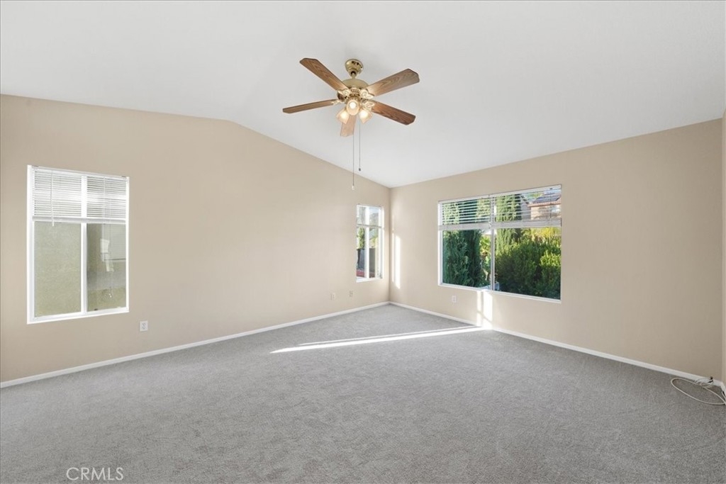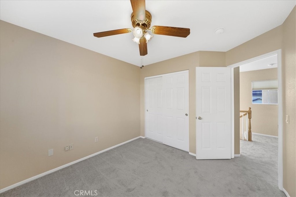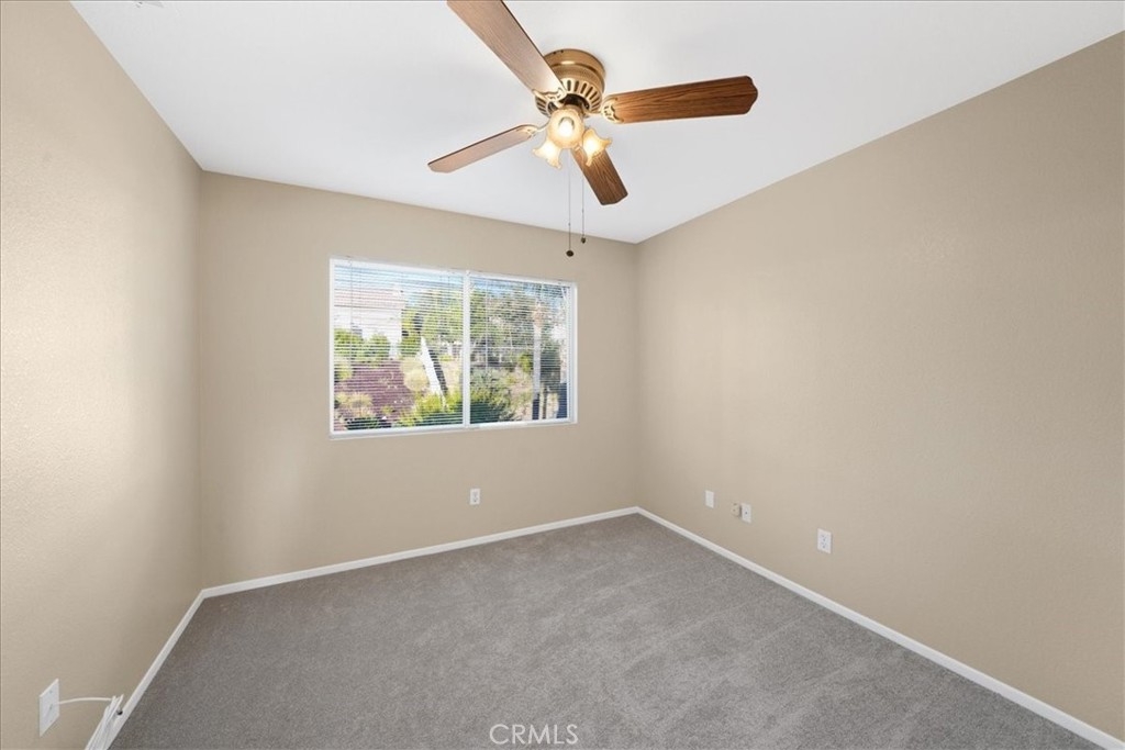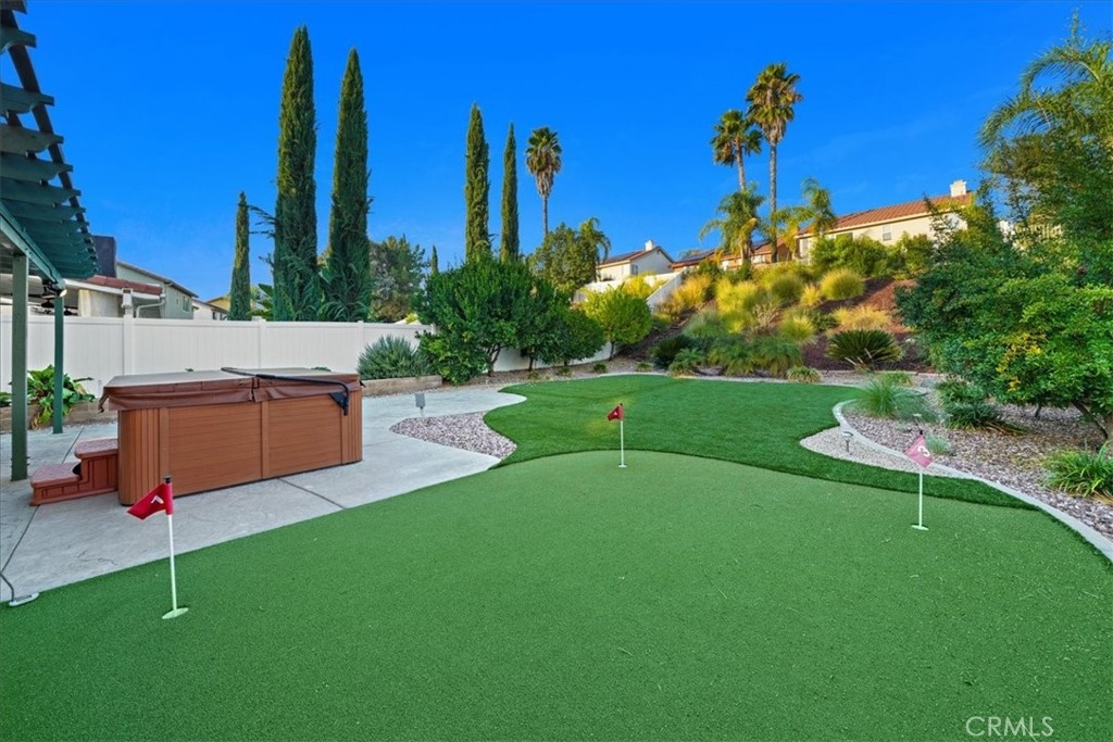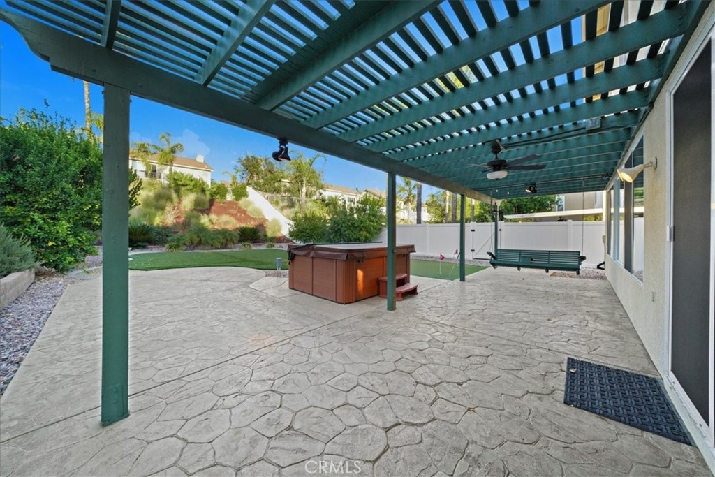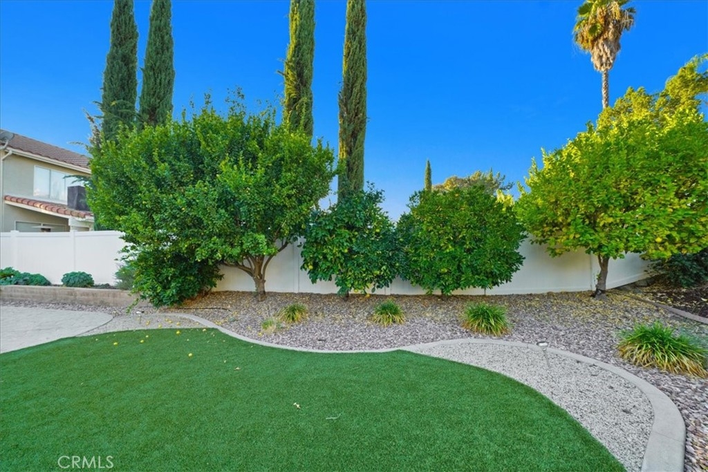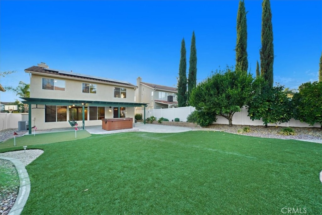 ***** $20,000 PRICE REDUCTION ***** This 4-Bedroom, 2.5 bath turn-key property is perfect for those seeking comfort, sustainability, and a wonderful outdoor space. It's definitely a rare opportunity worth considering with energy efficient features such as FULLY OWNED SOLAR PANELS, a whole-house fan, and low-maintenance landscaping, leading to lower utility costs. All bedrooms are upstairs and each features new carpet, neutral paint and a ceiling fan. Downstairs you’ll find a nice mixture of laminate wood and title flooring in just the right areas for that custom home feeling. The kitchen features a granite covered island and countertops with an open concept that flows seamlessly into the family room where you’ll find a cozy fireplace, built-in entertainment unit and ceiling fan. Outdoor amenities feature a stamped concrete patio, with partial covering that also has a ceiling fan, free-standing spa, fruit trees yielding oranges, lemons, limes, palmettos, and pomegranates, a swing that accommodates up to 3 people, and miniature golf green with artificial turf. Lastly, this great location provides convenient access to shopping, restaurants, and the I-15 and I-215 freeways. Now’s your chance to own this great home with no HOA.