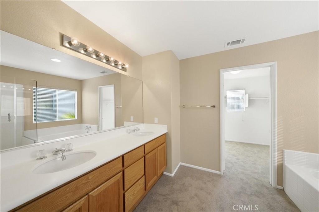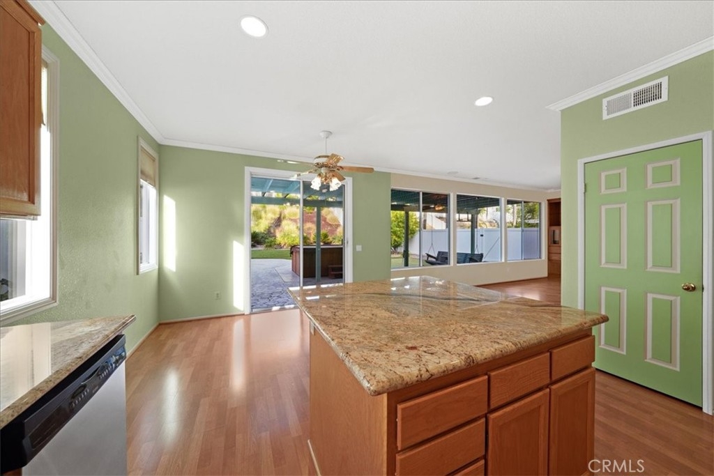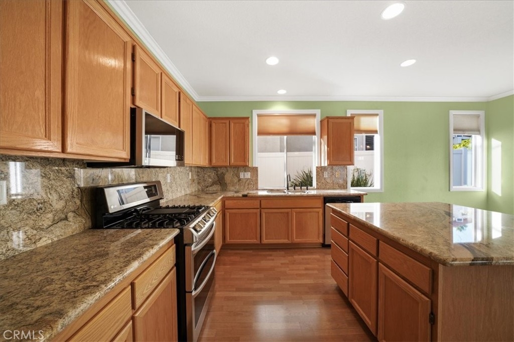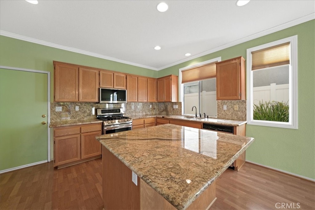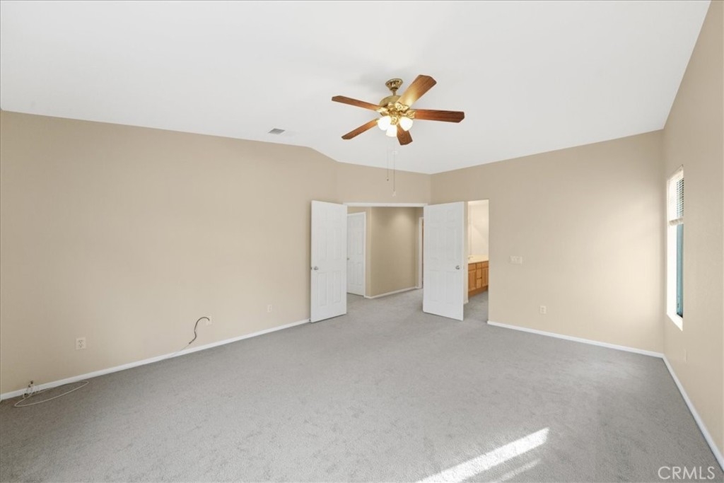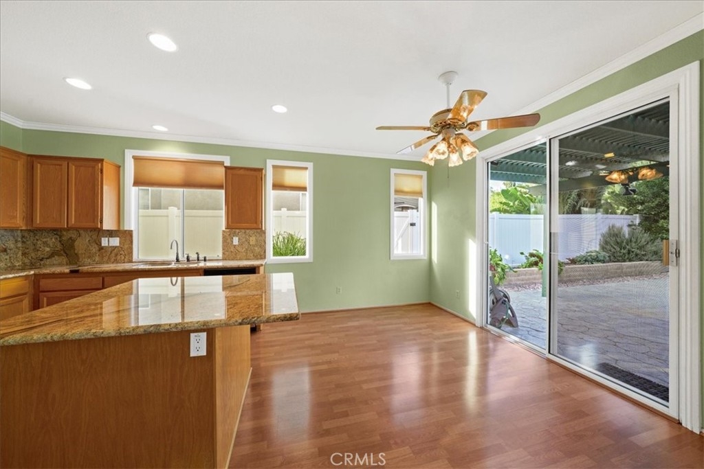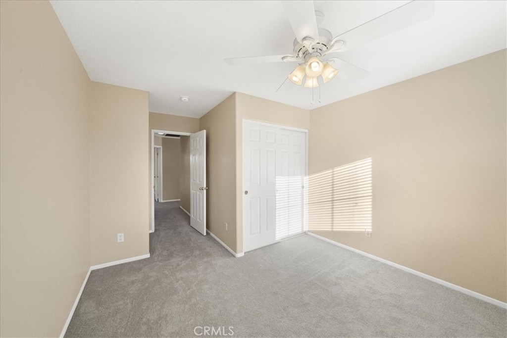 ***** $20,000 PRICE REDUCTION ***** This 4-Bedroom, 2.5 bath turn-key property is perfect for those seeking comfort, sustainability, and a wonderful outdoor space. It's definitely a rare opportunity worth considering with energy efficient features such as FULLY OWNED SOLAR PANELS, a whole-house fan, and low-maintenance landscaping, leading to lower utility costs. All bedrooms are upstairs and each features new carpet, neutral paint and a ceiling fan. Downstairs you’ll find a nice mixture of laminate wood and title flooring in just the right areas for that custom home feeling. The kitchen features a granite covered island and countertops with an open concept that flows seamlessly into the family room where you’ll find a cozy fireplace, built-in entertainment unit and ceiling fan. Outdoor amenities feature a stamped concrete patio, with partial covering that also has a ceiling fan, free-standing spa, fruit trees yielding oranges, lemons, limes, palmettos, and pomegranates, a swing that accommodates up to 3 people, and miniature golf green with artificial turf. Lastly, this great location provides convenient access to shopping, restaurants, and the I-15 and I-215 freeways. Now’s your chance to own this great home with no HOA.