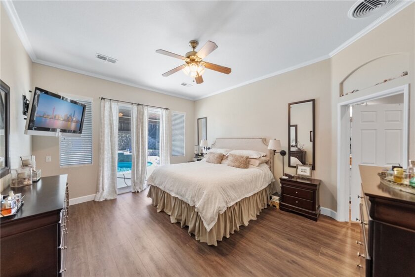 JUST LISTED! Welcome to your single-story pool home in the heart of Murrieta’s highly desirable Copper Canyon community! This beautifully maintained, move-in ready home offers a spacious open-concept layout with guest bedrooms on one side and a private primary suite on the other. Vinyl luxury plank flooring throughout, neutral paint. The upgraded kitchen features granite countertops, refreshed cabinetry, and a large island that opens to the family room filled with natural light—perfect for gatherings and everyday living. Step outside to your private backyard retreat complete with a sparkling pool, retractable patio cover for sun or shade, turf and concrete hardscape for low maintenance, and a built-in BBQ ideal for entertaining. The terraced slope provides extra privacy. The primary suite includes a large walk-in closet with custom built-ins and sliding door access to the backyard for morning coffee by the pool or a relaxing evening dip. Additional highlights:4 bedrooms, 2 bathrooms, a 3-car garage with epoxy floors and extra storage, Whole-house fan, Dog Run, Leased solar system (fully paid off and maintained by Sunrun) Separate solar for pool heating! Located within walking distance of Cole Canyon Elementary and close to parks, shopping, and restaurants! This home offers the perfect blend of comfort, privacy, and the Copper Canyon lifestyle. Did I mention NO HOA?? Schedule your private tour today!! Just in time for the Holidays!