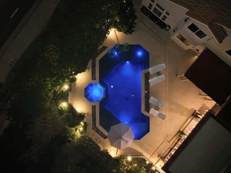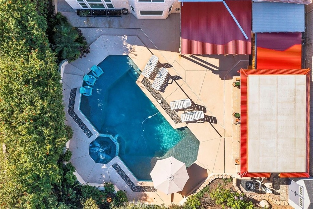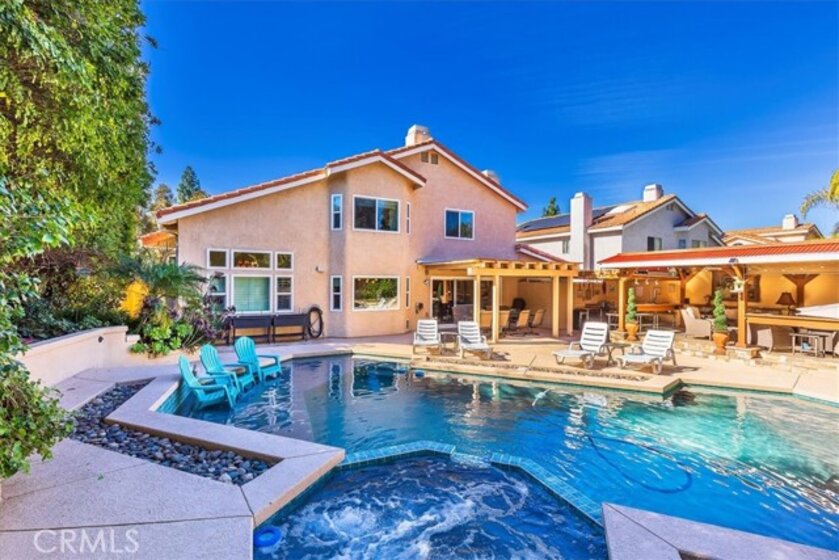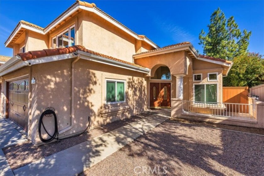 2 Homes in 1! This is more than a home—it’s a lifestyle. Don’t miss this meticulously maintained Mediterranean-inspired estate, where no detail has been overlooked, and every space feels like a year-round vacation retreat. Step into your private outdoor oasis, featuring a resort-style pool with two Baja shelves for lounging, a spa, and expansive outdoor living, kitchen, and dining areas. Surrounded by mature trees and lush tropical landscaping, the backyard offers complete privacy and an exceptional setting for entertaining. A grand double-door entry welcomes you into soaring two-story ceilings with skylights, creating a dramatic first impression. The Tuscan-inspired gourmet kitchen is a showpiece, boasting high-end appliances, hand-painted rustic tile, and upscale herringbone-patterned tile flooring that elevates the space. The downstairs bedroom has been transformed into a European-style tasting room with a full bath designed to complement its distinctive charm. Upstairs, you’ll find three spacious bedrooms, including a luxurious primary suite featuring a stunning dual-sided fireplace, a spa-like ensuite, and a soaking tub—your own private retreat. ****The guest home offers exceptional flexibility with its own courtyard, full bath with walk-in shower, laundry, living and sleeping areas, and a private back patio—ideal for guests, multigenerational living, or rental potential. Additional highlights include ample RV parking, no HOA, and numerous recent upgrades such as all new windows and sliders, whole house fan, garage doors, hot water heater, and a furnace. The pool has been recently resurfaced and updated equipment, and updated exterior lighting with color displays completes this extraordinary property, making it perfect for both everyday living and unforgettable entertaining.