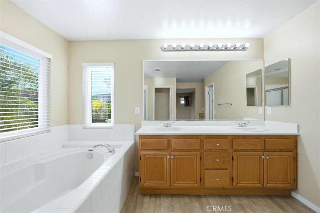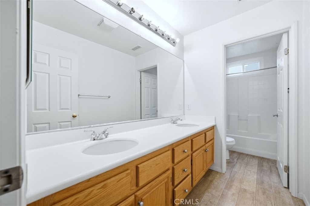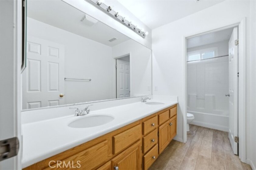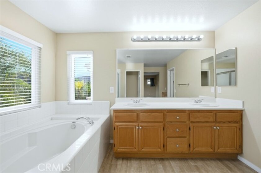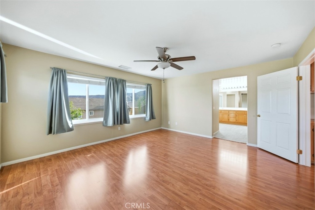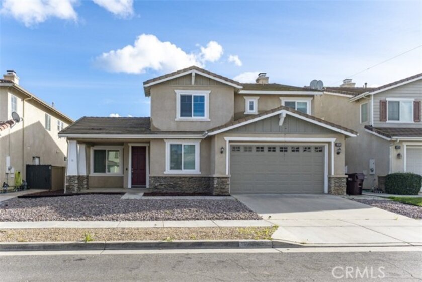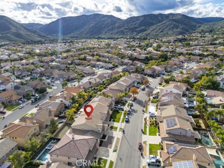 Most Sought-After Copper Canyon Home! This stunning 3,073 sq ft residence offers 5 bedrooms and 3 bathrooms, including a full bedroom and bath on the main level, ideal for guests or multi-generational living. Designed with an open and spacious floor plan, the home features laminated wood flooring throughout and oversized windows that flood the interior with natural light. The recently remodeled gourmet kitchen boasts marble-look granite countertops, a large center island, stainless steel appliances, a built-in oven, and stainless steel farmhouse sink, making it perfect for both everyday living and entertaining. The front and backyard are low-maintenance, thoughtfully landscaped with river rock to support water-efficient, desert-friendly living. The clean, minimalist design allows for easy customization with greenery while keeping water usage low. Upstairs, you’ll find a tech niche ideal for homework, studying, or a home office, along with a spacious primary suite featuring a separate shower and tub and a large walk-in closet. Three generously sized additional bedrooms upstairs further complement the home’s expansive layout. The laundry room is conveniently located downstairs, and the property includes a rare 3-car tandem garage with ample storage space. Located within walking distance to the highly regarded Cole Canyon Elementary School, and just minutes from shopping, dining, and freeway access, this home offers outstanding convenience. No HOA and a low tax rate add even more value. Priced below market, this exceptional home is ready to be the perfect fit for its next family.
