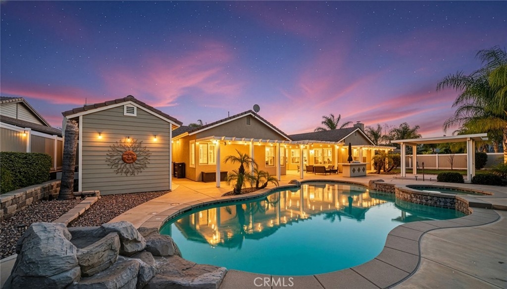 SINGLE STORY | TURN KEY READY | FULLY OWNED SOLAR | POOL HOME | DUAL RV PARKING | NO HOA | IN LAW SUITE | WEST MURRIETA. What more could you ask for? Set in the heart of the highly desired West Murrieta Country Gates community, this massive single-story pool home truly checks every box. No HOA, incredible curb appeal, and a layout designed for comfort, privacy, and effortless entertaining. Step inside to soaring ceilings and an abundance of natural light, creating a bright, open feel throughout the home. A standout feature is the in-law suite, ideal for multi-generational living and complete with its own private bathroom. Outside is where this home truly shines. Enjoy a resort-style pool and spa, an entertainer’s backyard with a built-in BBQ setup, and a large Alumawood patio cover perfect for year-round gatherings. The property offers exceptional privacy along with practical upgrades including a storage shed and RV cover. For toys, trailers, and extra parking, this home is a rare find with not one, but TWO RV parking areas, plus a spacious 3-car garage. Energy efficiency is dialed in with fully owned solar, a whole-house fan, and additional energy-smart features that help keep utility costs low while maintaining year-round comfort. Ideally located within the highly rated Murrieta school district, and just minutes from local parks, walking trails, neighborhood playgrounds, shopping, dining, and convenient access to the 15 and 215 freeways, this home offers the perfect balance of space, lifestyle, and location. This is the West Murrieta single-story you’ve been waiting for!