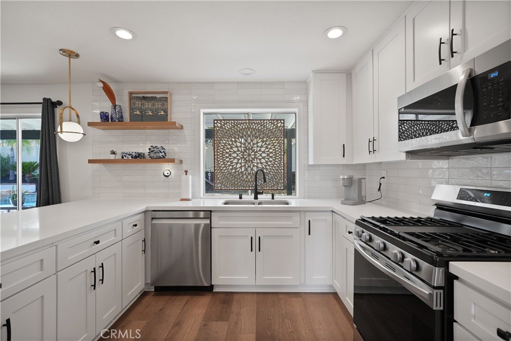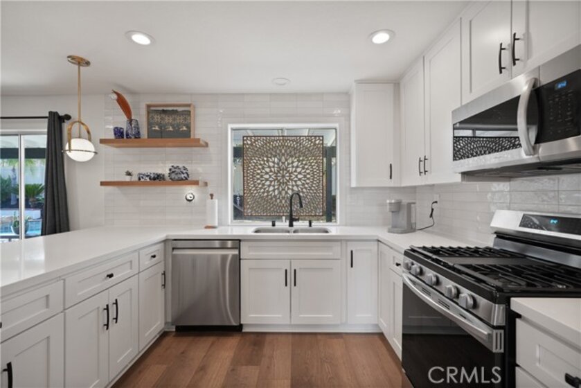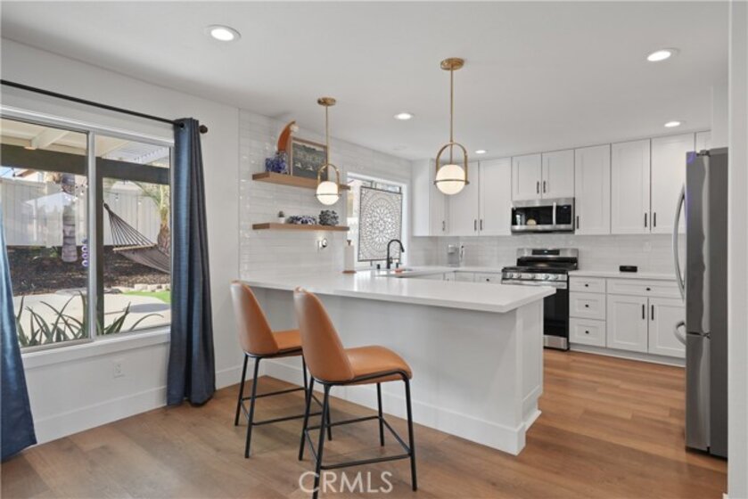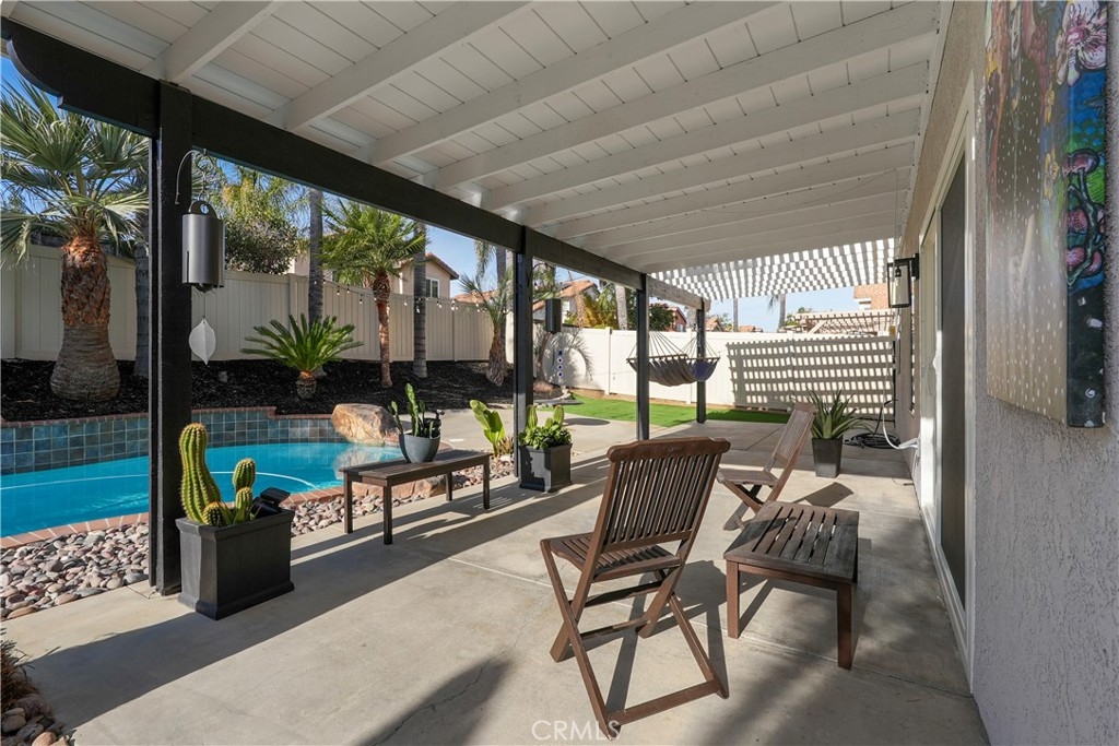 This stunning 4-bedroom, 3-bath home is the perfect blend of luxury and comfort, featuring soaring high ceilings that create a bright, open atmosphere. The remodeled kitchen, with its sleek countertops, top-of-the-line appliances, and modern finishes, flows effortlessly into the spacious living areas, making it ideal for both casual family meals and elegant entertaining. Large windows invite natural light to flood the space, enhancing its warmth and charm. Step outside to your private oasis, where a sparkling pool and inviting spa provide the perfect backdrop for year-round enjoyment. Nestled in a sought-after neighborhood, you’ll enjoy the convenience of being just moments away from shopping centers and dining options, all while being part of an excellent school district. Whether you're unwinding by the pool, cooking in the stunning kitchen, or hosting friends in your airy living room, this home is designed for both ease and elegance.
