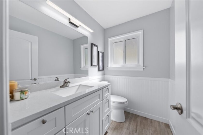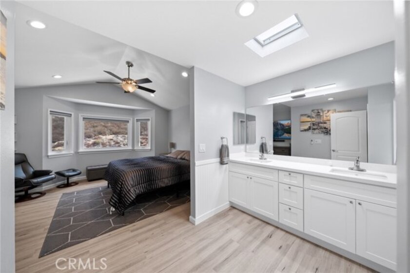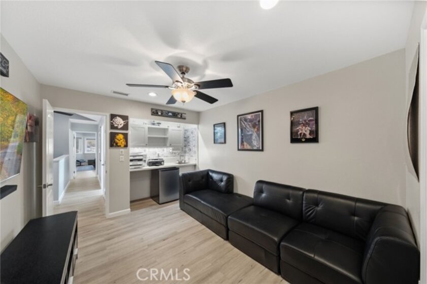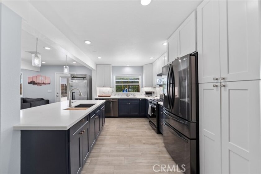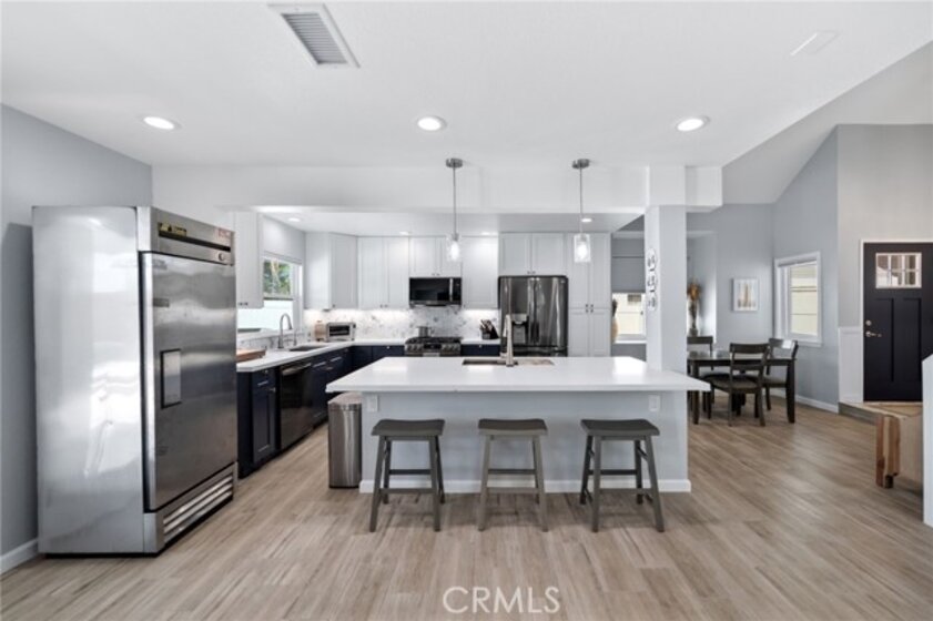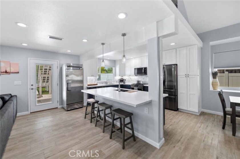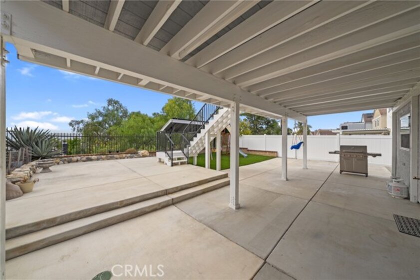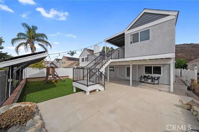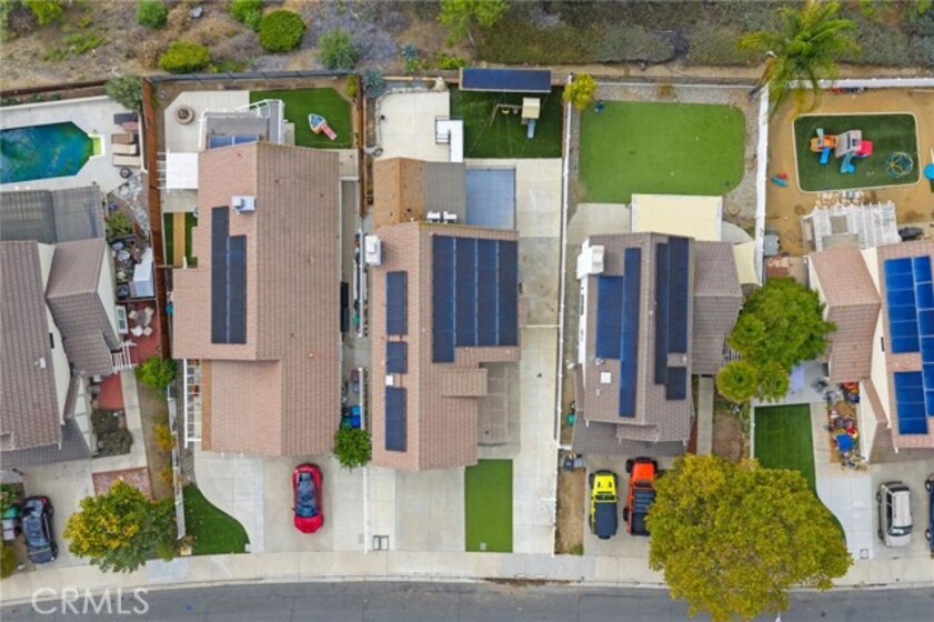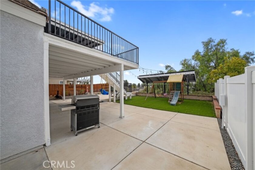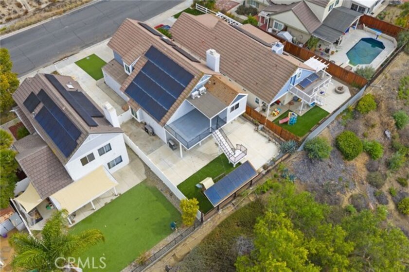 Completely turnkey and move-in ready home with FULLY PAID SOLAR and RV PARKING. This meticulously maintained 4-bedroom, 3-bath home offers 1646 square feet of comfortable living space. The home has been remodeled extensively with an upgraded AC unit, water softener, tankless water heater, upgraded electrical panel, stainless steel appliances and new flooring and paint throughout. The downstairs area boasts an open floorplan with a fully renovated kitchen with dual sinks for extra prep space, tile flooring and an expansive backyard for entertainment. Unobstructed views from the backyard with no neighbors behind or in front of home. Oversized deck with outside entry access to upstairs. All bedrooms are located on the upper level. The spacious primary suite includes a walk-in closet with an en-suite bathroom with dual vanities. In addition to the primary bedroom, the home also features a generational living suite with small kitchenette/ wet bar upstairs with its own entrance. Two additional good-sized bedrooms, one with hidden storage nook. Recessed lighting and laminate flooring throughout the upstairs. Low maintenance front and back yard with artificial grass. A rare, oversized lot with RV Parking and a two-car attached garage with epoxy flooring and workshop. No HOA and a low tax rate. Located in the highly rated Murrieta Valley Unified School District and just minutes to local dining, shopping, and outdoor recreation. This one won’t last long!