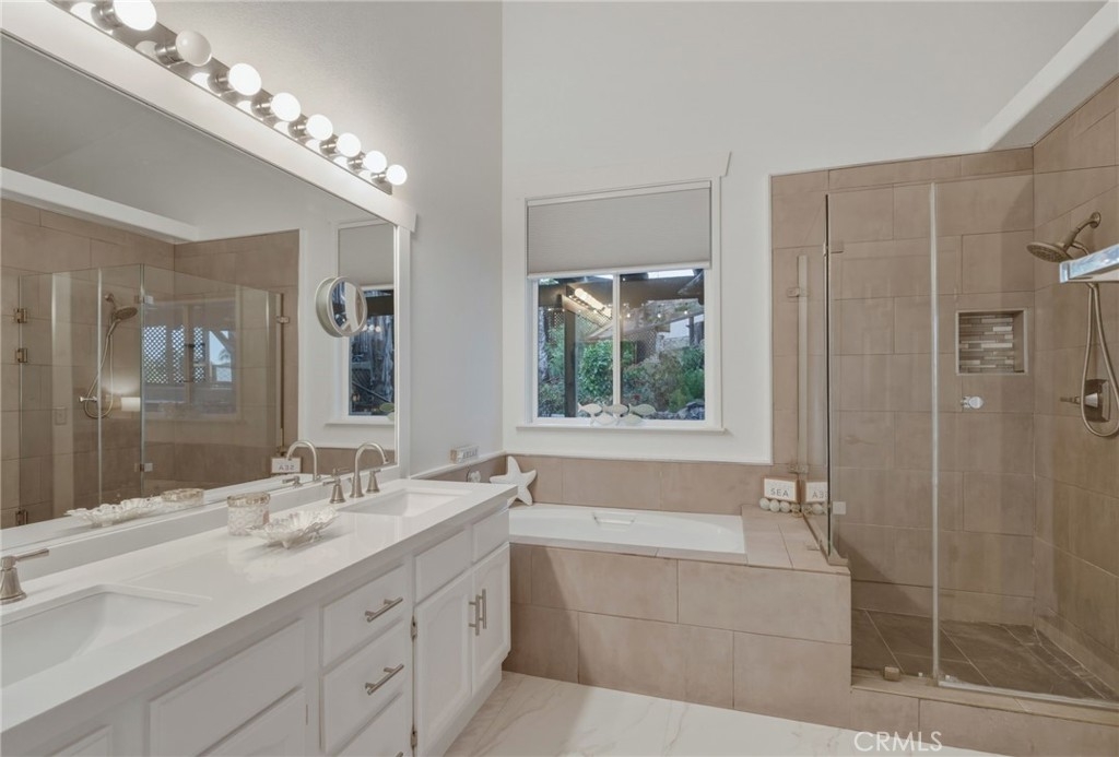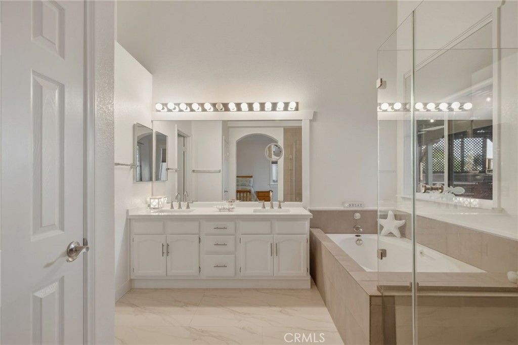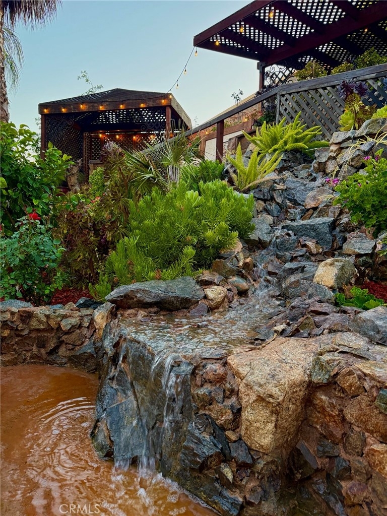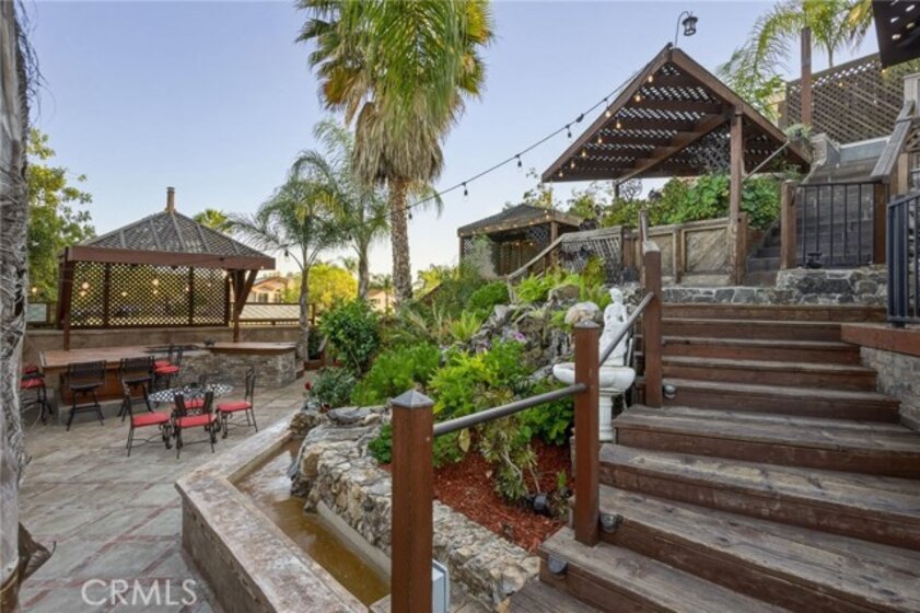 This beautifully upgraded single-story home offers 4 bedrooms and 2.5 bathrooms and has been meticulously renovated inside and out by the seller, a skilled contractor whose craftsmanship is reflected in every detail. The interior features fresh paint, elegant 4½-inch baseboards, decorative window trim, and thoughtfully refinished cabinetry throughout. The kitchen includes quartz countertops, refurbished cabinets with updated hardware, a larger island, and newer appliances, including a 2026 dishwasher and garbage disposal. All bathrooms have been fully remodeled with quartz counters, custom tile work, and a tempered glass shower enclosure in the primary suite. Flooring upgrades include three-quarter-inch engineered hardwood in the primary and guest bedrooms, new tile in the living room, hallway, bathrooms, and two additional bedrooms, and decorative tile accents at the fireplace and three niche displays. Each bedroom includes custom closet organizers, and the primary walk-in closet features new tile flooring. Additional improvements include an epoxy garage floor, updated lighting, upgraded switches and outlets, and a custom barn door at the laundry room. The exterior has been equally refined with smooth stucco, natural rock detailing on three feature walls and columns, elevated wood planters, and epoxy finishing on the driveway. The backyard is designed for entertaining with an oversized custom BBQ island, a natural rock waterfall installed in 2025 with switch-controlled operation, and a professionally crafted patio built with premium red oak, mahogany, walnut, and treated lumber. A dramatic rock slab anchors the upper landing, and mature landscaping creates a lush, inviting outdoor environment. Additional exterior enhancements include concrete and decorative brick accents, six new patio post bases, a newly painted patio cover in 2025, and updated electrical wiring for exterior lighting. Located in one of Murrieta’s most desirable neighborhoods near top schools, shopping, and everyday conveniences, this move-in-ready home showcases the pride and precision of true craftsmanship.