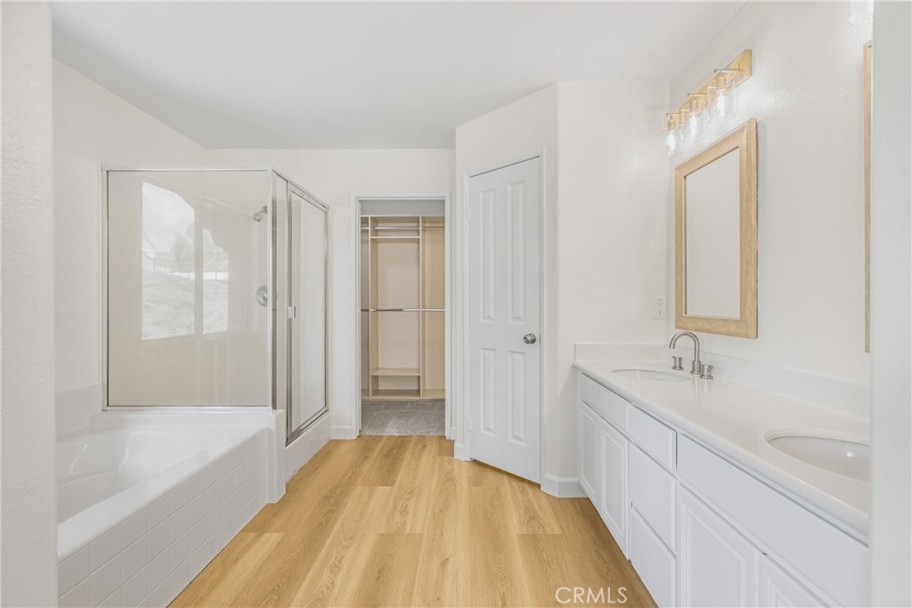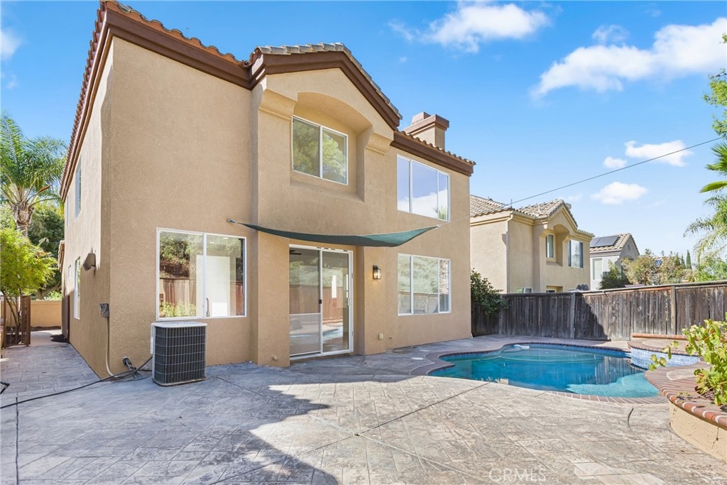 THIS WONDERFUL, MOVE-IN READY 4-BEDROOM, 3 FULL BATH POOL HOME HAS IT ALL! Offering 2,382 square feet of beautiful living area, plus a versatile third car tandem garage space that has been nicely finished and separated from the main garage providing additional living space that can be used as a bonus room, kids playroom, home office, gym or easily converted back to a third garage bay. The home is pristine, featuring all brand new interior and exterior paint, new vinyl plank flooring, new plush carpeting, new baseboards, and modern lighting fixtures. The remodeled kitchen is stunning with brand new appliances, custom solid wood cabinetry, and granite slab counters. It’s truly move-in ready, just waiting for you to enjoy! The charming gated front courtyard welcomes you into the home. On the lower level, you’ll find a convenient guest bedroom and full bathroom, large flex space bonus room, light and bright formal living room and formal dining both with soaring ceilings and expansive windows that fill the home with natural light. The remodeled kitchen opens seamlessly to an adjoining sitting area and family room with a cozy fireplace. Custom iron staircase banisters and a solid wood staircase lead upstairs. The primary bedroom is a sanctuary complete with a spacious bathroom, dual vanities, soaking tub, separate shower and generous walk-in closet. Two additional bedrooms share a full bath, and a conveniently located laundry room makes daily routines effortless. Step outside to the super private rear yard with the perfect size pool ideal for weekend fun and relaxing evening swims. Located on a quiet, friendly street in the heart of the Murrieta Valley, walking distance to top-rated Tovashal Elementary and Valley Vista Park. Easy access to the 15 and 215 freeways and minutes to Costco, Target and the Orchard and Vineyard Shopping centers. This home is ready to embrace its next chapter and welcomes its new owners with open arms.