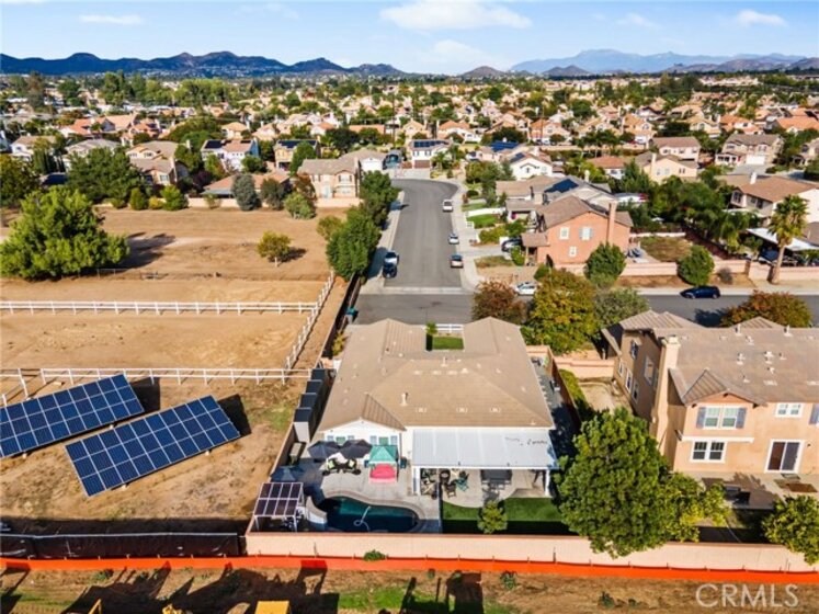 Welcome to this beautifully upgraded single-story home located in one of West Murrieta’s most desirable neighborhoods. This 4-bedroom, 2-bath property blends comfort, functionality, and modern upgrades throughout. The backyard was recently transformed with a brand-new Pebble Tec saltwater pool, artificial turf, and an oversized covered patio, perfect for relaxing or entertaining year-round. Inside, you’ll find an open and airy layout featuring a spacious family room with fireplace, dining area, and a chef’s kitchen complete with a large island, granite counters, stainless steel appliances, and custom cabinetry. Plantation shutters and recessed lighting add a touch of sophistication throughout the home. The primary suite offers a peaceful retreat with a soaking tub, separate shower, dual sinks, and a walk-in closet. Three additional bedrooms and a secondary bath with a walk-in shower provide plenty of space for family or guests. Additional highlights include Milgard dual-pane windows, water softener, rain gutters, ceiling fans, built-in garage cabinetry with workbench, epoxied garage floors with mini split system installed, great for a gym or hangout space, and an EV charger. The home is wheelchair accessible and features a widened driveway for added convenience. Enjoy the privacy and quiet of this well-kept community, just minutes from award-winning Murrieta schools, shopping, parks, and freeway access.