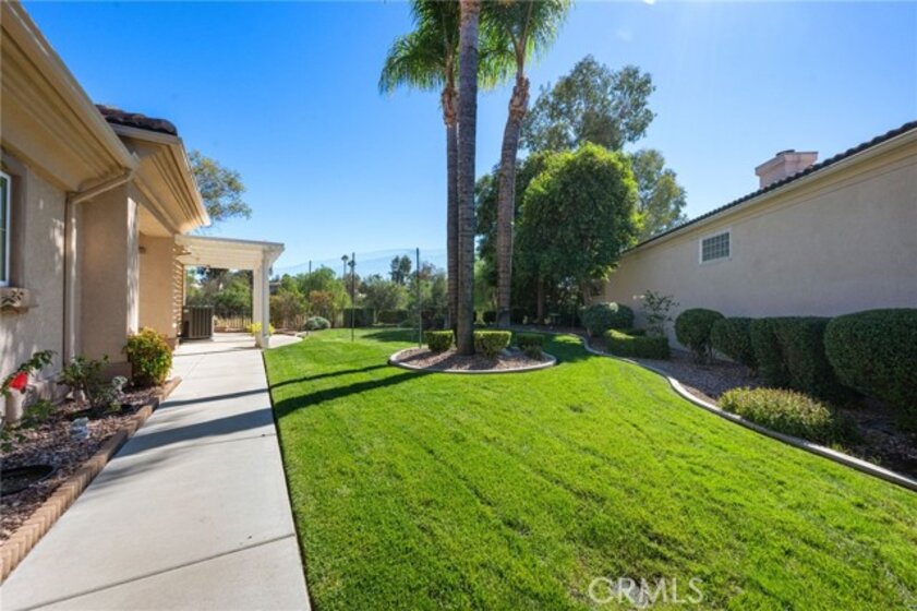 Welcome to the best location on the golf course at The Colony – Murrieta’s premier 55+ gated community! Enter through your private gate into a charming yard—unique to this home’s location—before stepping inside this beautifully maintained single-story residence. Offering the perfect blend active adult living, this home sits on a quiet cul-de-sac overlooking the 1st fairway. The spacious, light-filled floor plan features vaulted ceilings, custom tile flooring, plantation shutters, and a cozy fireplace. The well-appointed kitchen and dining area include rich wood cabinetry, Corian countertops, Bosch dishwasher, stainless steel LG oven and built-in microwave, a six-burner gas cooktop, large pantry, and the stainless steel refrigerator is included. The primary suite features vaulted ceilings and opens directly to the covered wrap-around patio with golf course views. The en-suite bathroom offers dual sinks, a soaking tub, walk-in shower, separate vanity, and a large walk-in closet. Two additional bedrooms are generously sized with wood floors, and the second bathroom also includes a walk-in shower. The large laundry room provides abundant cabinetry, a deep sink, and comes complete with washer and dryer. You'll also enjoy direct access to the two-car garage with built-in cabinets. Residents of The Colony enjoy resort-style amenities including an 18-hole public golf course (fee), clubhouse, pool and spa, fitness center, tennis and pickleball courts, plus a vibrant calendar of social clubs and community events. The 24/7 guard-gated entry ensures peace of mind in a beautifully maintained setting. Ideally located near Temecula Valley’s renowned wineries, Old Town Temecula, shopping, dining, and top-rated medical facilities. Nearby hiking trails, scenic drives, and outdoor recreation make this the perfect place to enjoy the best of the active Southern California lifestyle.