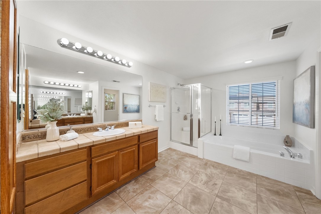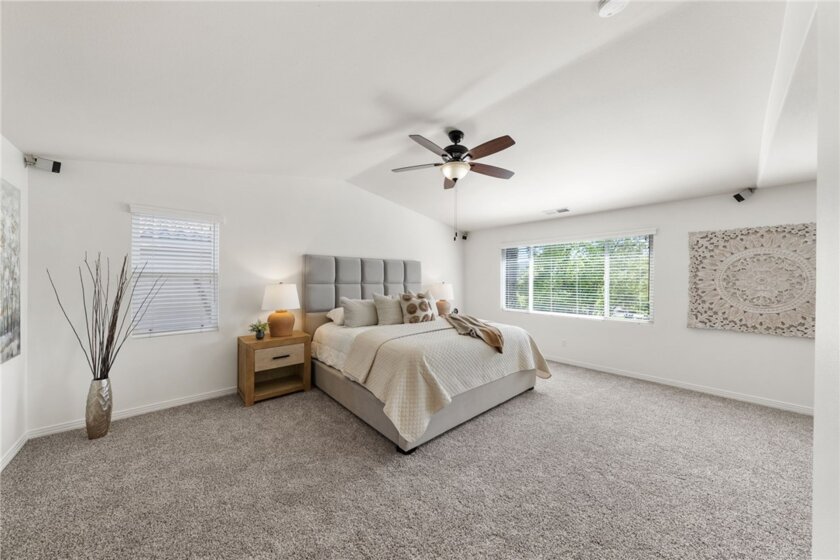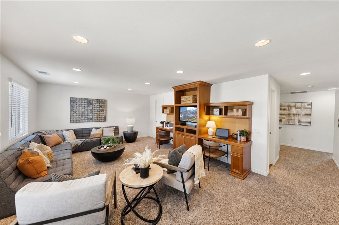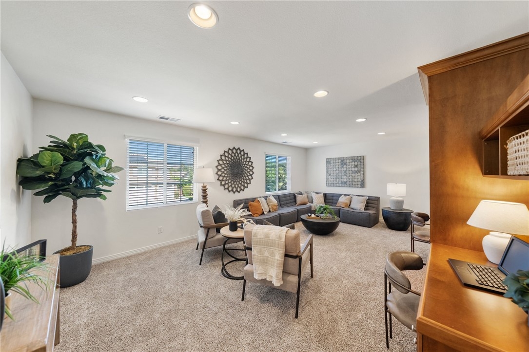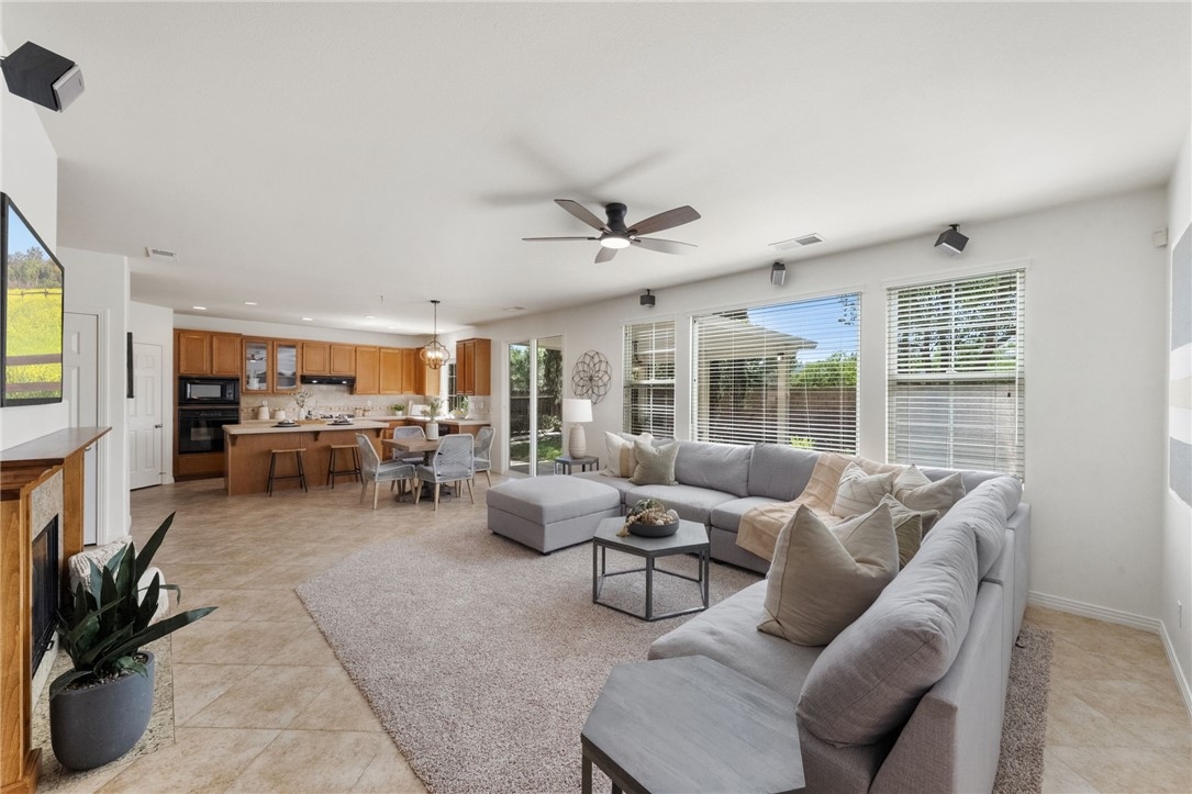 *GATED COMMUNITY in the HEART of MURRIETA* TURNKEY HOME * MAIN FLOOR BEDROOM Welcome to this beautifully updated home in the gated community of Big Tree, ideally located near Old Town Murrieta. With freshly painted exterior & charming curb appeal framed by mature cypress trees, this home invites you in from the moment you arrive. The quaint front porch is the perfect place to relax, watch the kids play on the expansive grassy area or enjoy the peaceful neighborhood setting. Step inside to a spacious, light filled layout featuring tile flooring & a freshly painted neutral interior throughout including walls, doors & baseboards. The living & dining rooms offer a welcoming space to gather & entertain, with direct access to the backyard for seamless indoor outdoor living. The kitchen is designed for everyday living & hosting alike, featuring maple cabinetry, a large eat in island, walk in pantry & an open flow to the family room. Here you’ll find brand new carpet, a cozy fireplace, ceiling fan & custom built in, all complemented by large windows overlooking the backyard. A main floor bedroom with mirrored wardrobes is conveniently located next to a full bath with tub shower combo, ideal for guests or multi generational living. The laundry room offers added functionality with ample cabinetry & a sink. Upstairs, brand new carpet extends throughout the entire second level. At the top of the stairs, a spacious bonus room(potential bedroom #6) with built ins & walk in closet creates endless possibilities for a home office, game room, or multi-genertational living, and is located next to a full bath. Three additional secondary bedrooms all with mirrored wardrobes are generously sized, while down the hall the private primary suite offers a true retreat with ceiling fan & a separate sitting area perfect for an office or quiet escape. The primary bath features dual sinks, a separate vanity, a soaking tub & walk in closets. The 3 car garage is a standout feature offering upgraded cabinets & a workbench, providing excellent storage & functionality. Step outside to a private backyard complete with a patio, alumawood patio cover, grassy area for kids & pets to play, and mature landscaping that creates a peaceful outdoor setting. Located in a quiet gated community just minutes from Old Town Murrieta, shopping, dining, easy 15 freeway access & within the highly sought after Murrieta school district.