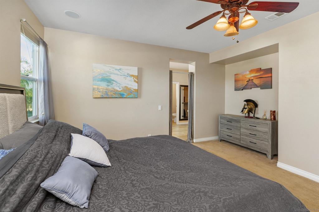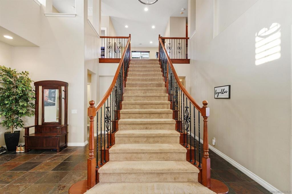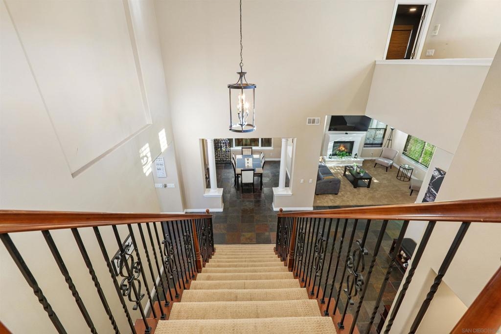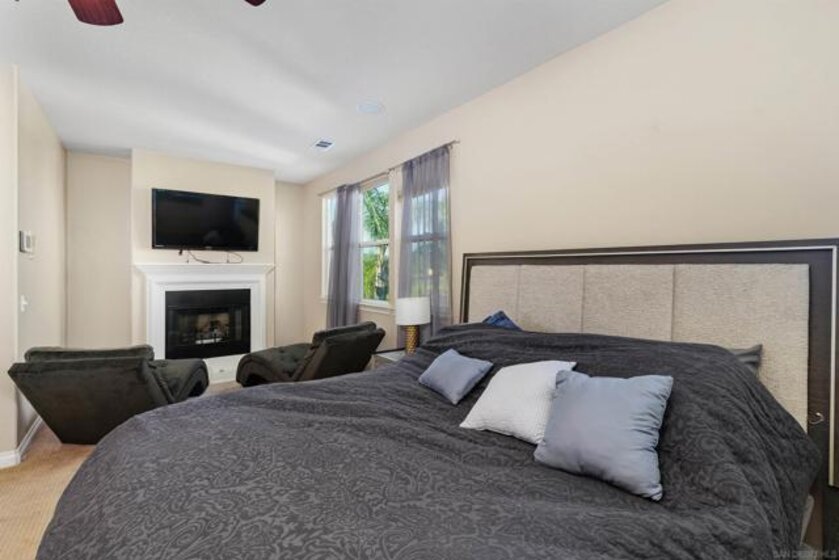 West Murrieta Pulte home is approximately 4,042 square feet and features seven bedrooms and four and a half bathrooms. Two of the seven bedrooms with one full and one-half bath are located on the ground floor, offering versatility and convenience. The upstairs primary bedroom is a spacious retreat with its own sitting area, fireplace, large walk in closet and en-suite bathroom with jetted tub, heated floors. Throughout the home, you'll find recessed lighting, ceiling fans that contribute to the overall refined aesthetic. The interior boasts a spacious dining area with an elegant chandelier, offering a refined setting for dining and entertaining. One upstairs bedroom is a dedicated home theatre. The home's expansive living area is filled with abundant natural light, creating a warm and welcoming ambiance. The cozy fireplaces in living and family rooms adds a touch of coziness and comfort to the spaces. The kitchen is well-equipped upgraded appliances, ample cabinetry and sleek granite countertops, providing plenty of storage and preparation space. The backyard is a true oasis, boasting a spacious layout with an inviting patio and a sparkling pool, perfect for outdoor living and entertainment. Walking distance to top-rated Thompson Middle School and Murrieta Valley High School, with nearby hiking/biking trails, Santa Rosa Plateau, convenient freeway access, local shopping, dining, and the charm of Old Town Murrieta.