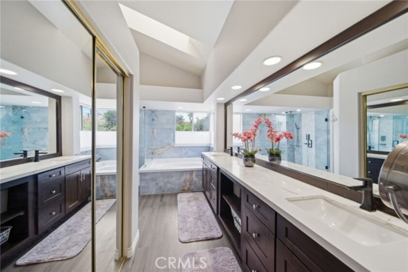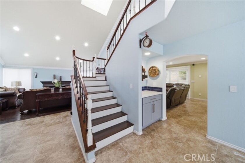 *If I were to build a 5-bedroom 3 bath home from the ground up, this is everything I would include, and it’s already done here for you* Welcome to this beautifully upgraded 2882 Sq Ft Murrieta home where thoughtful design, functionality, and comfort come together. From the moment you arrive, you’re greeted with strong curb appeal, a tile roof, expanded driveway with potential RV parking, and a private courtyard entry with a charming fountain. Inside, enjoy soaring ceilings with recessed lighting, skylight accents, and an open layout filled with natural light. The living and dining areas feature crown molding, a cozy fireplace, new vinyl windows, and upgraded window shades, creating a warm yet elevated feel. The remodeled kitchen is the heart of the home, offering spacious custom cabinetry, soft-close drawers, gorgeous quartz countertops, a dedicated coffee station, recessed lighting, stainless steel appliances, double ovens, reverse osmosis filtration, and a large center island perfect for entertaining. Crown molding flows throughout the home, adding a refined finish. The family room with fireplace opens seamlessly to the backyard, ideal for everyday living. Upstairs, the spacious primary suite offers a relaxing retreat with additional built-in closets. The fully remodeled bathroom features stunning tile work, quartz finishes, a rain shower head, dual vanities, and updated fixtures. A catwalk hallway, leads to three additional spacious bedrooms and a full bath with dual sinks and a tub/shower combination. All rooms are equipped with Cat 5 wiring. Major upgrades include 24 solar panels with battery backup, 220V for two EV hookups, whole house water softener, recessed lighting throughout, new vinyl windows and sliding doors, wood shutters, whole house fan, and two quiet LiftMaster garage door openers. Step outside to a private backyard featuring a covered patio with fans, custom covered BBQ area, and a 6-person covered jacuzzi that will remain. Several mature fruit trees add charm and function to the space. Additional highlights include a 3-car garage, NO HOA, and true pride of ownership. Conveniently located within walking distance to schools, shopping, and a park across the street where you can enjoy outdoor activities and 4th of July fireworks. Just minutes from the freeway. Move-in ready and designed for modern living!!!
