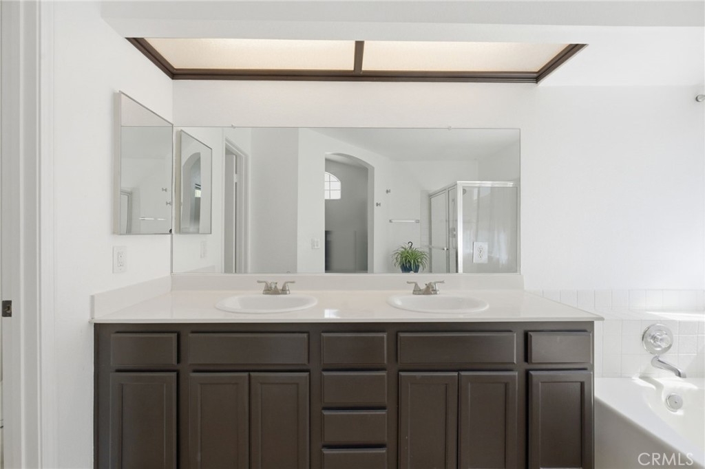your DREAM HOME awaits.. upgraded POOL home.. 4 bedroom / 2.5 bath / 2102 SF.. located on an oversize 6534 SF lot..this west facing home will delight u with sunlight and it's open floorplan.. gracious entry leads into an oversized living room and dinning room.. COOKS kitchen w/extra cabinet space, stainless steel appliances and gas stove.. spacious family room w/dual sided fireplace.. ceiling fans and designer lighting throughout.. upstairs primary bedroom boasts a large bathroom, dual sinks, tub and walk-in closet.. ALL BEDROOMS UP.. now the best for last.. an incredible entertainers backyard.. sparkling heated pool and spa.. yard to run around in.. recently landscaped.. house is conveniently located to all.. minutes to 215.. CAR CHARGER and POWERSHARE home backup bundle come with.. LOW TAXES.. no HOA.. MOVE IN READY..