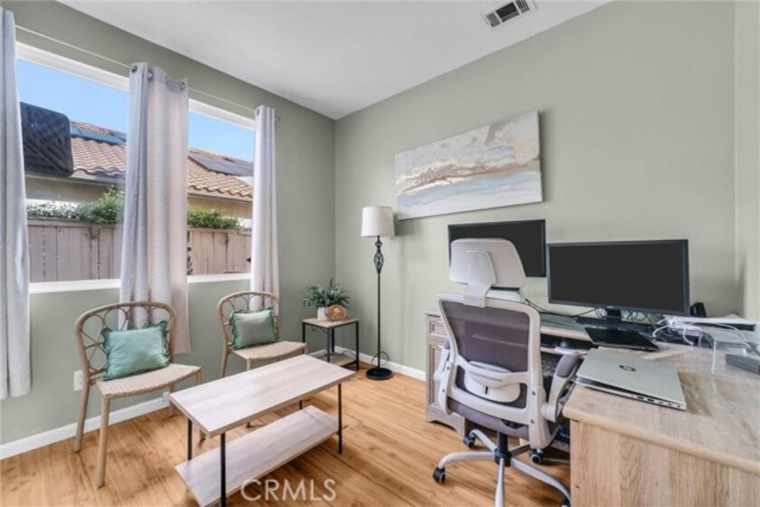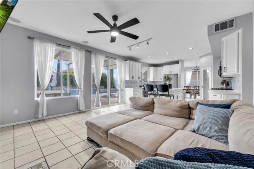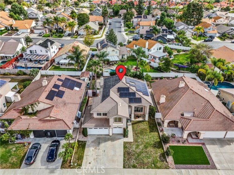 Welcome to this beautifully upgraded 5-bedroom, 3.5-bath home with paid solar, offering a rare combination of space, efficiency, and resort-style living in Murrieta. Step inside to soaring ceilings, abundant natural light, and a layout designed for both everyday living and effortless entertaining. The remodeled kitchen is a standout, featuring modern finishes, custom 40” cabinetry with exceptional storage, a large pantry, and a built-in wine fridge—opening seamlessly to the main living areas. Upstairs, the spacious primary suite offers his-and-hers walk-in closets with custom built-ins and a well-appointed ensuite bath. The additional bedrooms are generously sized and thoughtfully positioned, providing comfort and privacy throughout. A dedicated laundry room adds everyday convenience. Step outside to your private backyard retreat, complete with a sparkling pool, waterfall feature, and solar heating—plus electrical already in place for a future spa or jacuzzi. Additional highlights include an EV-ready garage, no HOA, and energy-efficient living with approximately $600/year electricity costs. Conveniently located near top-rated schools, shopping, dining, and major commuter routes. Turnkey, energy-efficient, and move-in ready.