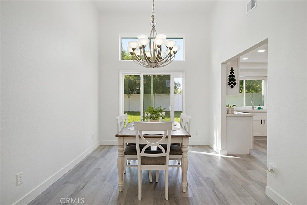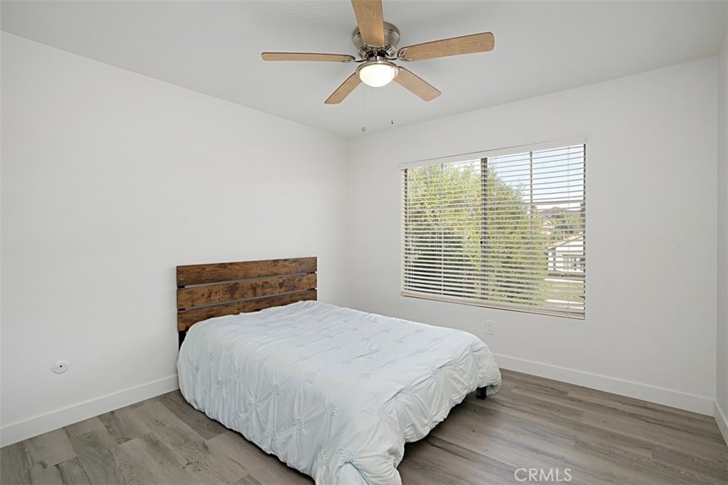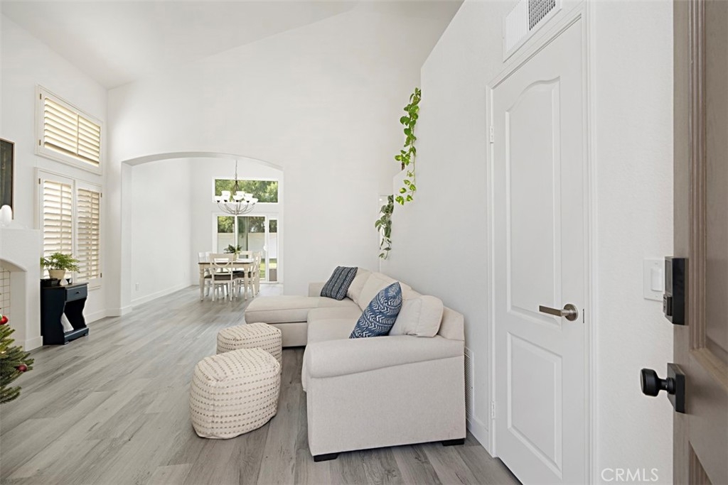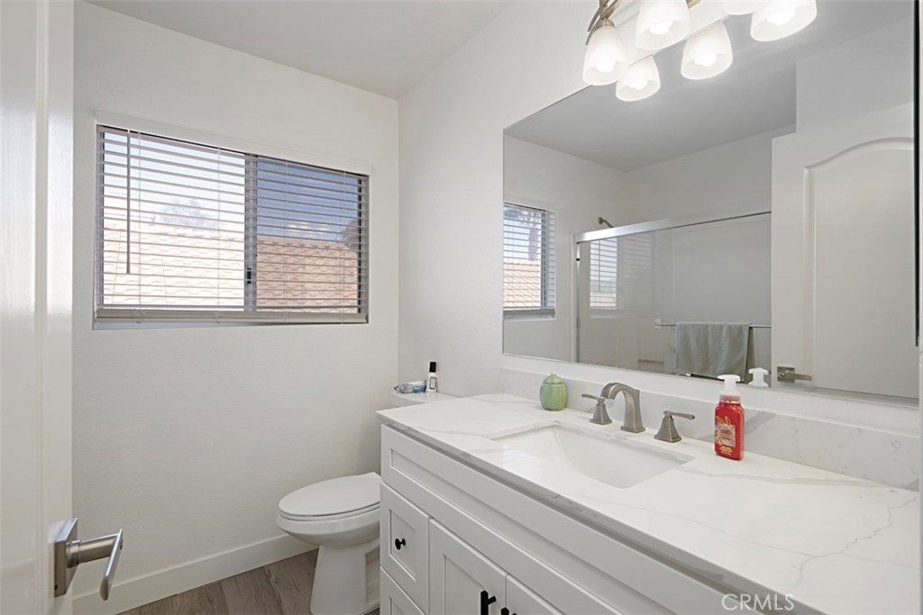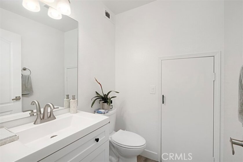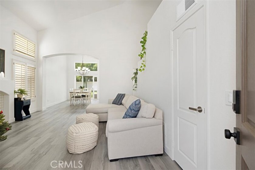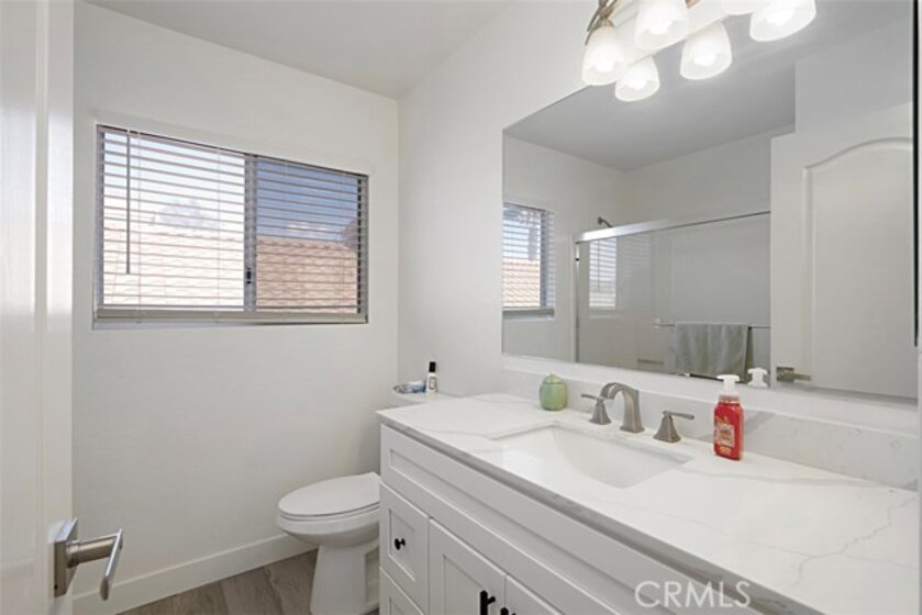 Beautifully updated and remodeled home with solar, in highly desirable central Murrieta! This home features 4 bedrooms and 2.5 baths. Boasting the feature of having the master suite on the first floor, lends its occupants both versatility and uniqueness. The master features its own slider and the master bath has been handsomely upgraded. The interior of this open concept floor plan is appointed with stylish wood-look plank laminate flooring, updated light fixtures, and Plantation shutters. The home has vaulted ceilings for added interest which gives an extra spacial feel and plenty of windows allow in an abundance of natural light. There is a half bath on the first floor for guests. The kitchen features Shaker-style white cabinets with satin nickel finish pulls, quartz counter tops, and stainless steel appliances. A dining room area is part of the living room and has convenient access to the kitchen for serving. The upstairs has 3 bedrooms, one with its own balcony. There is a full bath, which has also been remodeled, that keeps the look consistent so it flows with the rest of the house. The backyard has a patio, new lawn area and 3 custom Eclipse retractable awnings. Convenient location, award-winning schools, low tax assessment area and no HOA makes the overall appeal of this home even more apparent that it could be the one!