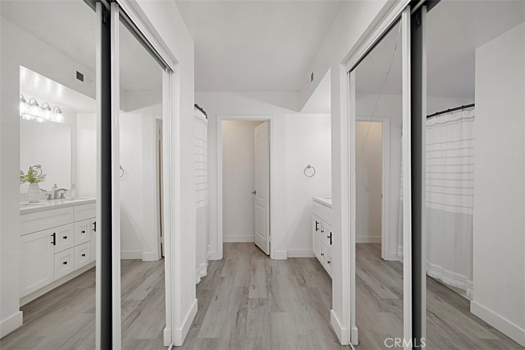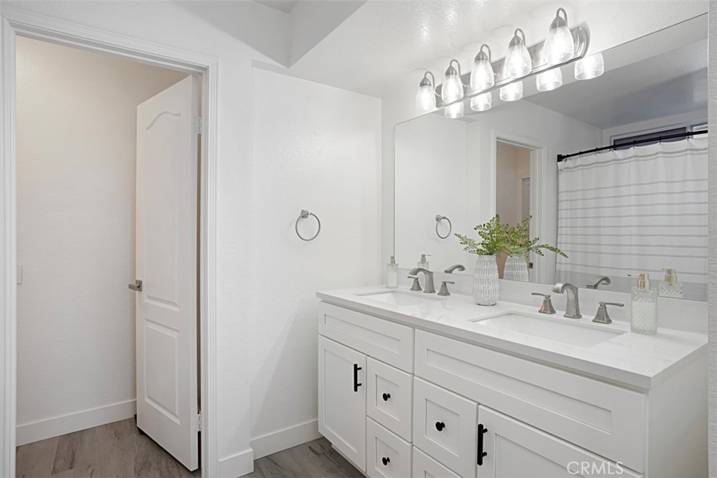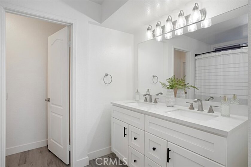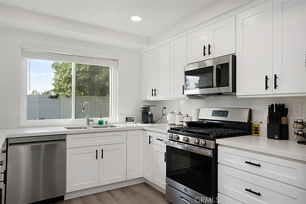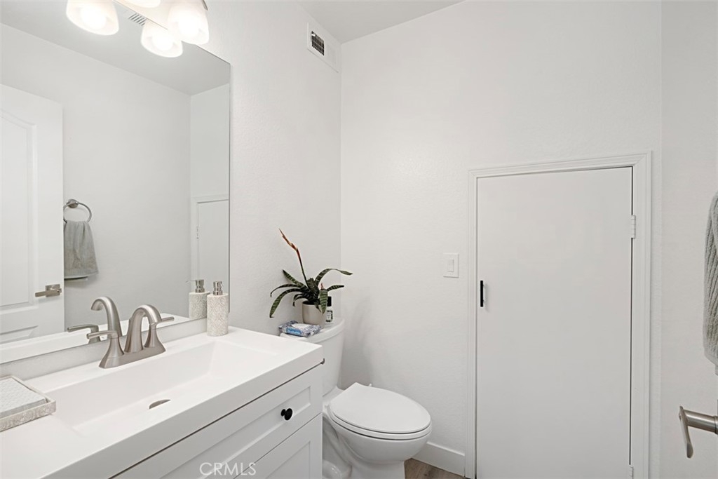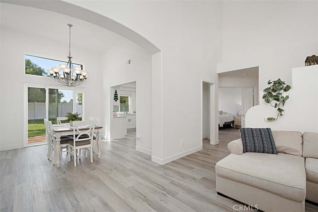 Beautifully updated and remodeled home with solar, in highly desirable central Murrieta! This home features 4 bedrooms and 2.5 baths. Boasting the feature of having the master suite on the first floor, lends its occupants both versatility and uniqueness. The master features its own slider and the master bath has been handsomely upgraded. The interior of this open concept floor plan is appointed with stylish wood-look plank laminate flooring, updated light fixtures, and Plantation shutters. The home has vaulted ceilings for added interest which gives an extra spacial feel and plenty of windows allow in an abundance of natural light. There is a half bath on the first floor for guests. The kitchen features Shaker-style white cabinets with satin nickel finish pulls, quartz counter tops, and stainless steel appliances. A dining room area is part of the living room and has convenient access to the kitchen for serving. The upstairs has 3 bedrooms, one with its own balcony. There is a full bath, which has also been remodeled, that keeps the look consistent so it flows with the rest of the house. The backyard has a patio, new lawn area and 3 custom Eclipse retractable awnings. Convenient location, award-winning schools, low tax assessment area and no HOA makes the overall appeal of this home even more apparent that it could be the one!