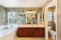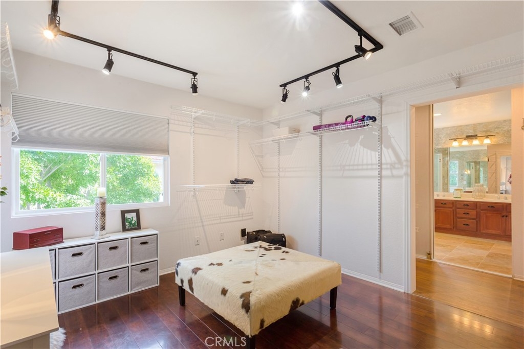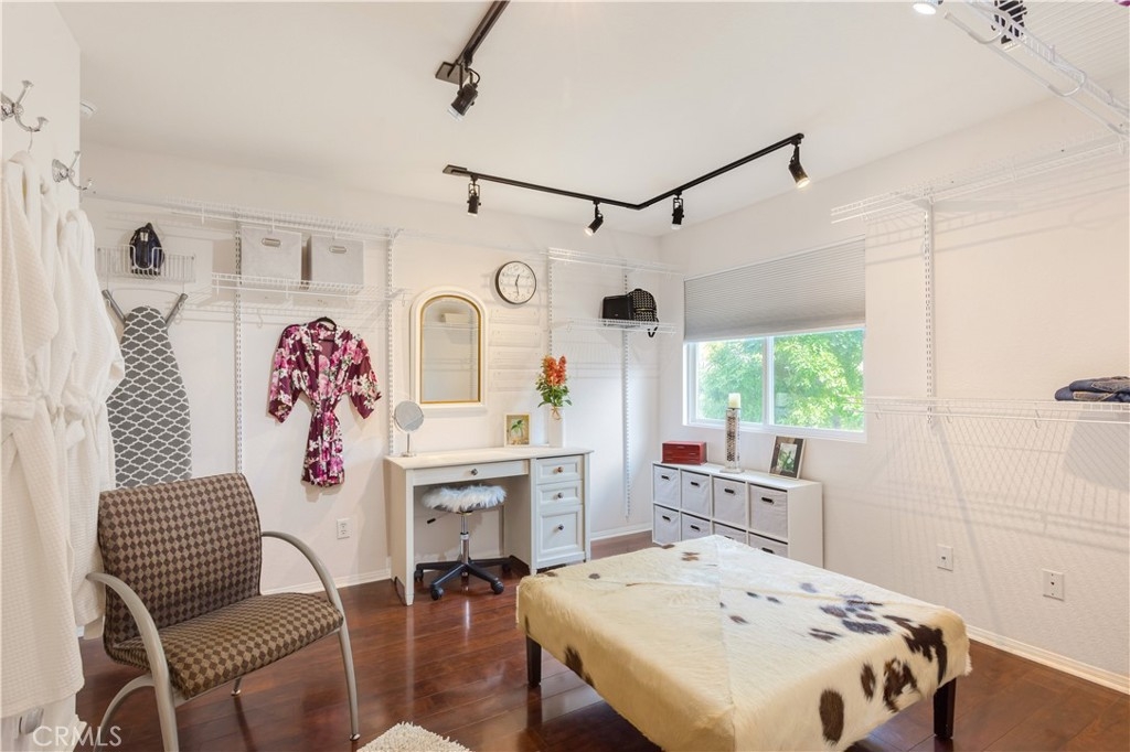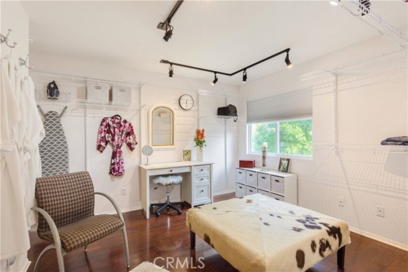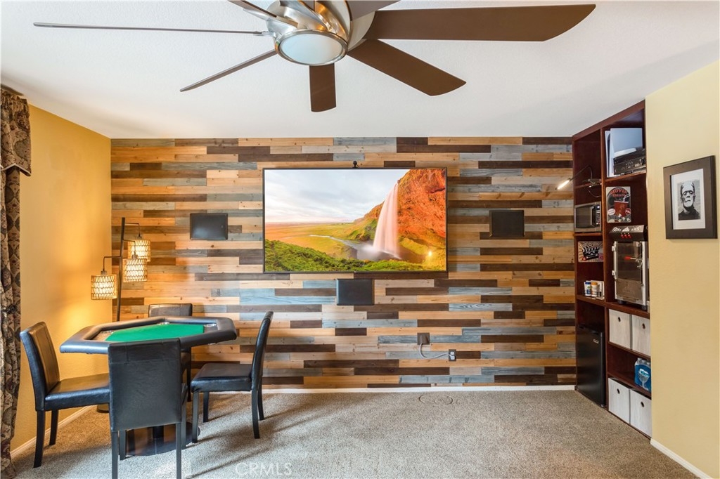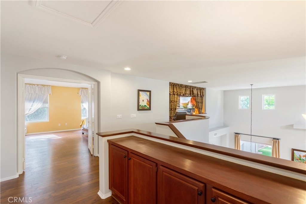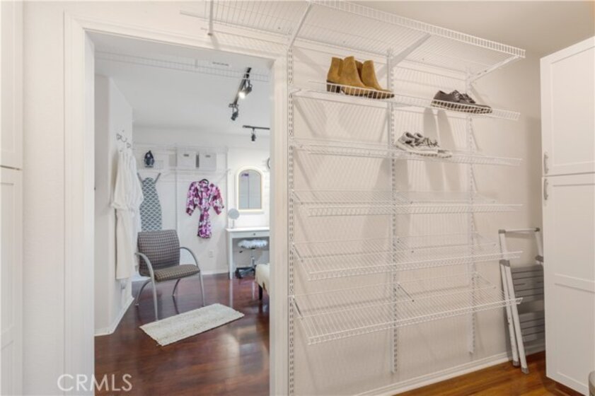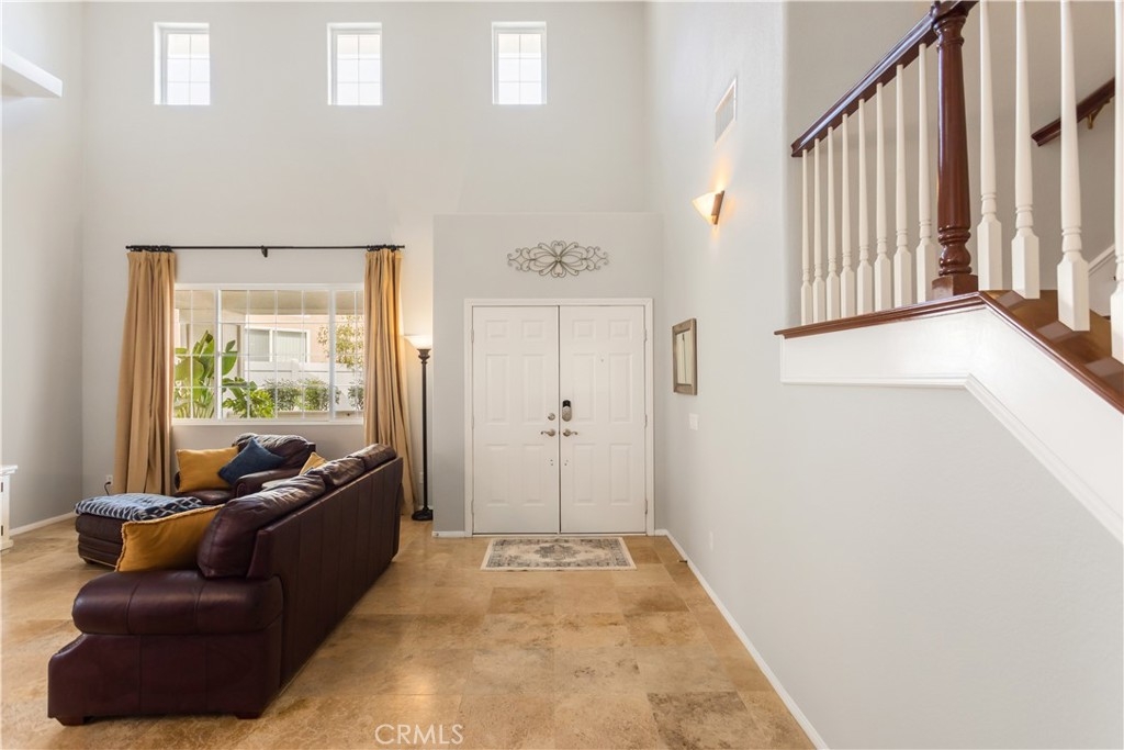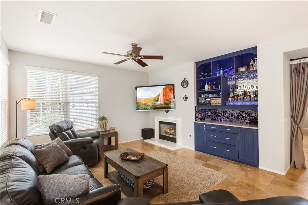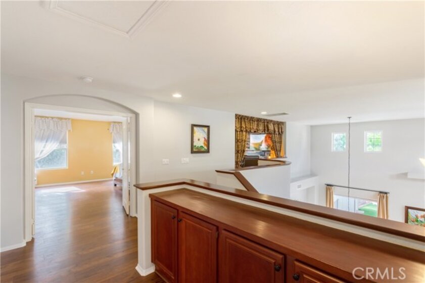 Welcome to a stunning and thoughtfully upgraded home featuring two primary suites, elegant finishes and a thoughtfully landscaped, low maintenance backyard oasis! A Monserrat Classic home in a well-established neighborhood. There is very little turnover in this tract because of the low taxes, great location and the quality of the homes. Pride of ownership is evident when you drive through the neighborhood. When you open the front door and walk into this beautiful home you are met with a vaulted ceiling and gorgeous Travertine floors. Family room downstairs has a fireplace and built-in bar area. The chef's kitchen has double convection ovens, newer appliances, hanging pot rack & recessed lighting. French doors lead outside to the backyard and covered patio. Downstairs primary bedroom also has French doors leading to the backyard. The ensuite has a large walk-in closet, separate tub and shower and dual sinks. Separate laundry room downstairs offers a lot of storage and a sink. Upstairs there is another spacious primary bedroom with a barn door separating the bedroom from the ensuite. The ensuite has a soaking jet tub, separate shower, his and her sinks. The expansive walk-in dressing room/closet has a vanity and mirror. Two more bedrooms & full bath upstairs. The loft has been set up as a media room complete w/ black out curtains, rustic accent wall, surround sound speakers, and built-in area that has a microwave and mini refrigerator. This very private backyard backs up to a green belt/park area and is landscaped with slate and river rocks. No grass! There is a hot tub, 3 sheds including a SHE shed and a tool shed that are solar powered, outdoor speakers, and a covered patio. Fruit trees include an orange, lemon, lime, and grapefruit. There is also an irrigation drip system. A gate in the back fence leads to the green belt and walking trails. On one side of the house there is a dog run that has artificial turf, a built-in water dispenser and a shaded area. The flooring throughout this stunning home consists of Travertine and Pergo Max Premium flooring excluding one bedroom that has carpet. The three-car garage has epoxy floors, a built-in work bench, & of storage. Permanent holiday lights are installed and ready to use through an app on your phone. Ring cameras throughout the house. 24 solar panels are paid for with 12 more being leased. Has the potential to be a 5 bedroom home. An electrical outlet in the garage is suitable for EV charging.