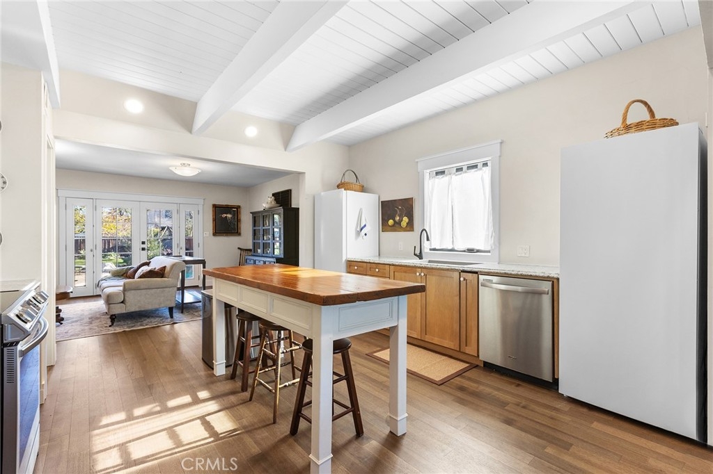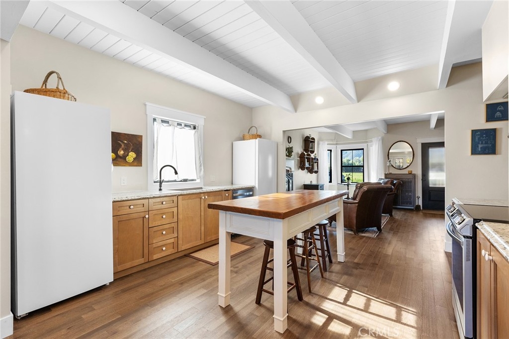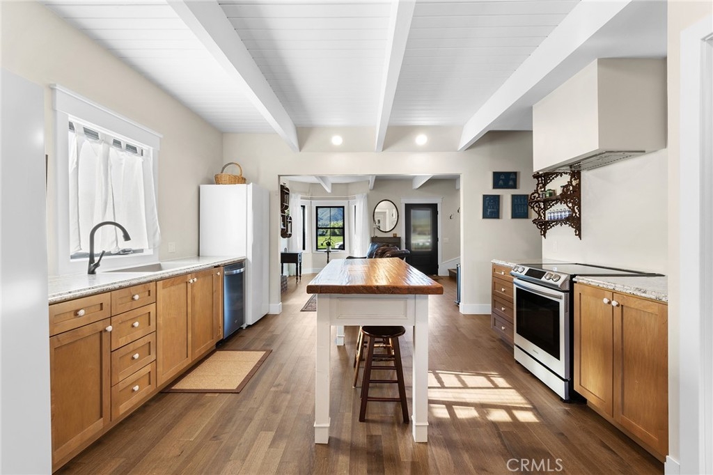 Beautiful remodeled Victorian -style home featuring 4 bedrooms,4 bathrooms, and 2304 sq of living space. A new front porch welcomes you into a charming living room with a fireplace and French-style mantel. Wood and tile flooring runs throughout the home. The remodeled kitchen includes new appliances, an induction cooktop w/gas hookup available, pantry and refrigerator and freezer that stay with the sale. Open family room that leads out to a cottage-style backyard with wildflowers, trees, pool, and large shed. Upstairs offers a redesigned layout with expanded bedrooms, new flooring, and added window for abundant natural light. Major upgrades include a new roof, new windows, new plumbing, new interior doors and trim, tankless water heater, heat pump HVAC, and brick chimney. This home is nestled in the historic area of Old Murrieta, surrounded by open pastures, distinctive customs home sites and preserved historic steel structures that reflect the area's rich heritage. Residents enjoy Murrieta Market Nights in the heart of downtown, held on the 1st and 3rd Thursdays of each month, offering a vibrant community gathering with local vendors, food and entertainment. Move-in-ready ...Nothing to do but enjoy!