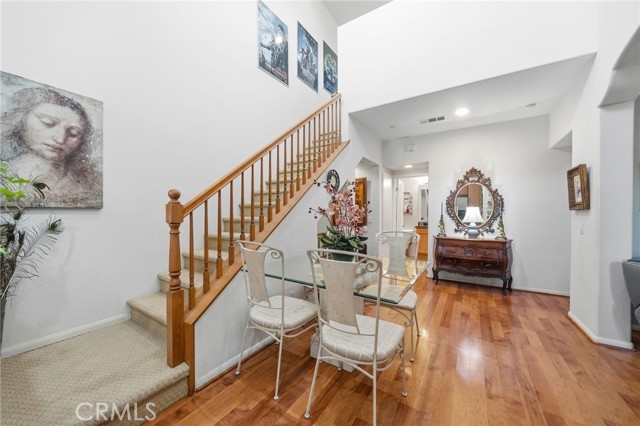 Well maintained 3 bed, 2 bath 1340 sq ft home in the gated Amberwalk community near Old Town Murrieta, just across the street from the Murrieta Civic Center. Conveniently located close to all services, this peaceful community offers a serene and peaceful setting. With direct access thru the 2 car garage, this warm and inviting home features a rich laminate wood flooring thru most of the living spaces w carpet in the bedrooms and vinyl in the bathrooms. The main living space includes a well appointed kitchen w stainless steel appliances, a dining area, an attractive living room w a gas fireplace w ceramic tiled hearth, 2 bedrooms and a full bathroom. There is a french door leading to the exterior patio & balcony area, perfect for quiet time or evening BBQs. Upstairs is the 3rd bedroom and 2nd full bathroom. See this comfortable and well maintained home today.