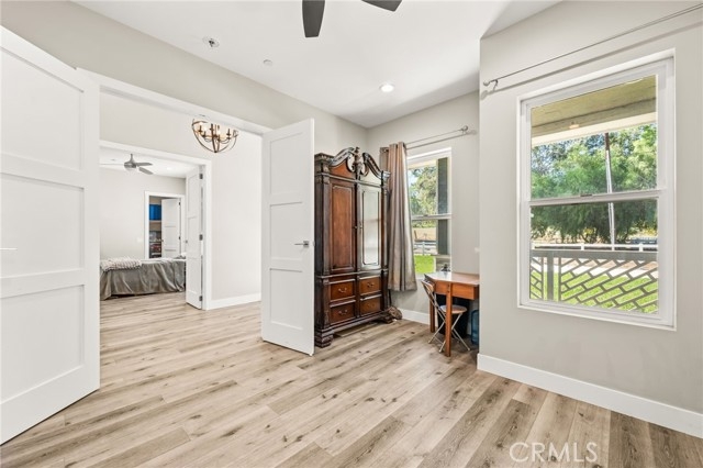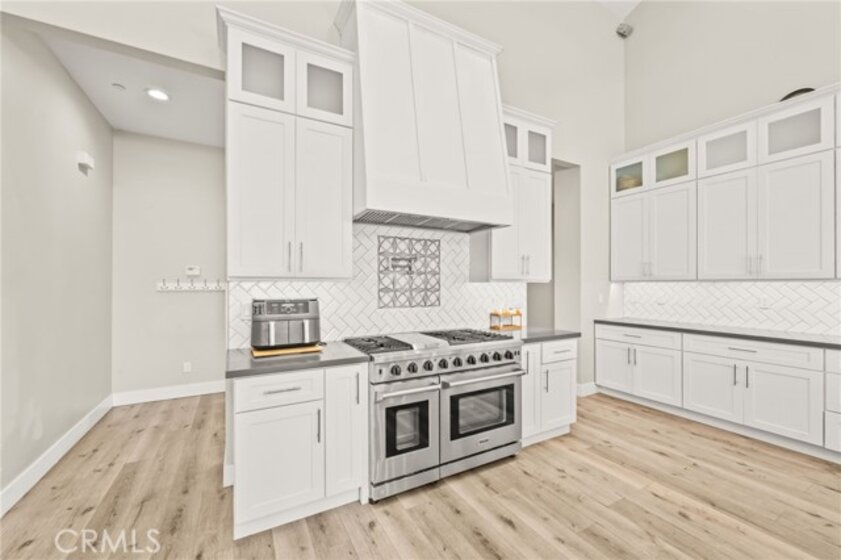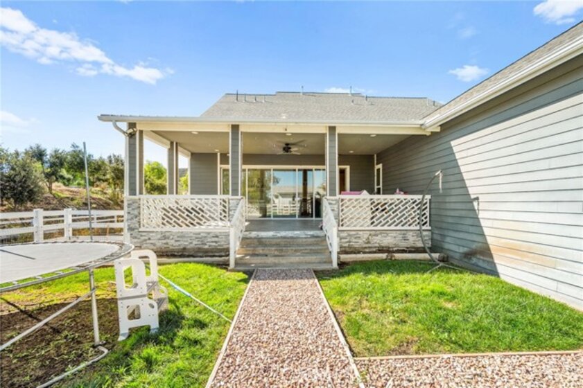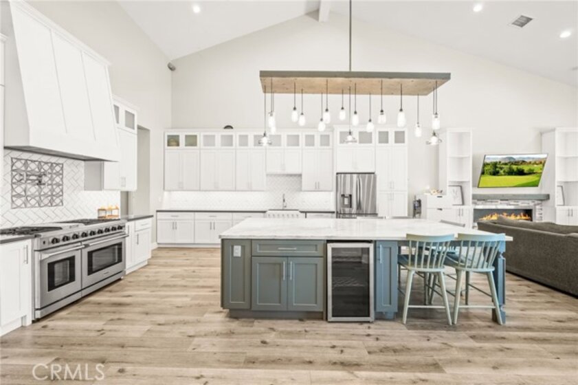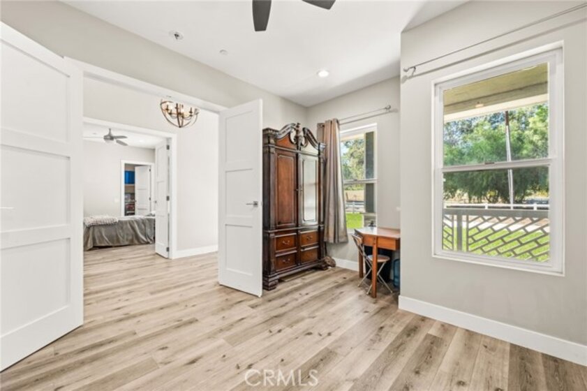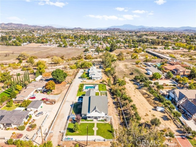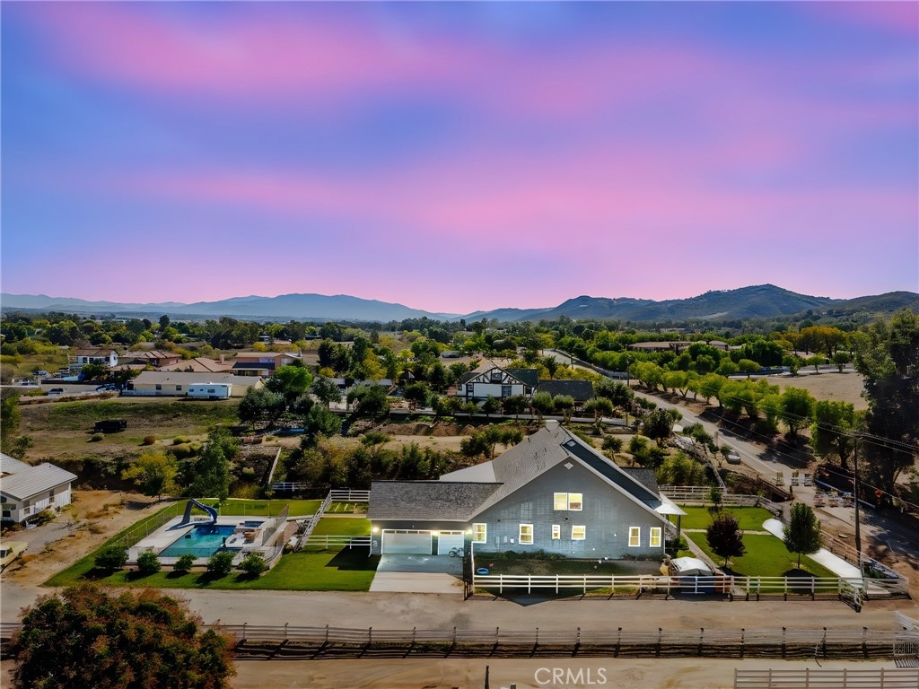 Luxury Farmhouse Living, Entertainer’s Pool, Wine Cellar & Mountain Views! Welcome to this stunning custom 4,000 SF 6 BR + Loft (used as 7th BR) / 4 BA home just west of historic Old Town Murrieta with gorgeous mountain & creek-bed views. Single-level living with large upstairs loft and seamless indoor-outdoor flow. Chef’s Kitchen features custom all wood soft-close cabinetry, 6-burner double oven range with 48” hood & pot filler, 5’x10’ Bianco Carrara marble island with wine fridge, microwave drawer, and storage galore. Enjoy your own wine tasting room with 11’x11’ wine cellar, perfect for entertaining. Open the 20’ moving glass wall to 440 SF of covered outdoor living space with misters, fan, & surround sound. Relax in the pebble-tec pool & spa with top of the line slide and secure safety fence. Home includes premium LVP flooring, energy-efficient windows, marble bathrooms, and fire resistant siding. Spacious primary suite with barn doors, walk-in closet, dual rain head shower, soaking tub & bidet. Property upgrades include state of the art well pump with artesian spring water, fruit bearing trees, raised bed garden, predator proof fencing, chicken coop with established laying hens (optional), and solar mounted security system. Loft is enclosed with locking door and plumbed for kitchenette or bath. Zoned for agriculture, so bring your animals! 3-car garage (25’x33’x13’H) fits boat or small RV + RV parking. Two tankless water heaters, advanced fire abatement sprinkler system, and neighbors who “mind their own business.” This property perfectly combines luxury, privacy, and the charm of country living, minutes from town!