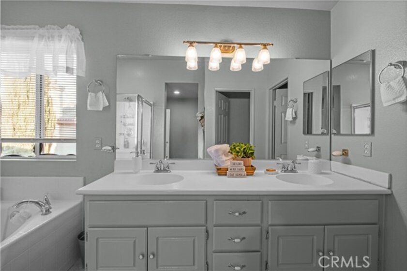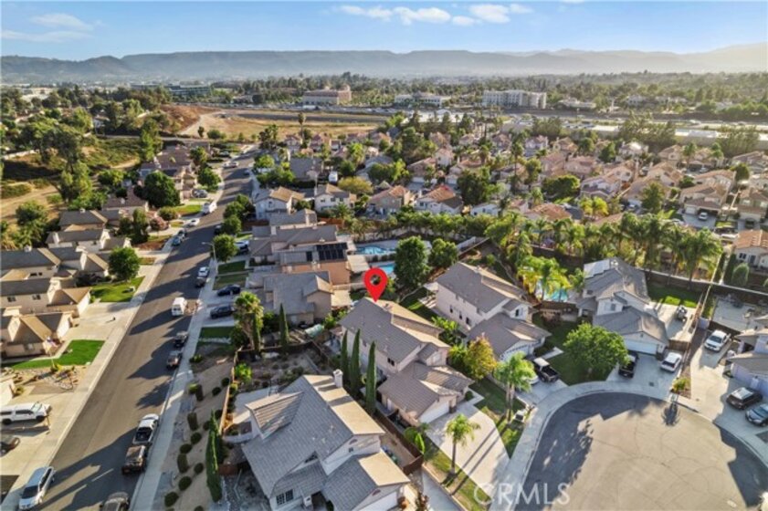Nestled on a private cul-de-sac within the highly desirable Alta Murrieta neighborhood, this spacious five-bedroom home offers a unique opportunity. Upon arrival, you will be welcomed by an expansive, oversized driveway and lovely mature trees. High ceilings and natural lighting invite you into the bright and open first floor that boasts a double sided fireplace, bringing ambience to both the formal living room and family room. A unique feature of this home is the inclusion of two bedrooms on the first floor, accompanied by a full bathroom and large laundry room separating the bedrooms. This thoughtful design provides flexibility for a variety of lifestyle needs, including a convenient home office, comfortable multi-generational living arrangements, or accommodations for individuals with mobility considerations. The second floor is distinguished by a luxurious primary bedroom suite. This private retreat incorporates a separate sitting area (or dedicated office space), providing a serene environment for relaxation, focused work or taking in the panoramic views. The ensuite bathroom is well-appointed, featuring a soaking tub, a separate shower, and a large walk-in closet. The backyard has great potential with ample space on both sides of home, including a viewing deck for those beautiful summer nights watching movies on the retractable projection screen. Outdoor enthusiasts may also enjoy the recently updated park with all-new play area and frisbee golf course just around the corner. IDEAL LOCATION in the heart of Murrieta with quick and easy access to the 15 and 215 fwys for commuters, convenient shopping, and great schools. NEW A/C, NO HOA and LOW TAXES increases your purchase power as a Buyer…make it your own and enjoy your forever home!
