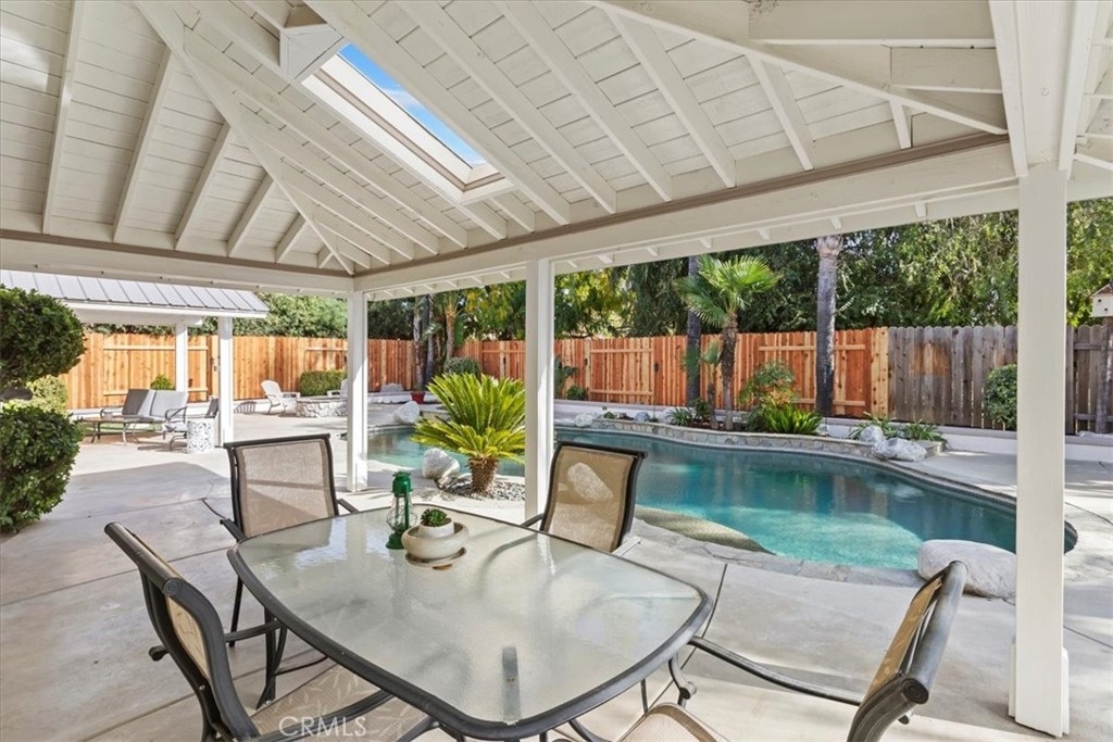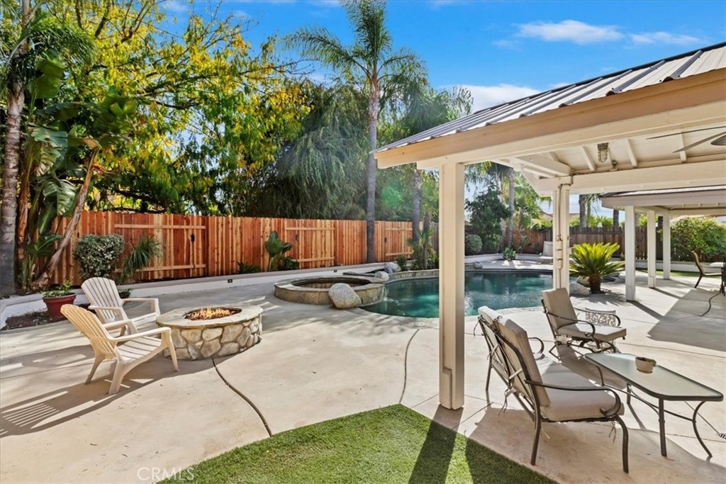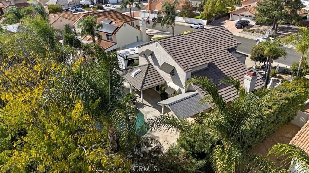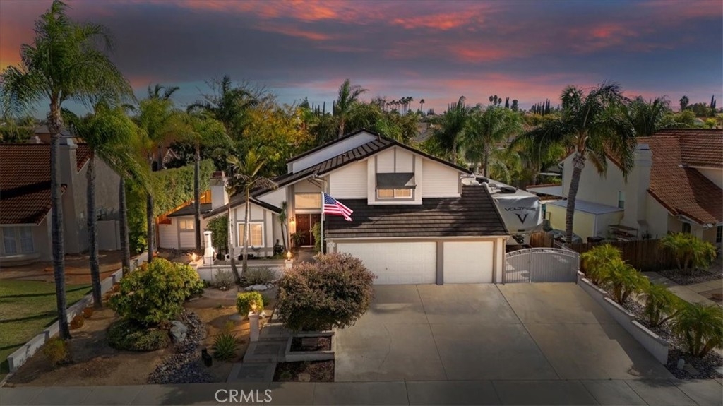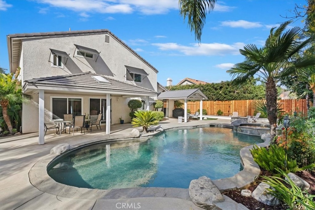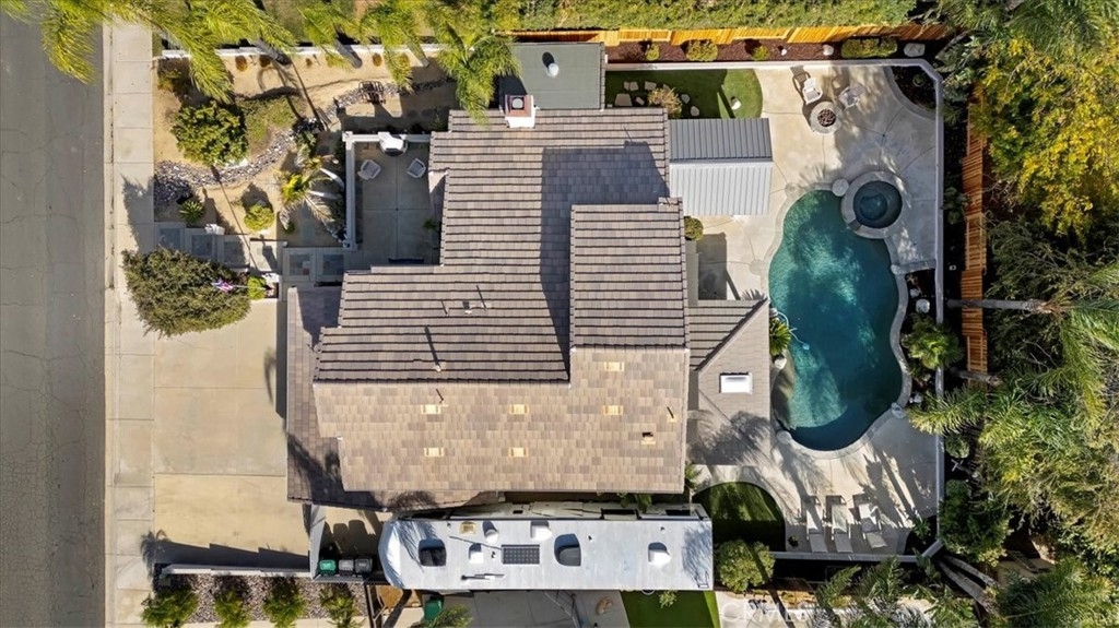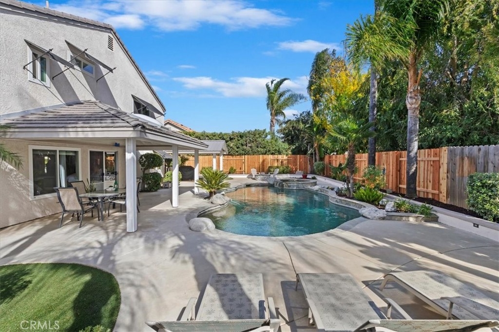Stunning & immaculate 2200 sf pool home with RV parking on a large lot! This Murrieta beauty has 4 bedrooms plus a large game/bonus room (can easily be turned into a 5th bedroom) with an oversized 3 car garage. Ample RV parking with electrical hookups & wrought iron gate access. Impressive curb appeal with the meticulous landscaping, newer exterior paint, custom awnings & flagstone walkway with lighted pilasters. You are greeted by an inviting courtyard at the entry with a calming fountain and outdoor fireplace. Dramatic entry through double doors into a foyer with stone flooring and high ceilings. Just some of the features inside the house include plantation shutters, wrought iron stair bannisters, crown molding, ceiling fans throughout and 3 Quiet Cool house fans for energy efficiency. Large living room has a slate fireplace and is ready for those cozy family nights. Sliders from the dining area to the covered exterior area to help bring indoor and outdoor space together. Bright & sunny kitchen with tile counters and decorative backsplash that opens to the family room with surround sound speakers. There is a main floor bedroom with luxury plank vinyl flooring, mirrored closet doors and plantation shutters. Upstairs has 3 bedrooms plus a large bonus/game room. The bonus room is complete with surround sound speakers, plantation shutters and the entertainment cabinet stays. Spacious primary bedroom with two closets and TV that conveys. Three car garage with epoxy flooring, 220 outlet, and built-in cabinets. Staycation in this amazing backyard complete with a large custom Pebble-tec pool and spa with flagstone accent and variable speed pool pump. Extensive hardscape throughout the back that includes seat walls for easy entertaining! There are two stately custom-built patio covers with solid covers, TV that stays, lights, fan and impressive wood detail! Get the s'more ingredients ready to sit around the built -in firepit during the beautiful Murrieta evenings! The side yard is an exceptionally well-built custom storage room that has so many options for use (approx. 11 x 7.5). Some of the fence in the back is brand new. No need to rent RV space when you have your own RV parking with 30 amp electrical and clean out. All this in the highly desirable Rancho Acacias community with no HOA's and very low tax rate. So close to shops, restaurants, parks, schools and easy access to 15 and 215 freeway....excellent central location. Welcome home to this beauty!