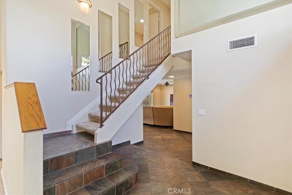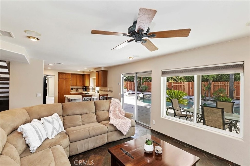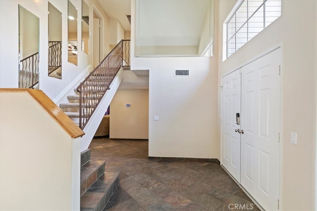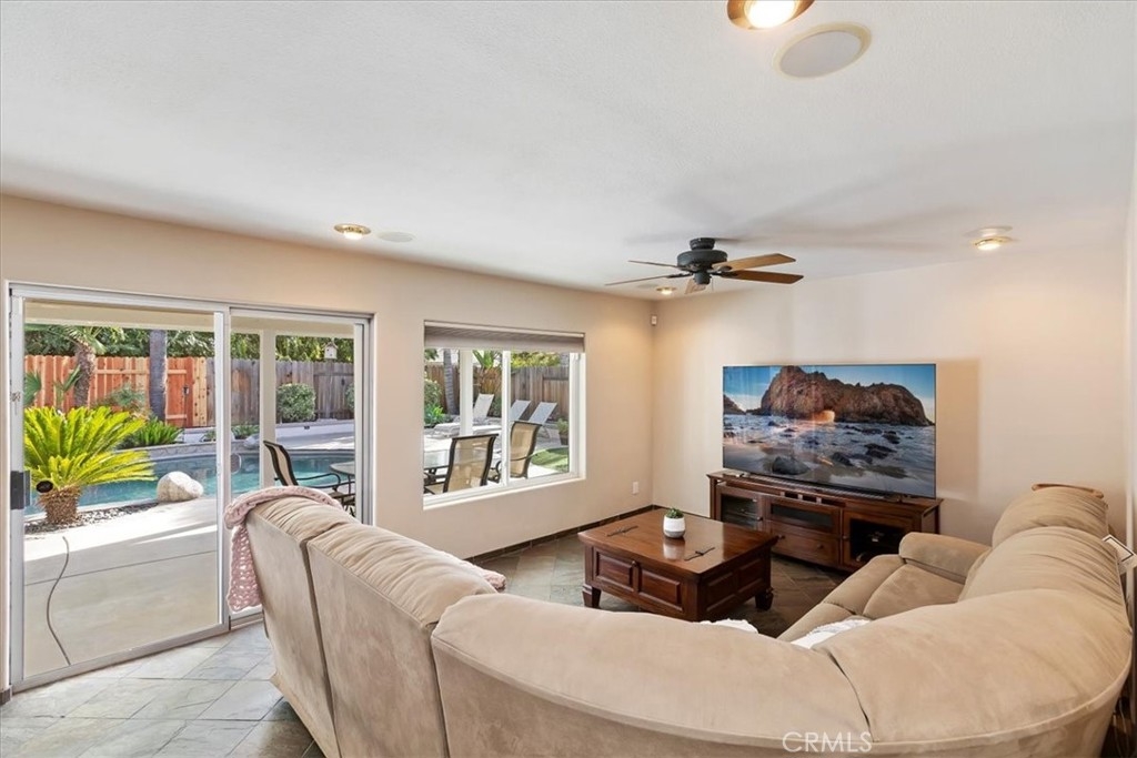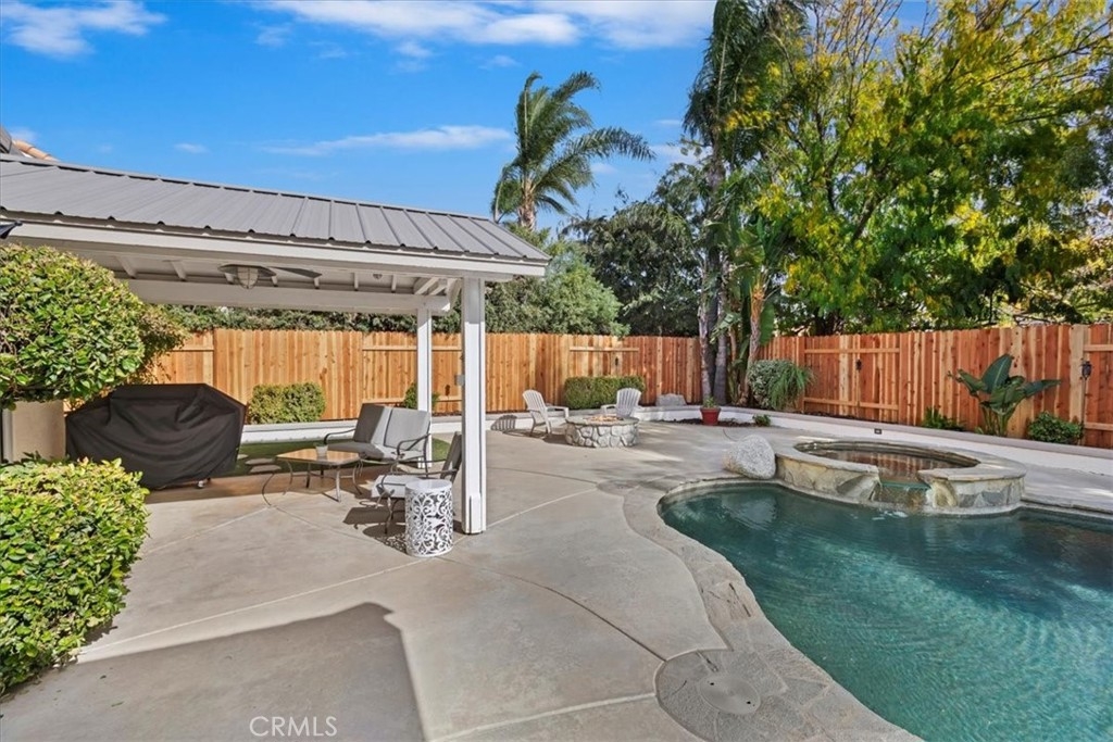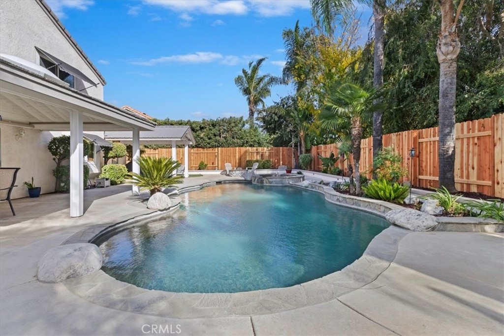 Stunning & immaculate 2200 sf pool home with RV parking on a large lot! This Murrieta beauty has 4 bedrooms plus a large game/bonus room (can easily be turned into a 5th bedroom) with an oversized 3 car garage. Ample RV parking with electrical hookups & wrought iron gate access. Impressive curb appeal with the meticulous landscaping, newer exterior paint, custom awnings & flagstone walkway with lighted pilasters. You are greeted by an inviting courtyard at the entry with a calming fountain and outdoor fireplace. Dramatic entry through double doors into a foyer with stone flooring and high ceilings. Just some of the features inside the house include plantation shutters, wrought iron stair bannisters, crown molding, ceiling fans throughout and 3 Quiet Cool house fans for energy efficiency. Large living room has a slate fireplace and is ready for those cozy family nights. Sliders from the dining area to the covered exterior area to help bring indoor and outdoor space together. Bright & sunny kitchen with tile counters and decorative backsplash that opens to the family room with surround sound speakers. There is a main floor bedroom with luxury plank vinyl flooring, mirrored closet doors and plantation shutters. Upstairs has 3 bedrooms plus a large bonus/game room. The bonus room is complete with surround sound speakers, plantation shutters and the entertainment cabinet stays. Spacious primary bedroom with two closets and TV that conveys. Three car garage with epoxy flooring, 220 outlet, and built-in cabinets. Staycation in this amazing backyard complete with a large custom Pebble-tec pool and spa with flagstone accent and variable speed pool pump. Extensive hardscape throughout the back that includes seat walls for easy entertaining! There are two stately custom-built patio covers with solid covers, TV that stays, lights, fan and impressive wood detail! Get the s'more ingredients ready to sit around the built -in firepit during the beautiful Murrieta evenings! The side yard is an exceptionally well-built custom storage room that has so many options for use (approx. 11 x 7.5). Some of the fence in the back is brand new. No need to rent RV space when you have your own RV parking with 30 amp electrical and clean out. All this in the highly desirable Rancho Acacias community with no HOA's and very low tax rate. So close to shops, restaurants, parks, schools and easy access to 15 and 215 freeway....excellent central location. Welcome home to this beauty!