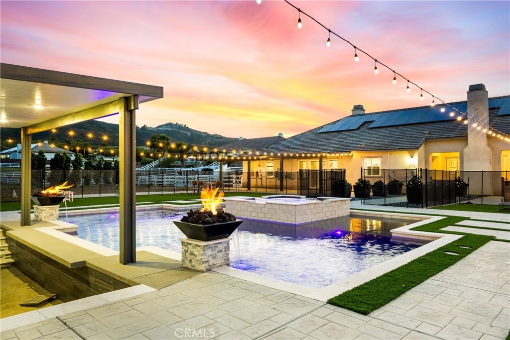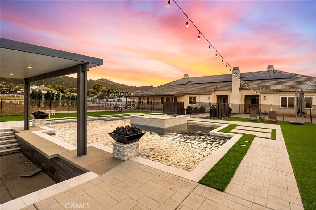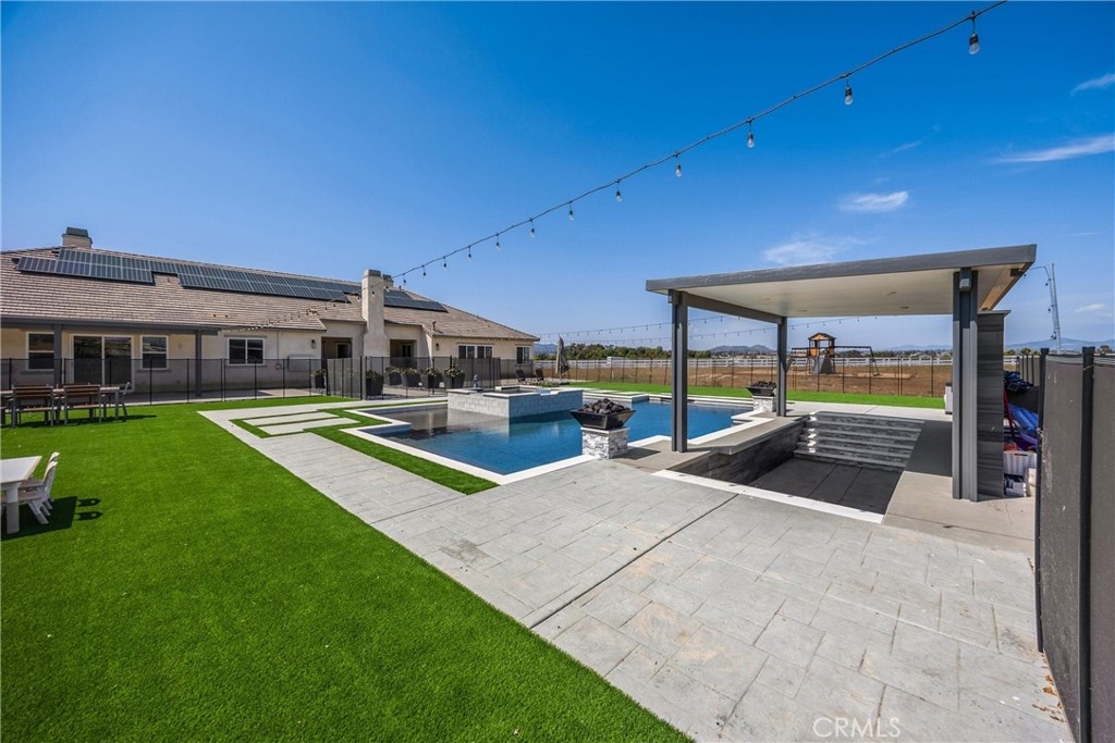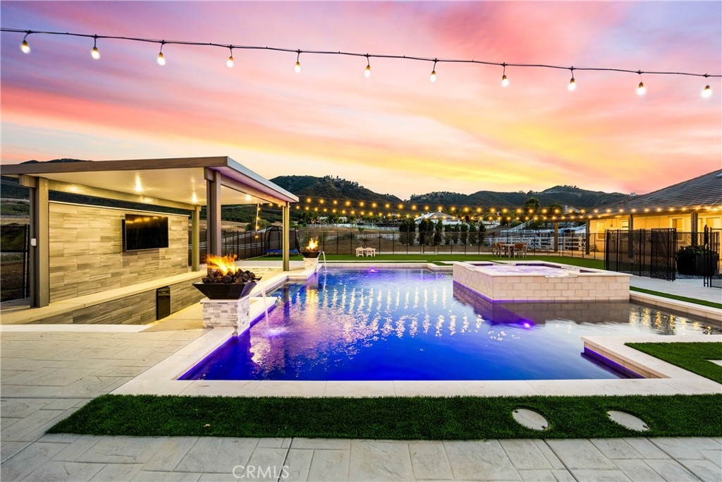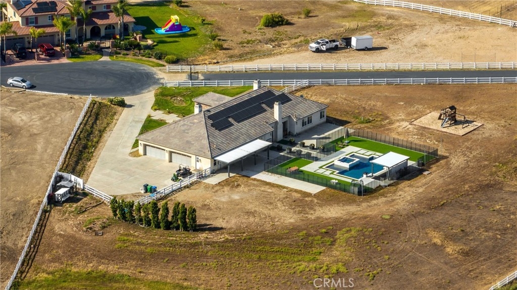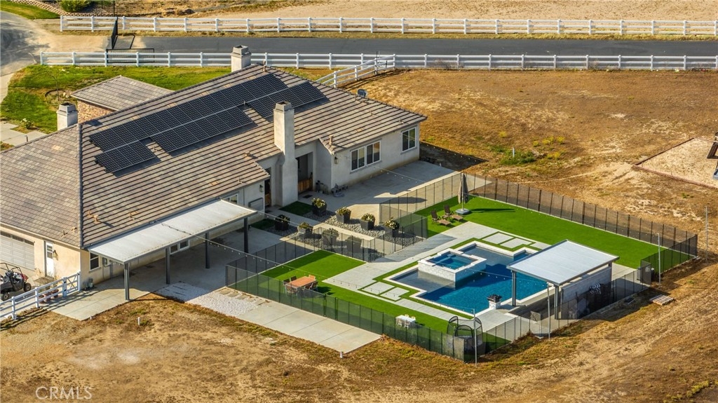 Welcome to luxury living in Wynfield Estates gated community, located in West Murrieta. This grand 4,086 sq ft home offers a comfortable lifestyle on 2.85 acre lot, ensuring privacy. Property offers four car garage with ample storage. For your peace of mind and entertainment the pool is gated for safety and includes a TV and sunken bar area. The home is equipped with solar panels, two back up batteries tankless water heater and water filtration system. Backyard is fully fenced and secured. Step inside to find elegant Travertine floors and 10 foot ceiling with crown molding. A bar and serving area right off the family room. Extra large kitchen island with granite countertops and abundant storage. There are four bedrooms, each with walk in closet and individual bathrooms. A convenient half bath is located near the laundry and mudroom. Luxurious primary suite offers two large closets with amply area to place all your items, large windows that overlook your gorgeous pool /spa and private fireplace. The formal living room also features a grand fireplace with large french doors leading to a comfortable patio area with fireplace. For those who work from home. A office space is located in front of home with access to the large front porch. Last but not least a play ground area for the children. MURRIETA A FAMILY ORIENTED CITY WITH EVERYTHING A FAMILY WILL NEED PARKS AND REC HIKING ,GREAT SCHOOLS ,3 HOSPITALS, AND IS RANKED ONE OF THE SAFEST CITYS IN CALIFORNIA . WYNFIELD ESTATES IS A COMMUNITY THAT EMPHASIZED EXCLUSIVITY... YET, ONLY 15 - 20 MIN FROM OLD TOWN TEMECULA, AND ITS FAMOUS WINERIES, PECHANGA CASINO, SHOPPING AND ENTERTAINMENT.